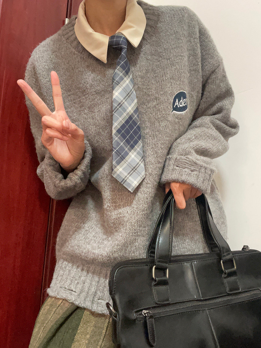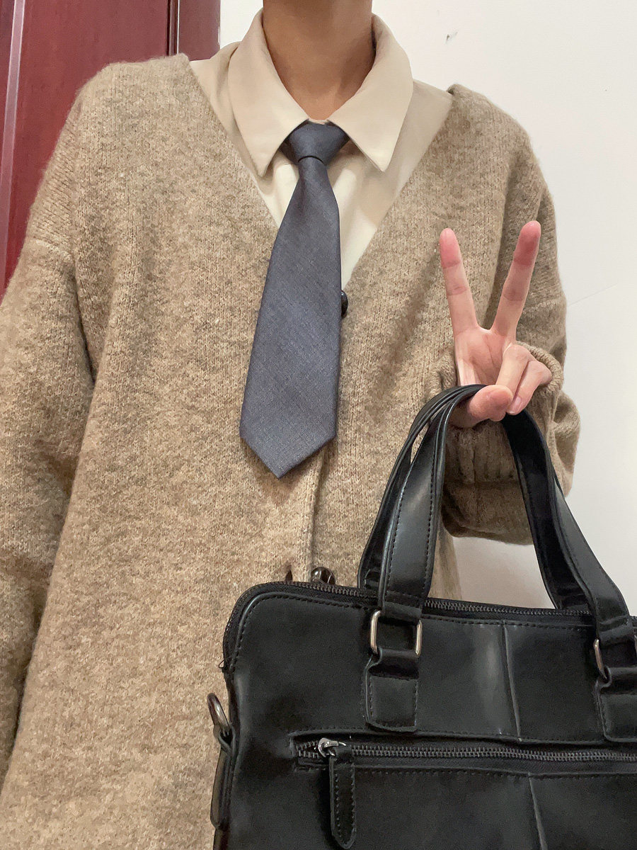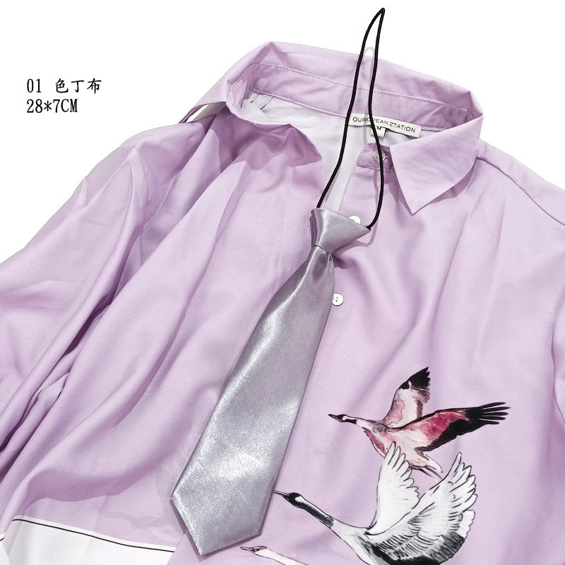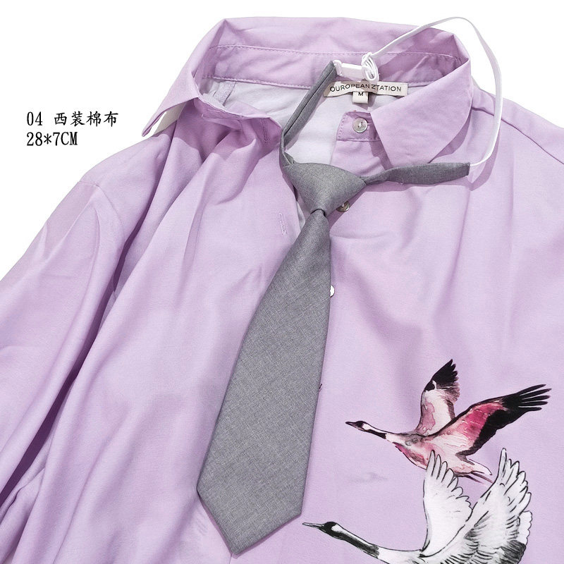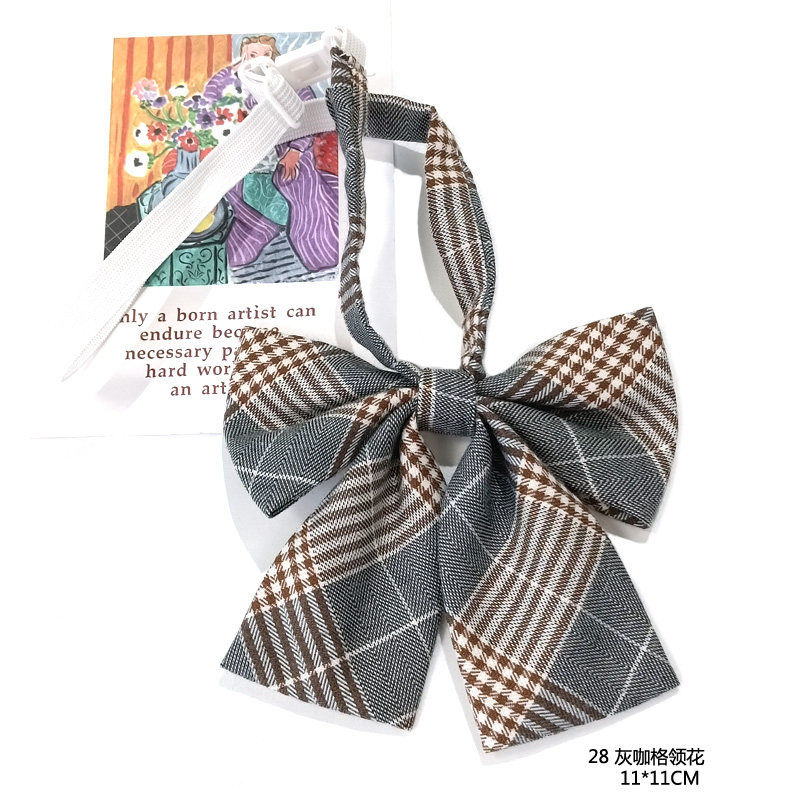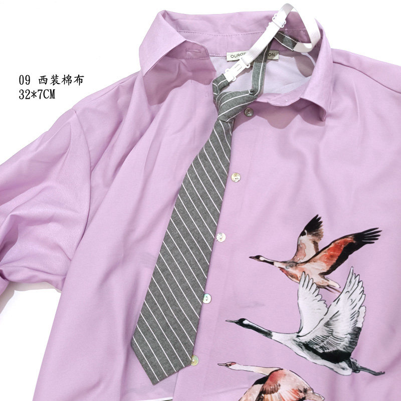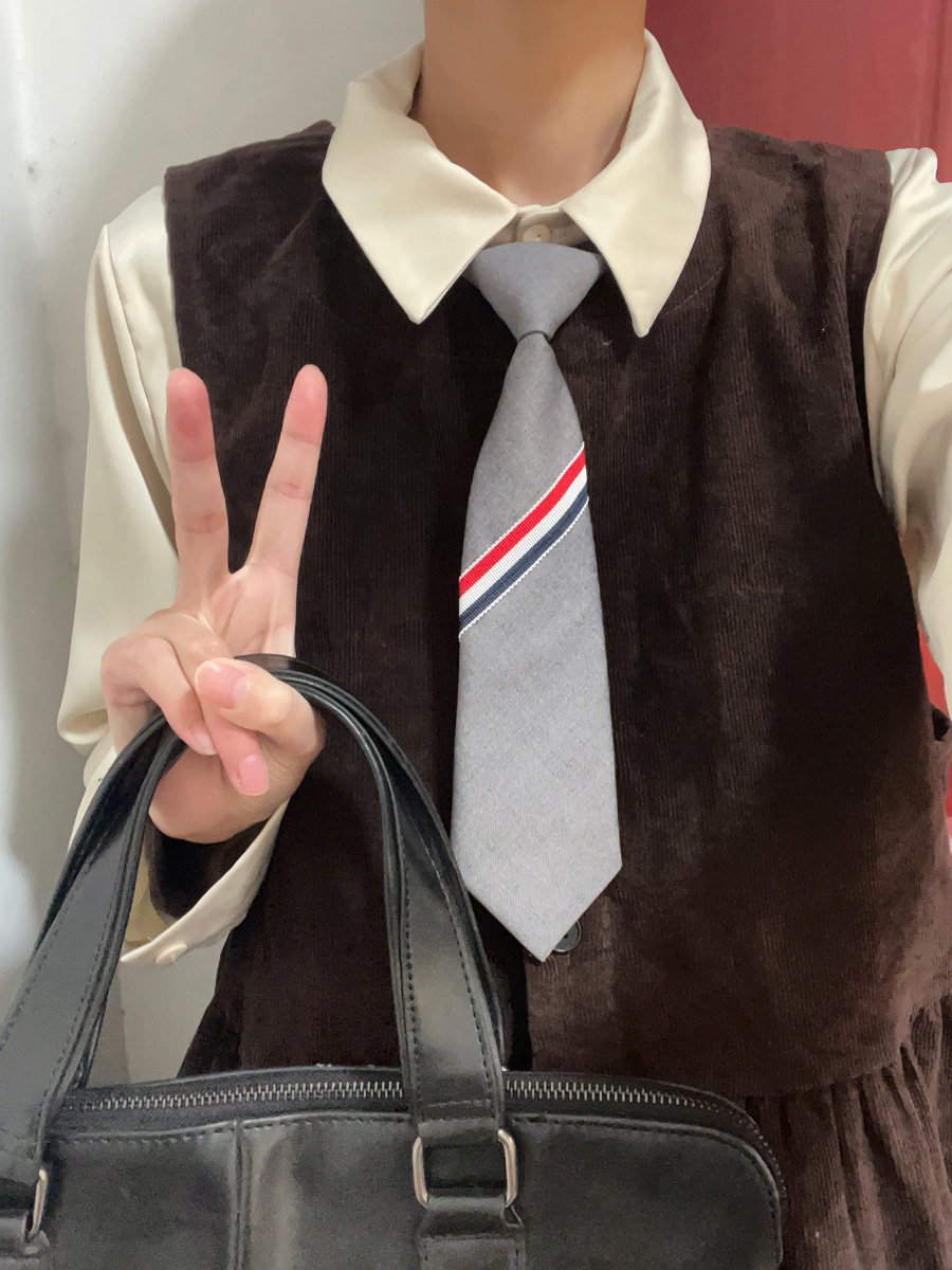Buy Two Get One Free Pure Gray No-Tie Short Tie for Women, Japanese Student Style, Casual Basic Versatile Striped Plaid