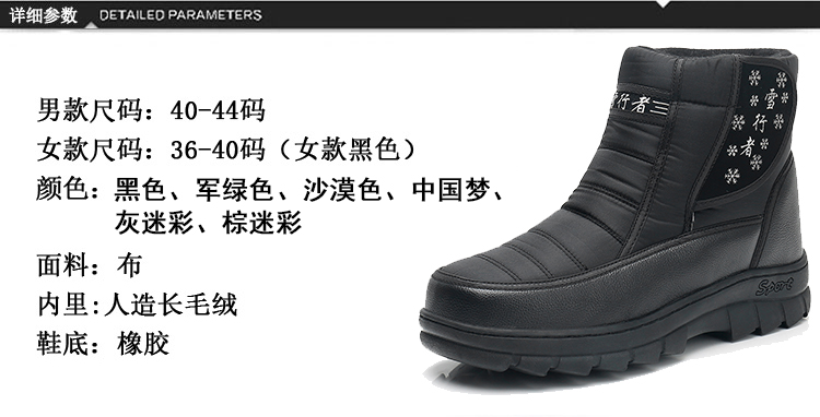Snow Boots Men's Winter Outdoor Warm Non-Slip Thick-Soled Anti-Snow Water Men's and Women's Northeast Velvet Thickeneded Workwear Large Cotton Shoes