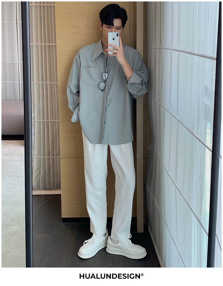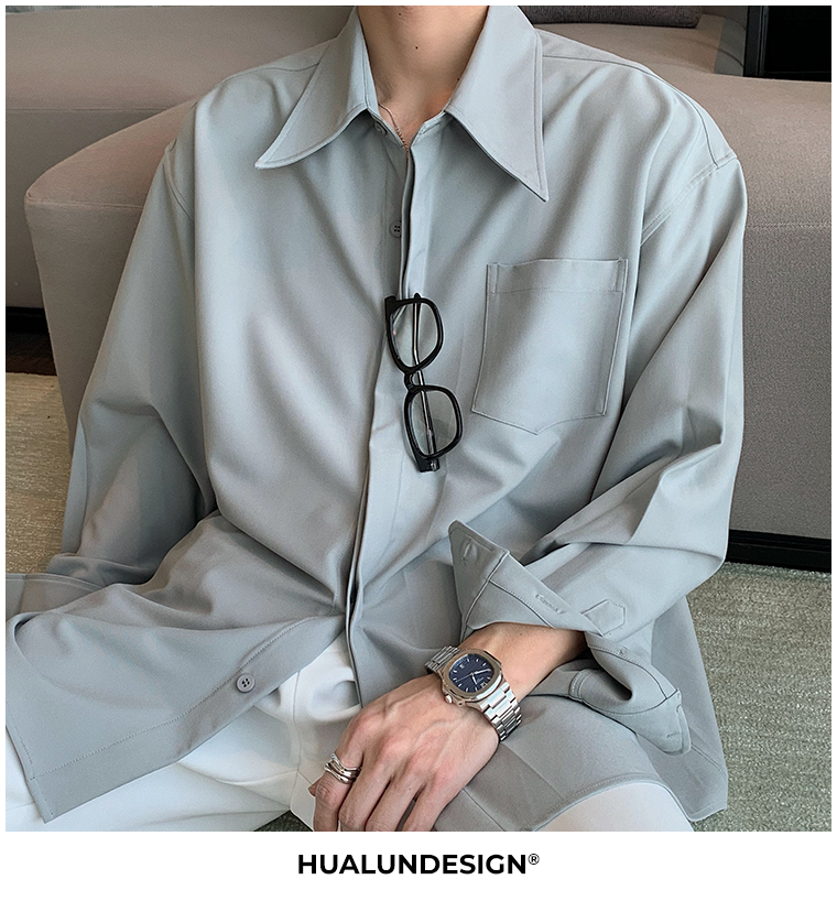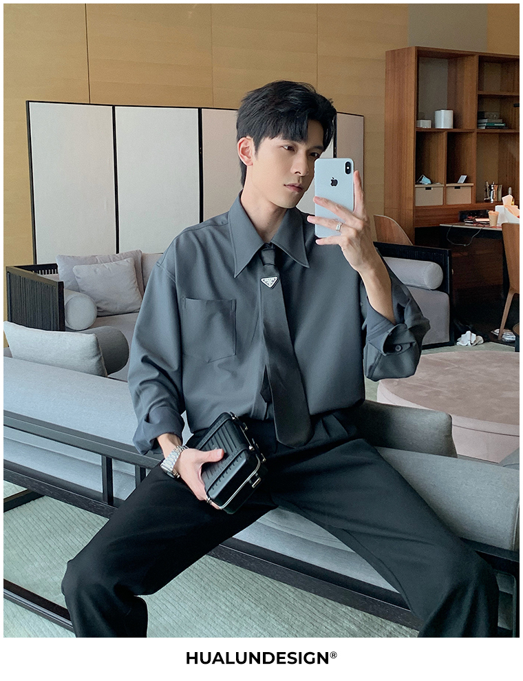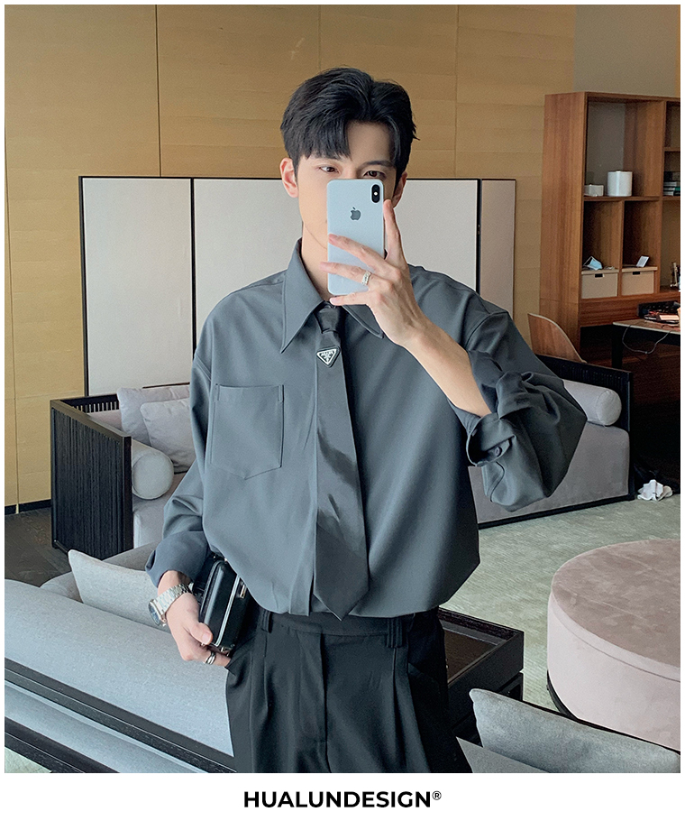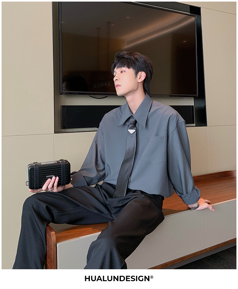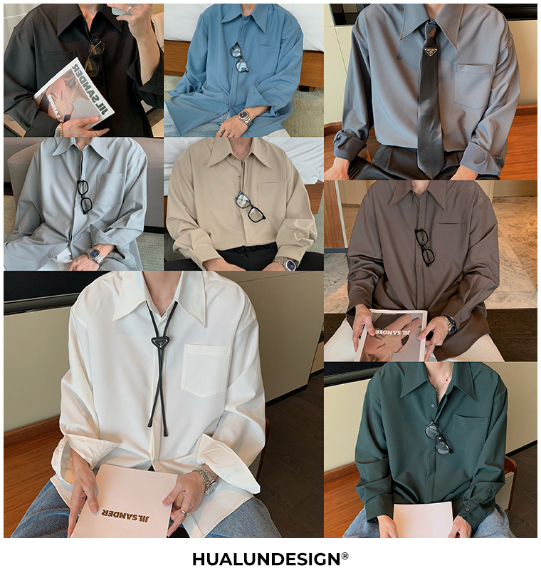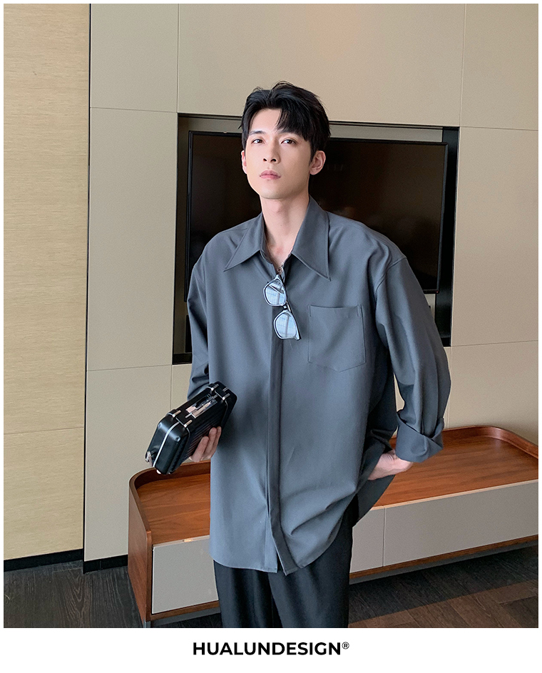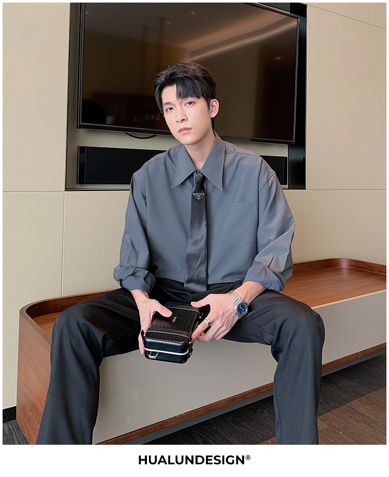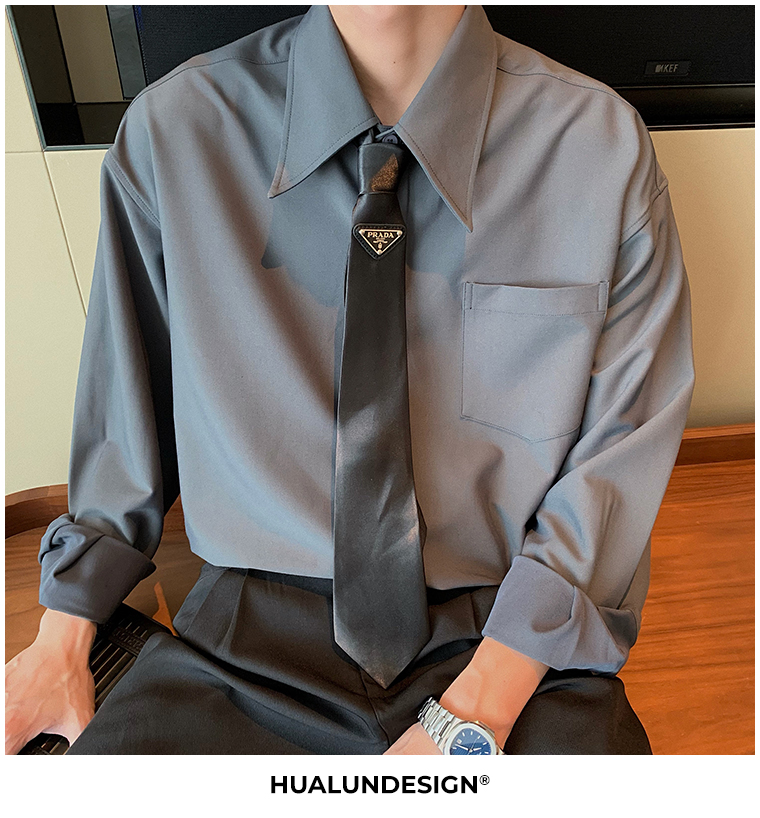 Hualun Autumn Design High-End Casual Gray Shirt for Men, Long-Sleeved, Wrinkle-Free, Solid Color, Korean Style White Shirt