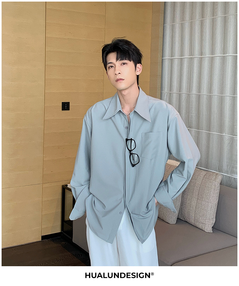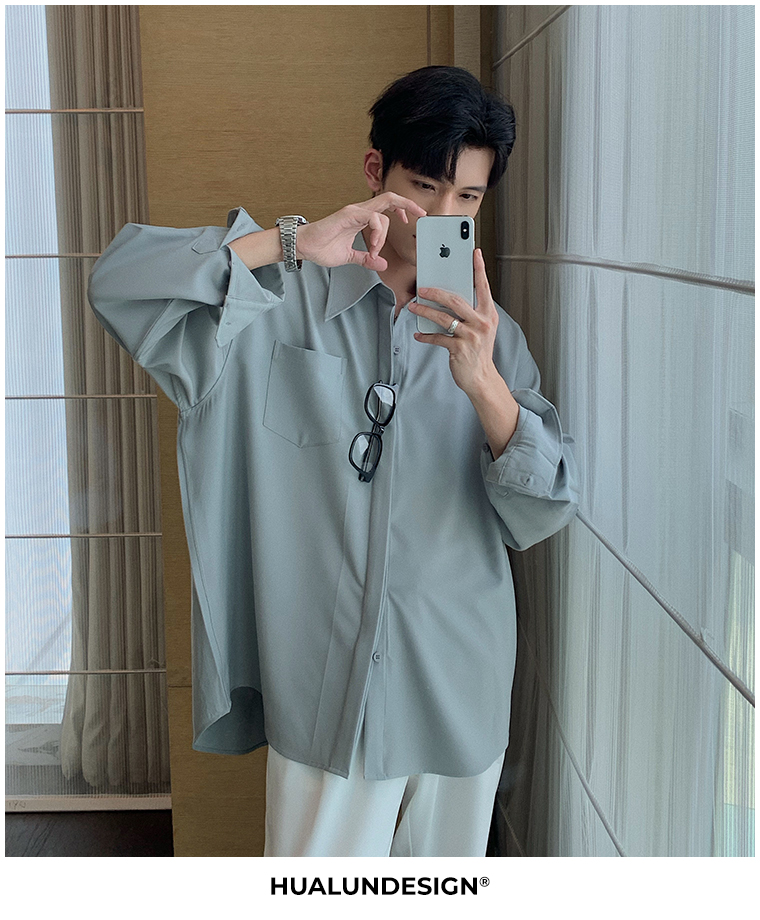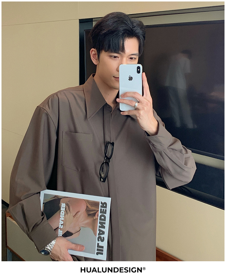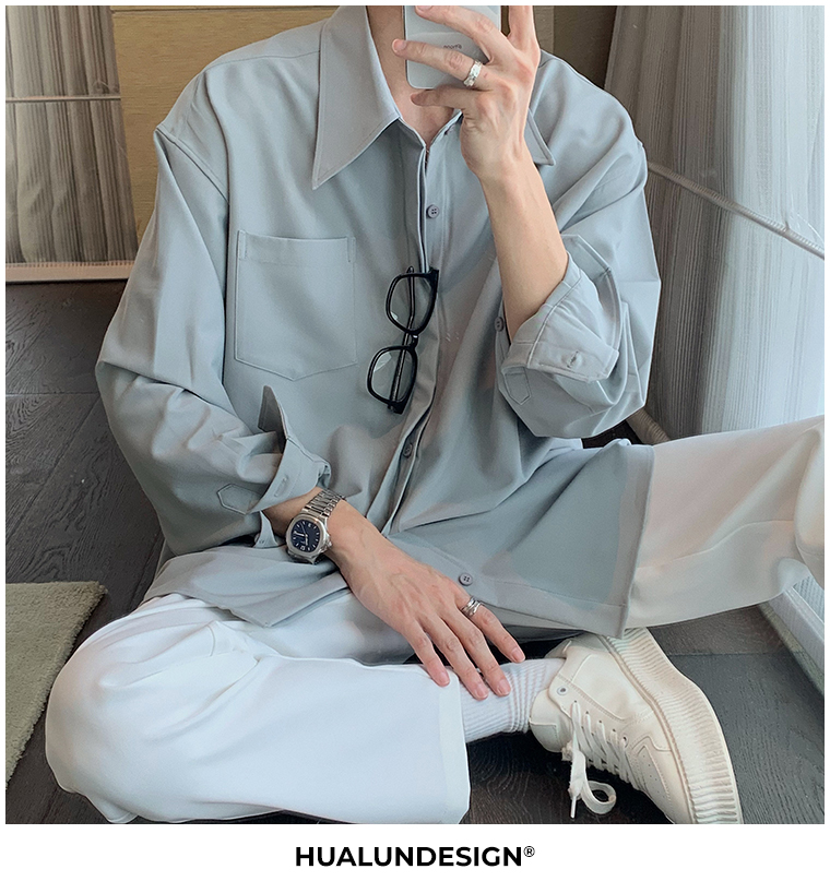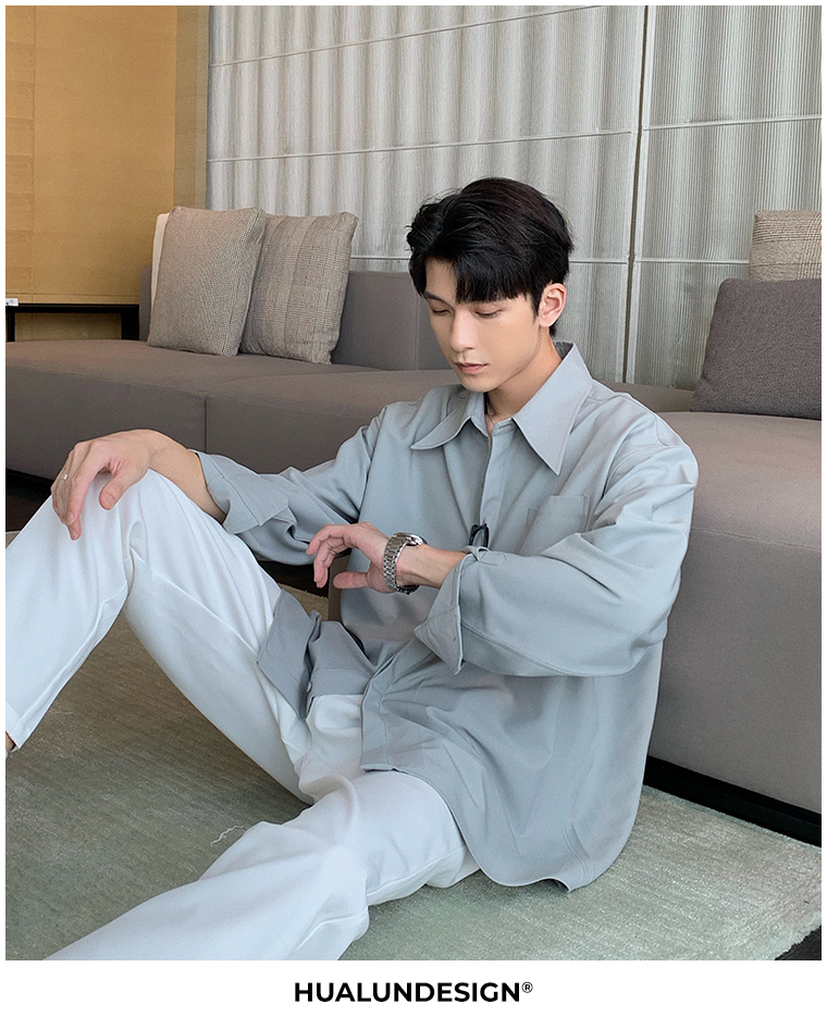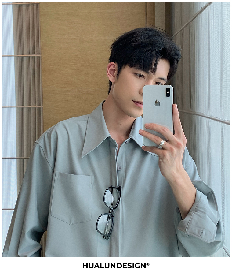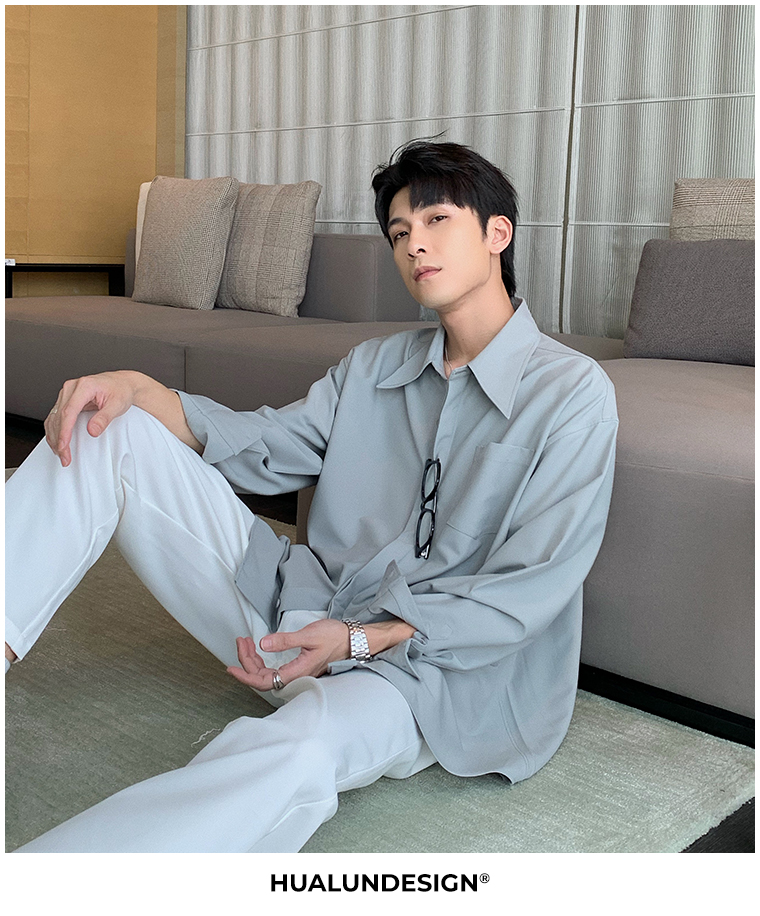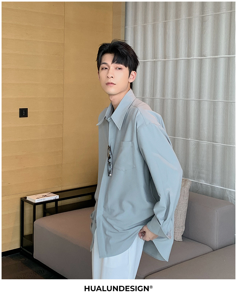 Hualun Autumn Design High-End Casual Gray Shirt for Men, Long-Sleeved, Wrinkle-Free, Solid Color, Korean Style White Shirt