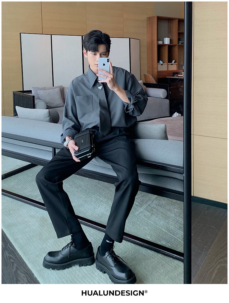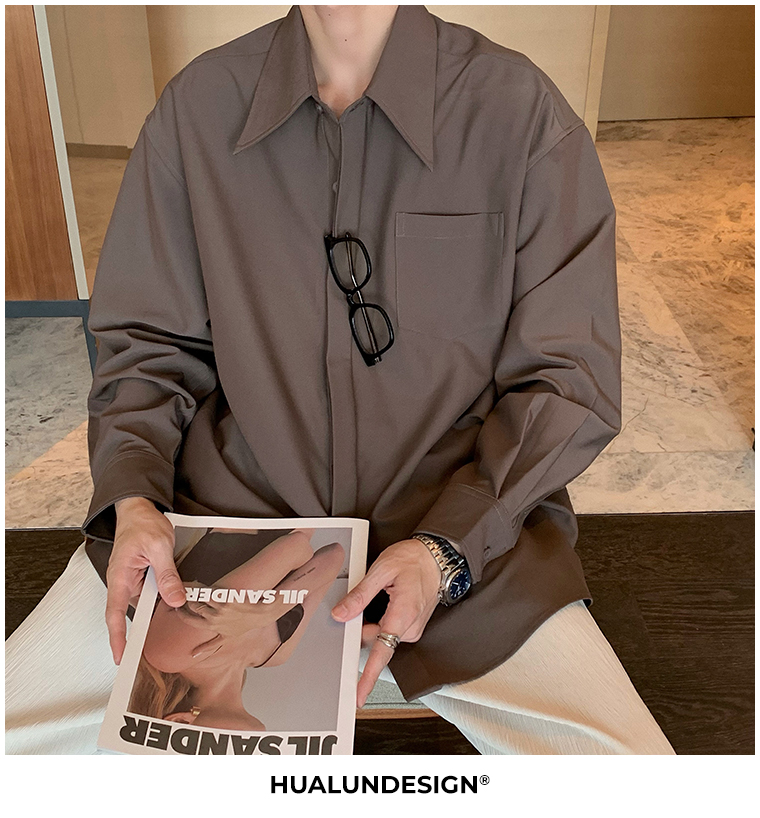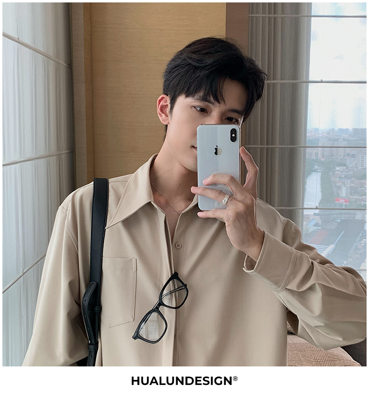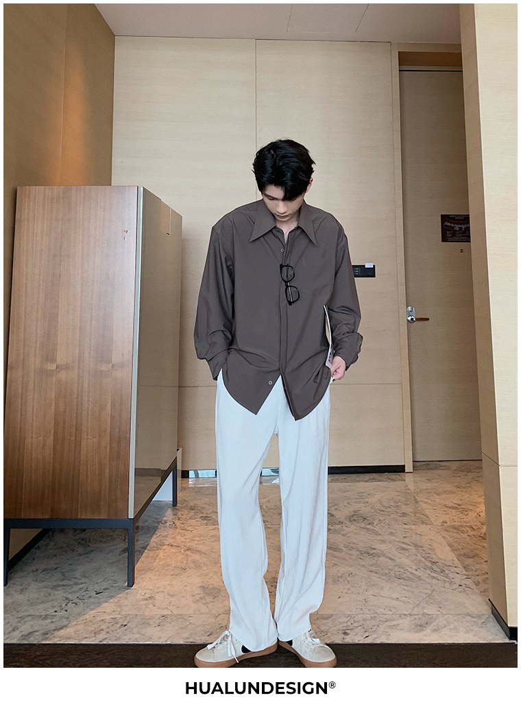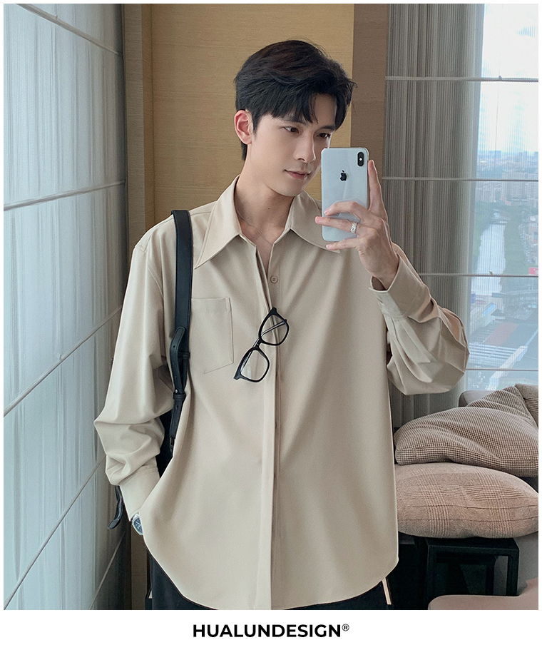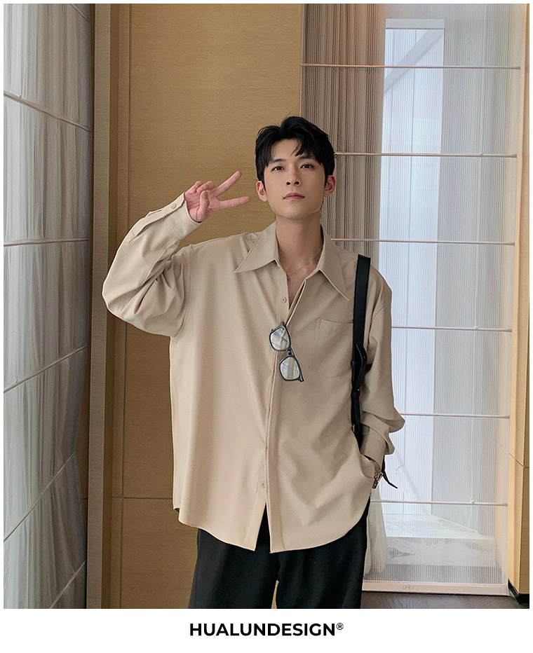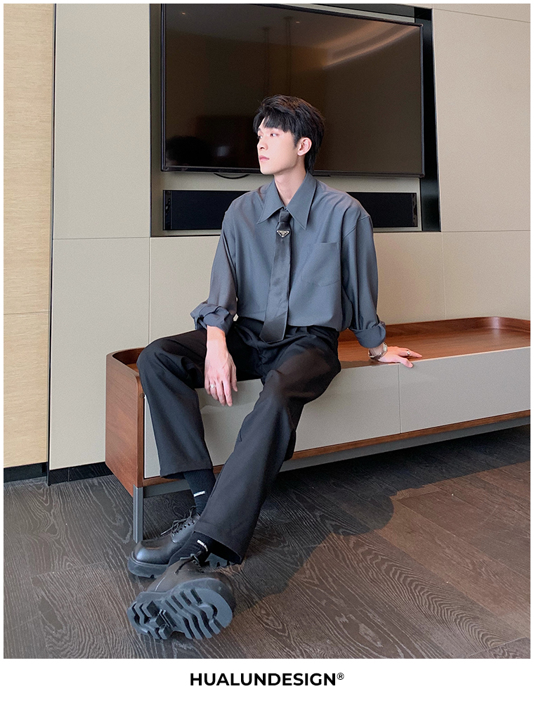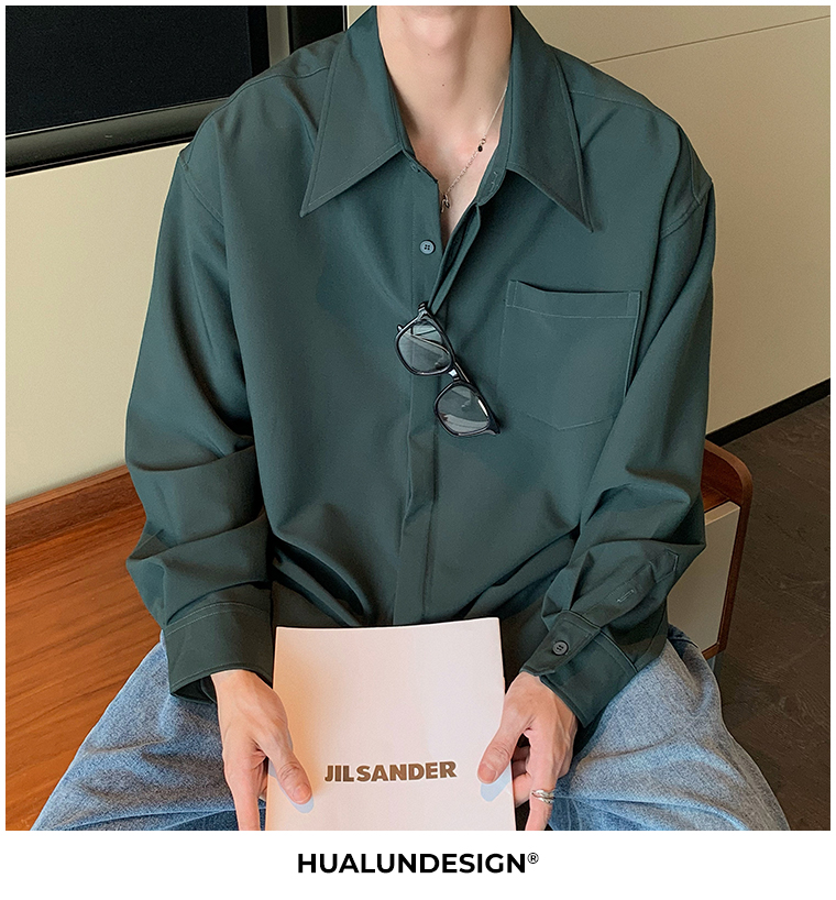 Hualun Autumn Design High-End Casual Gray Shirt for Men, Long-Sleeved, Wrinkle-Free, Solid Color, Korean Style White Shirt