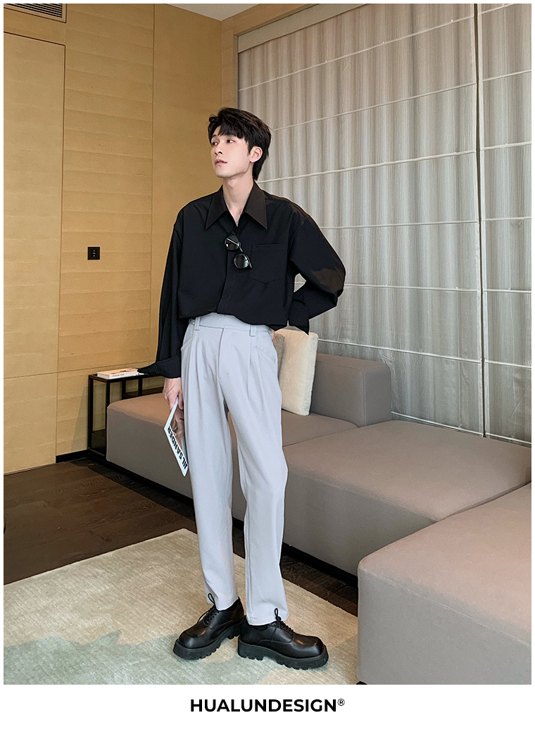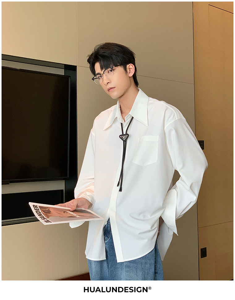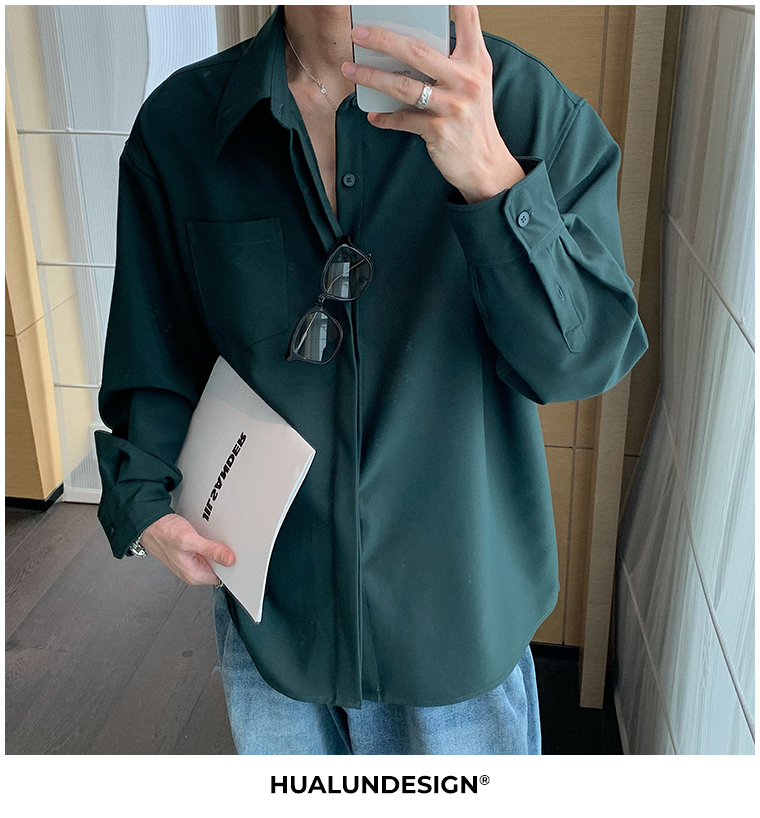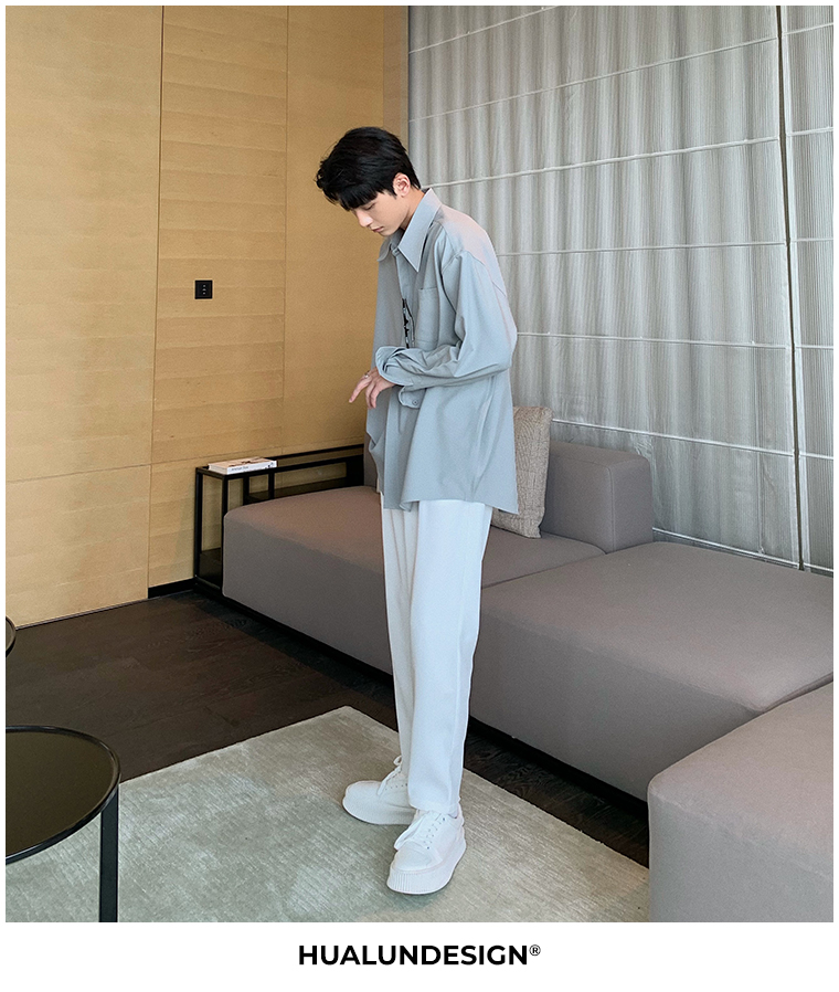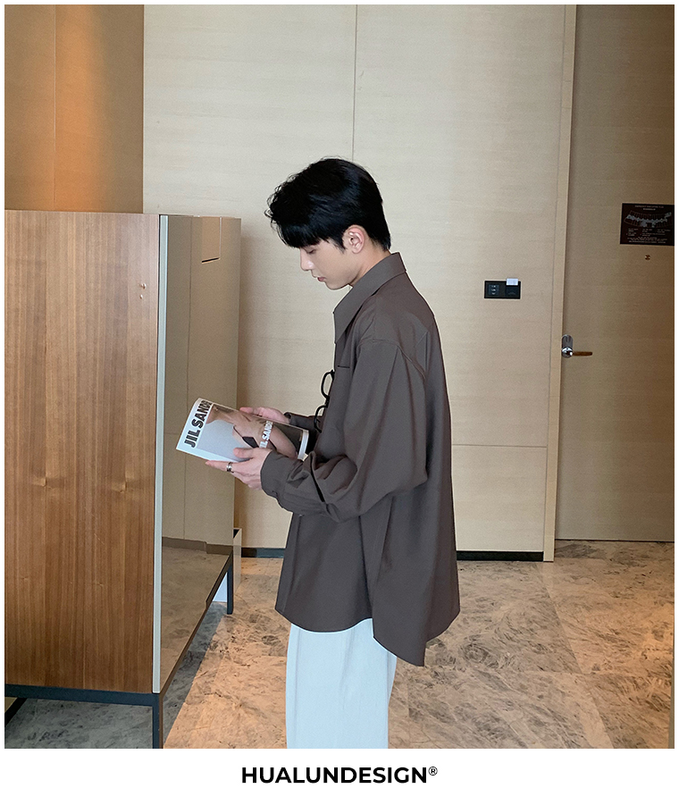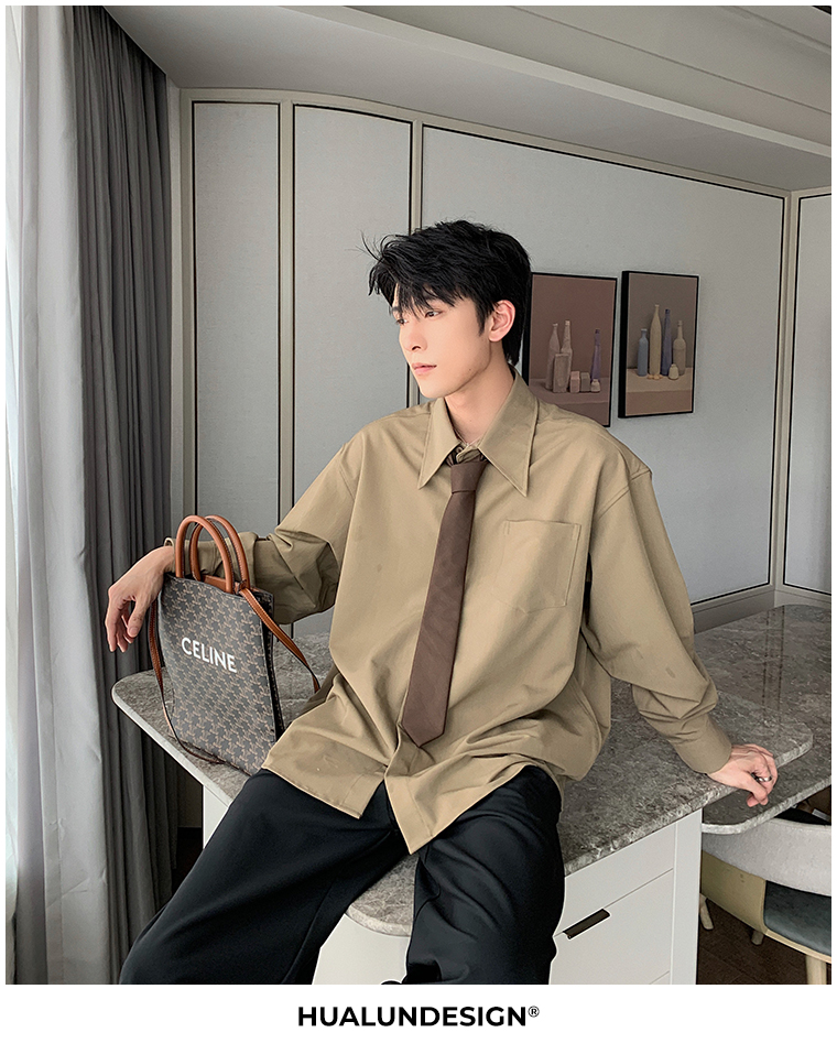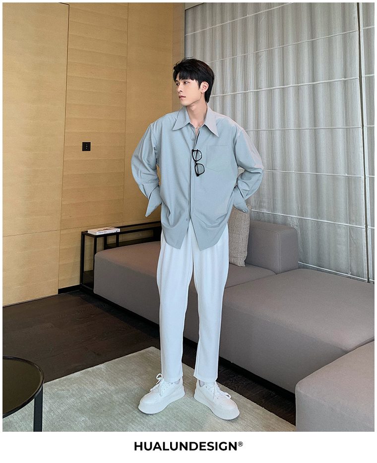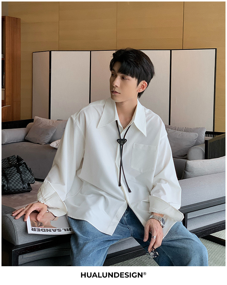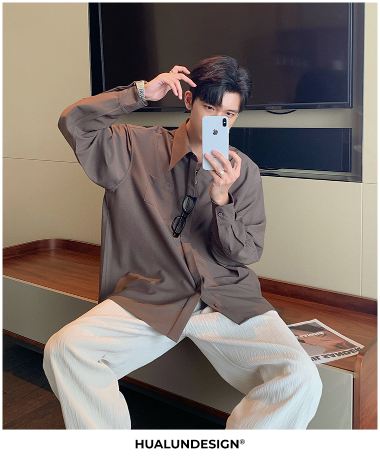 Hualun Autumn Design High-End Casual Gray Shirt for Men, Long-Sleeved, Wrinkle-Free, Solid Color, Korean Style White Shirt