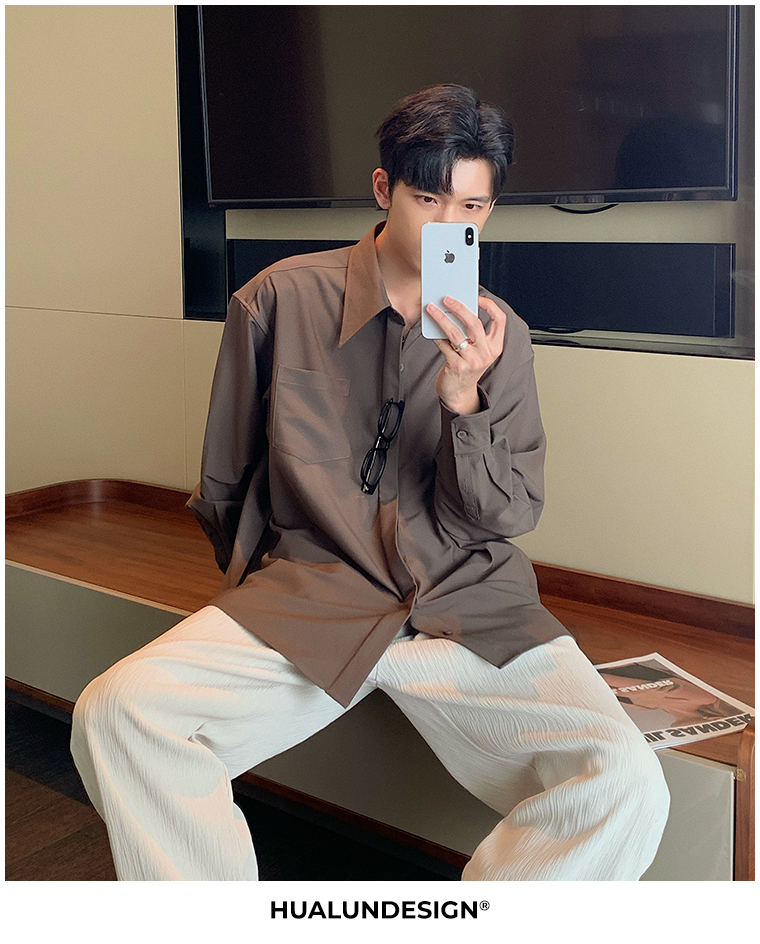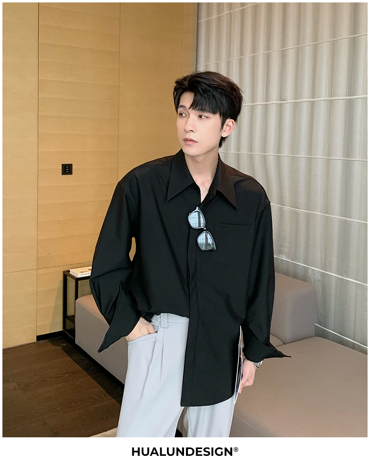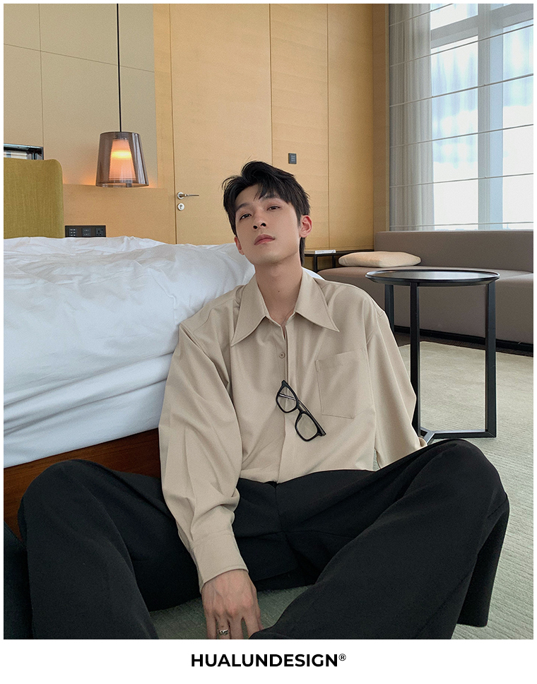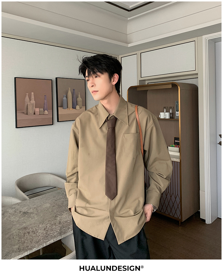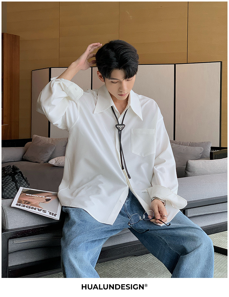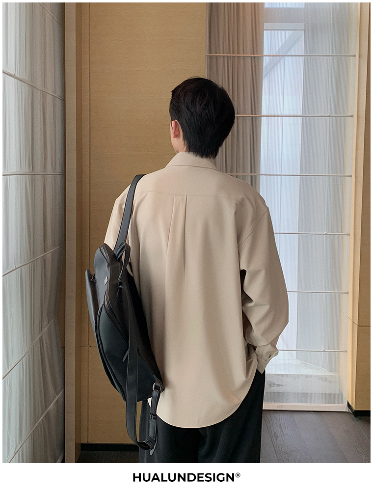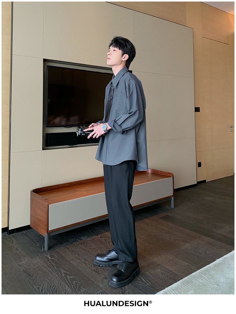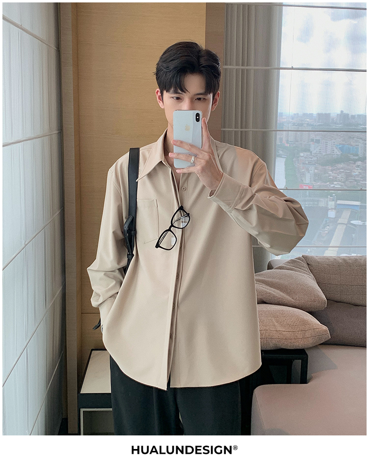 Hualun Autumn Design High-End Casual Gray Shirt for Men, Long-Sleeved, Wrinkle-Free, Solid Color, Korean Style White Shirt