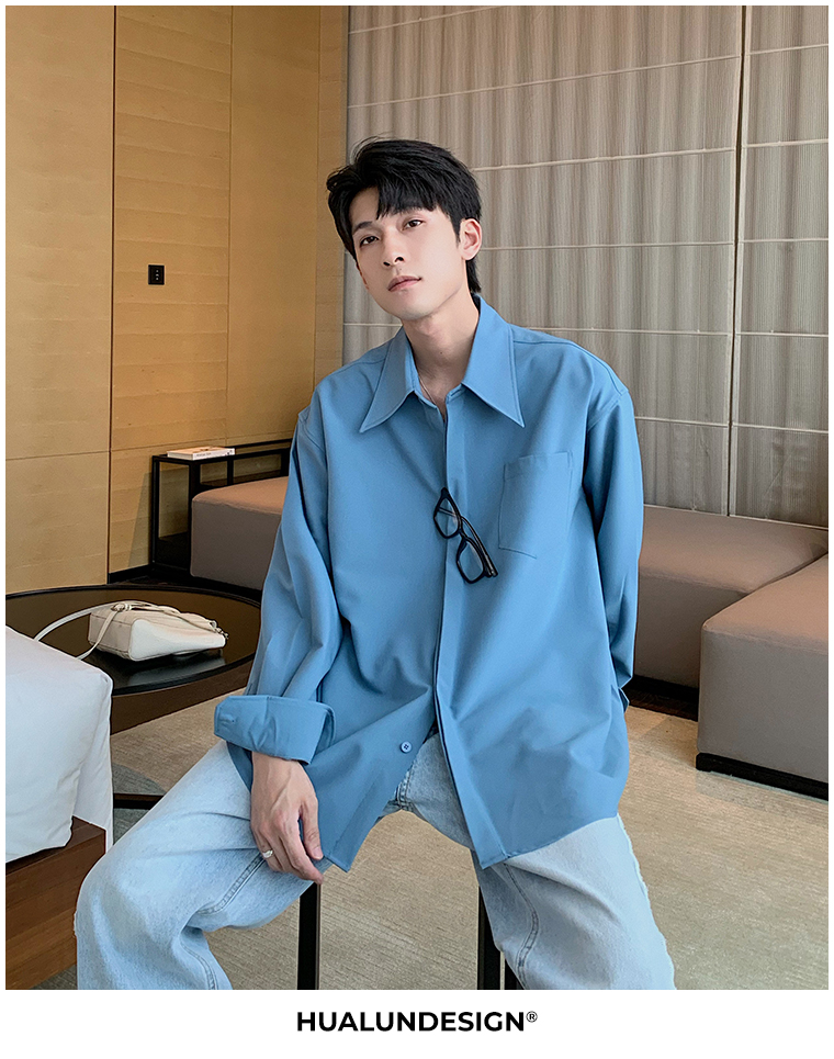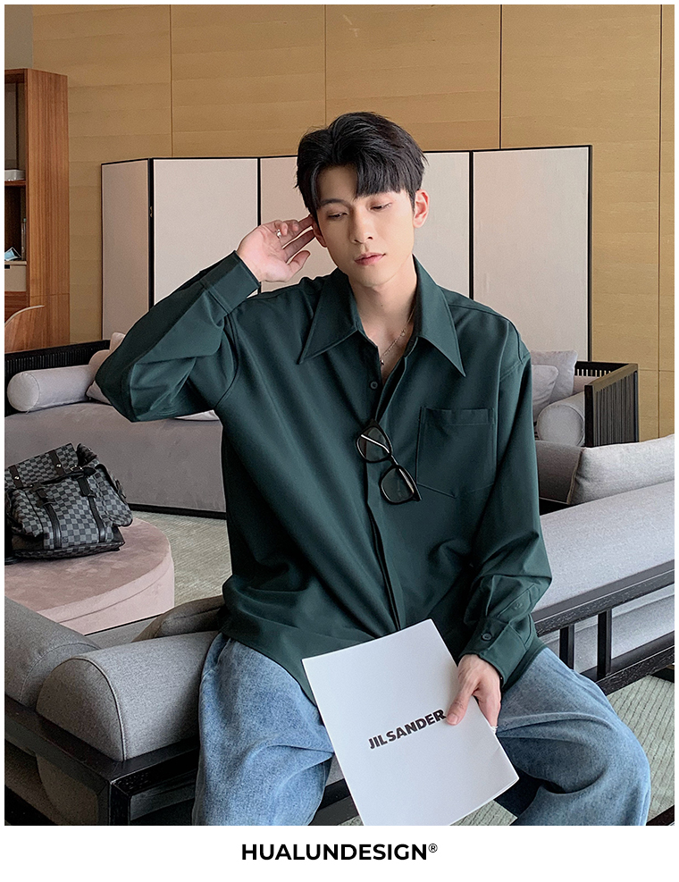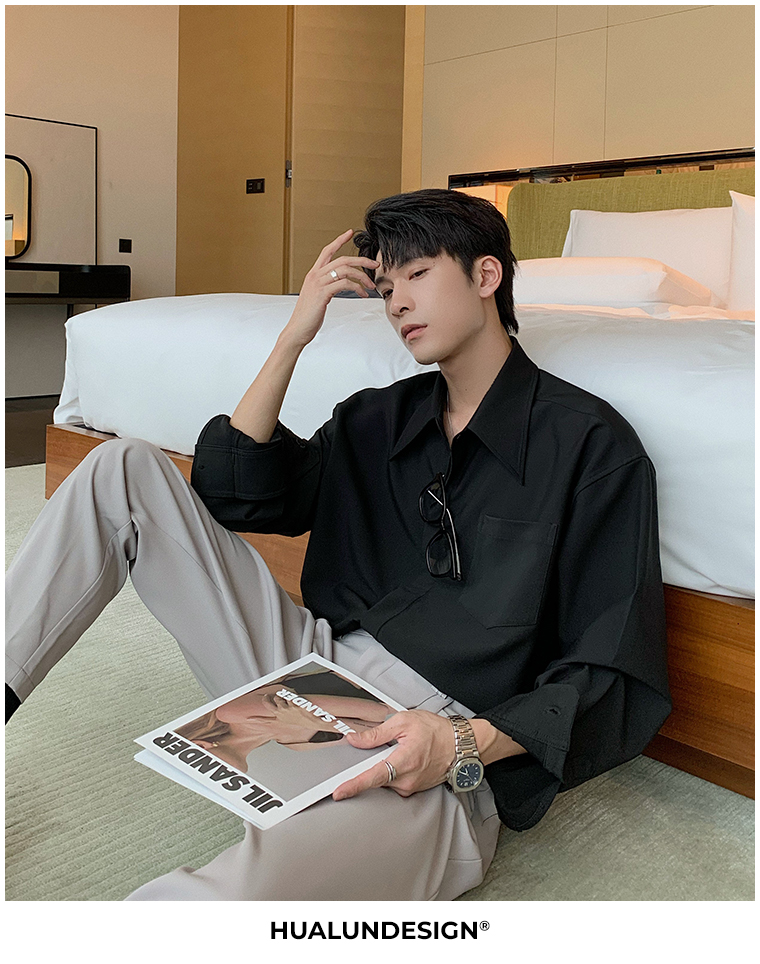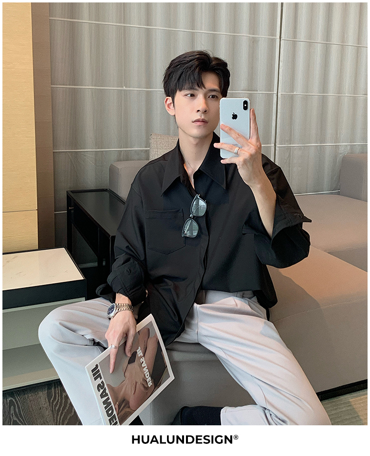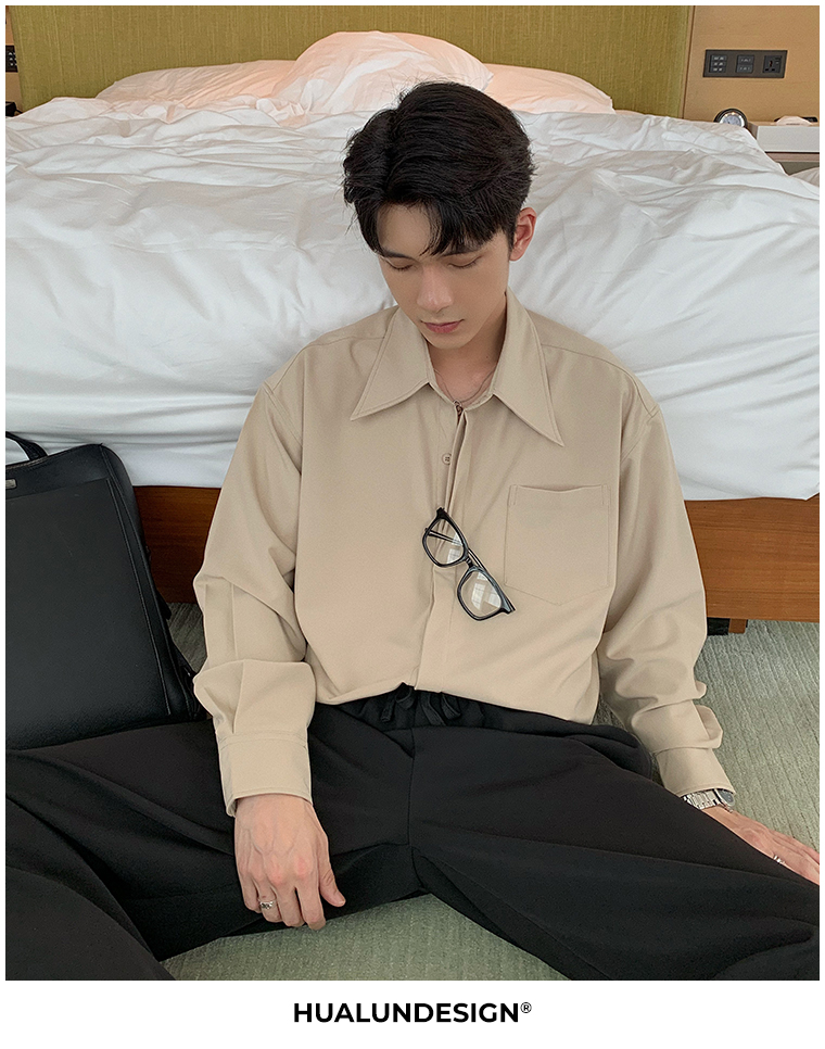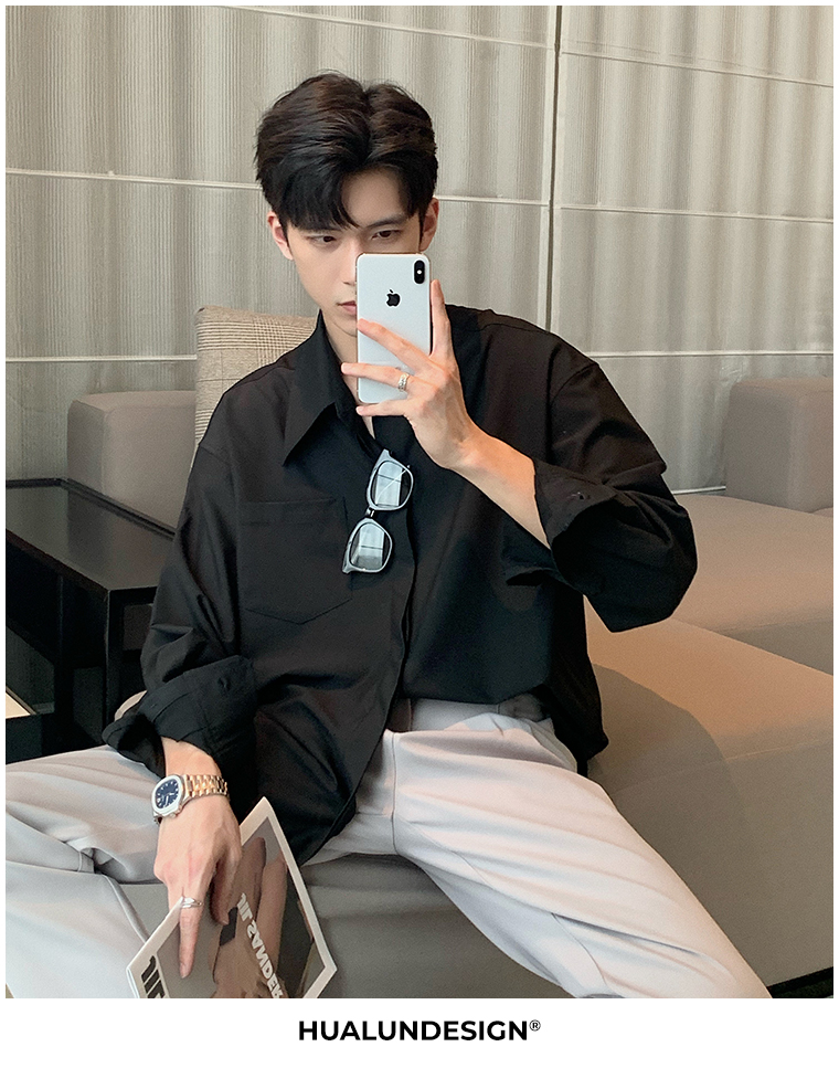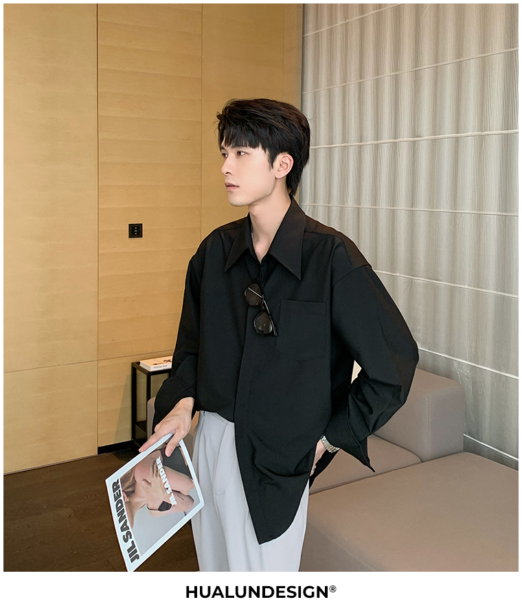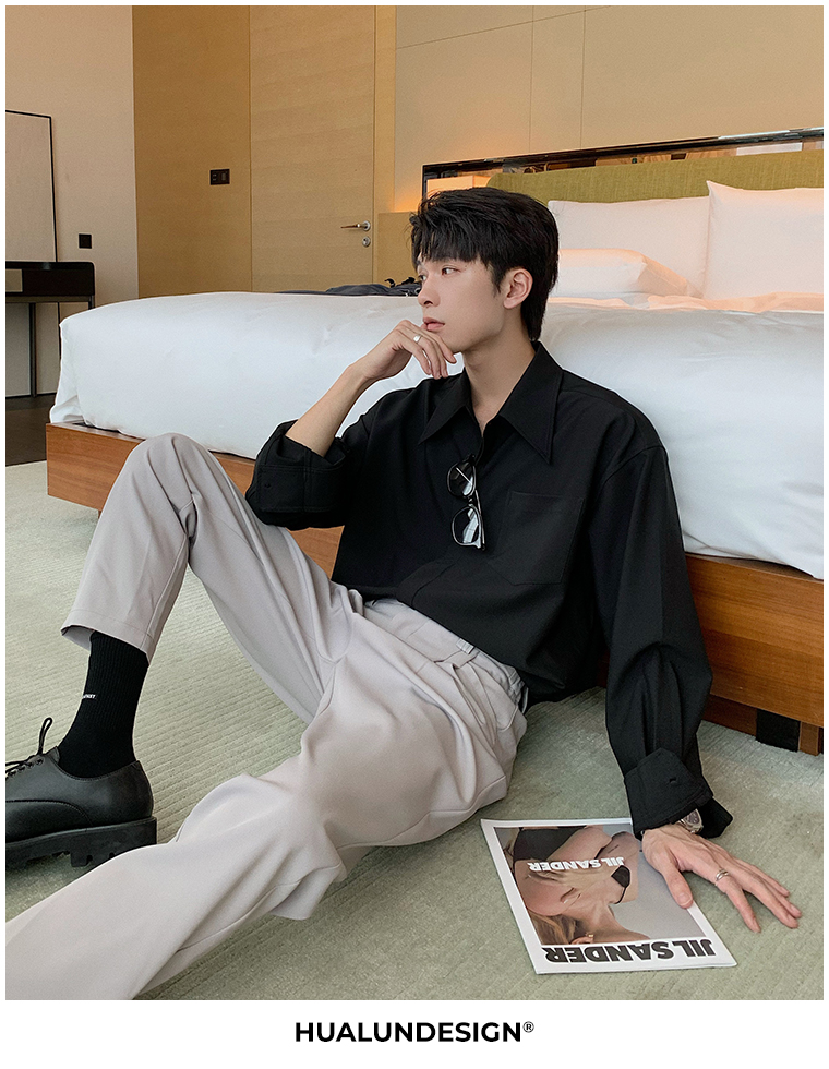 Hualun Autumn Design High-End Casual Gray Shirt for Men, Long-Sleeved, Wrinkle-Free, Solid Color, Korean Style White Shirt