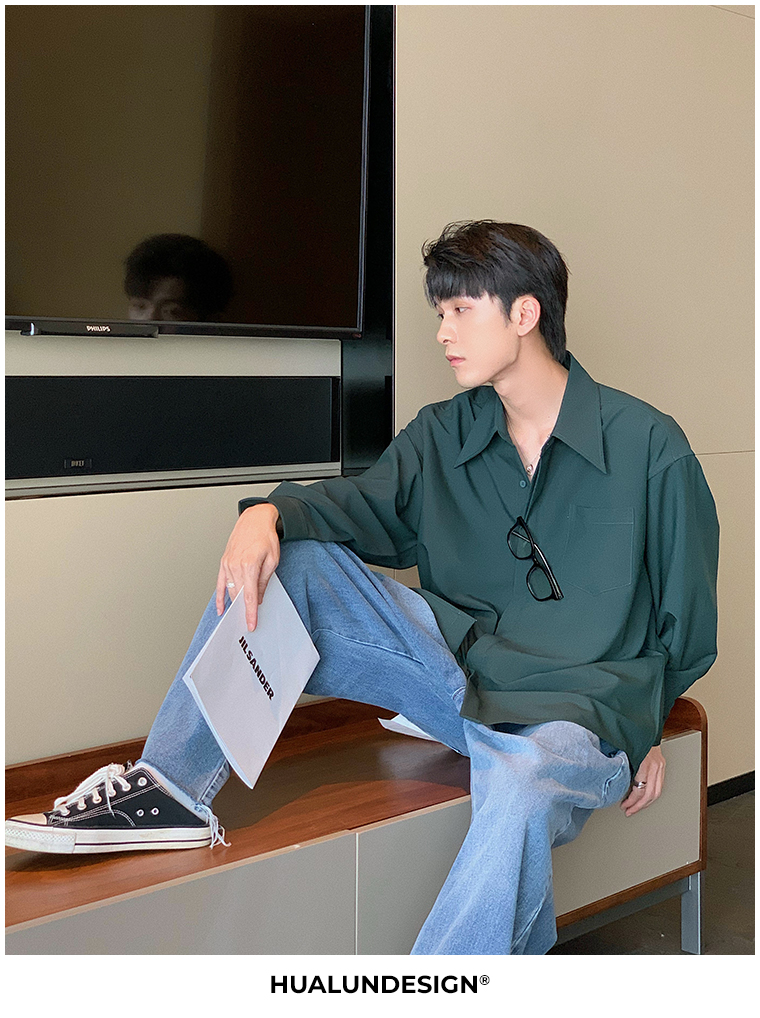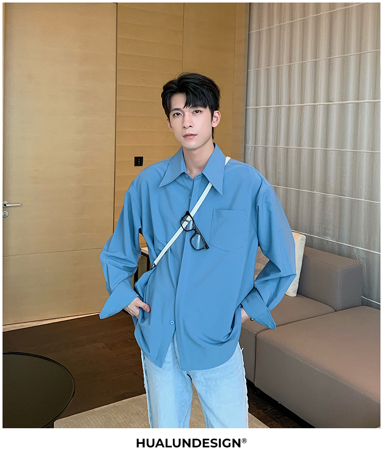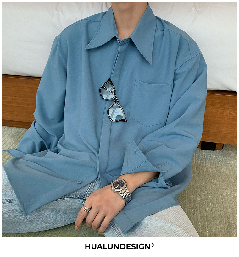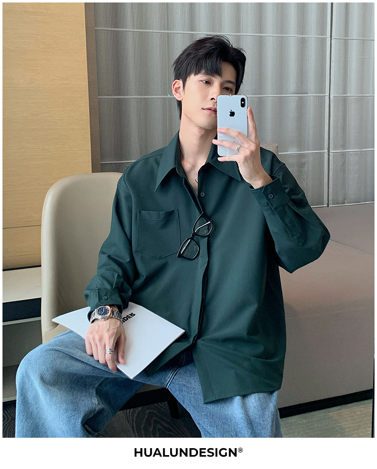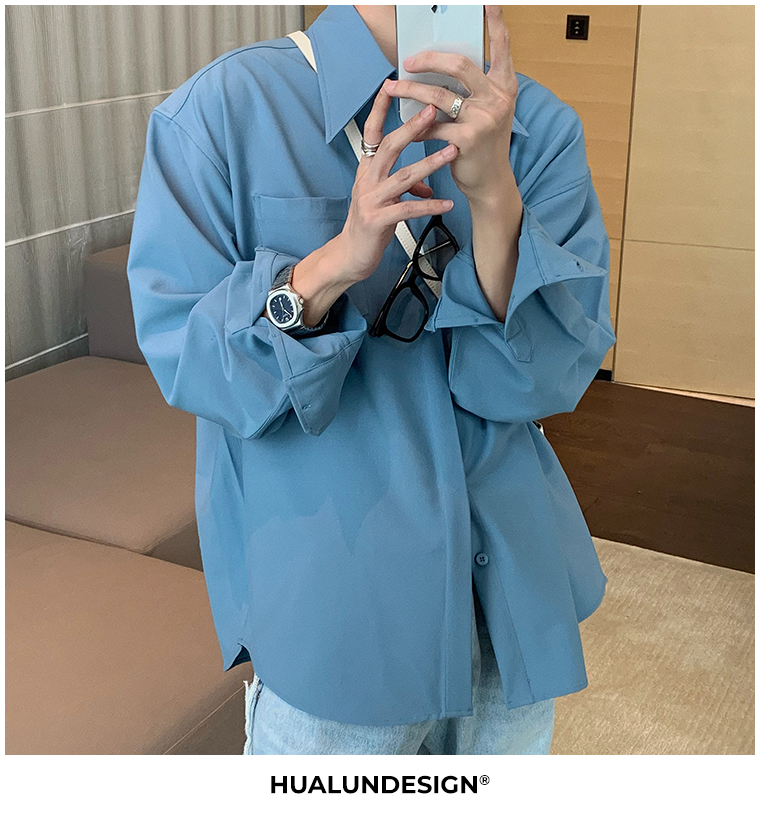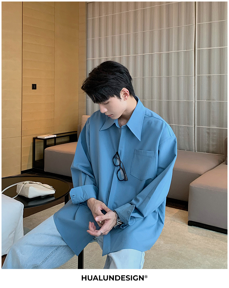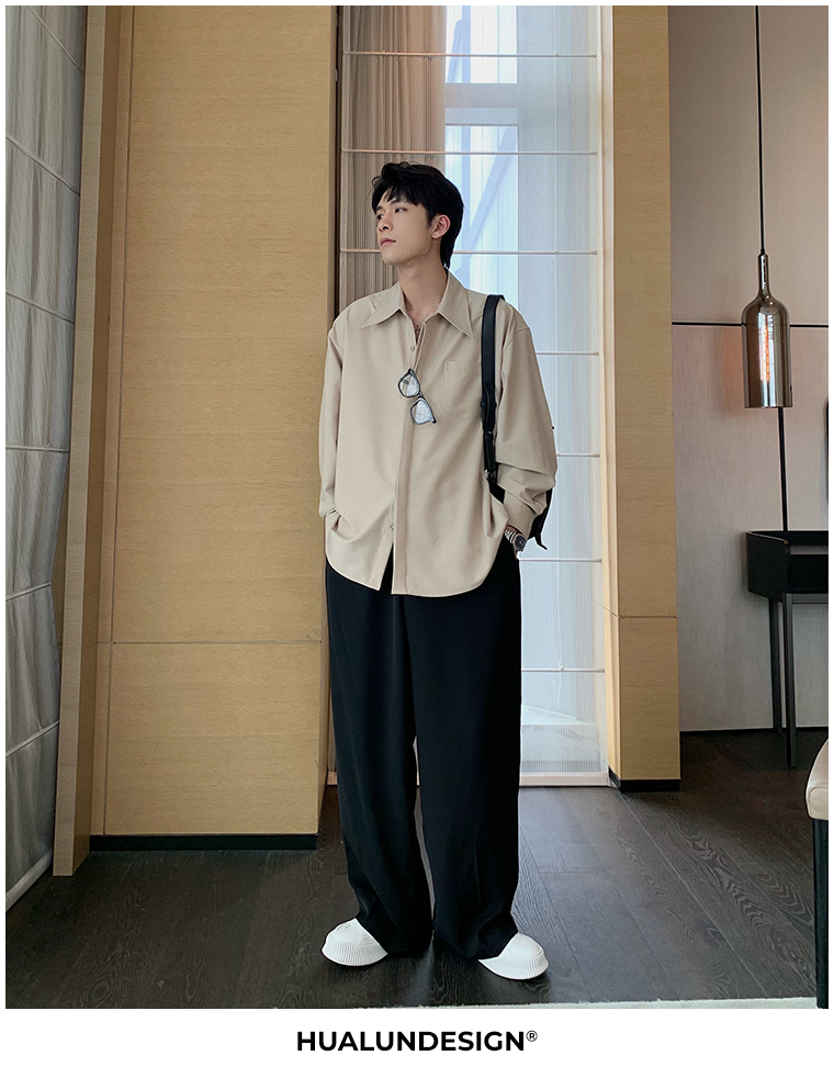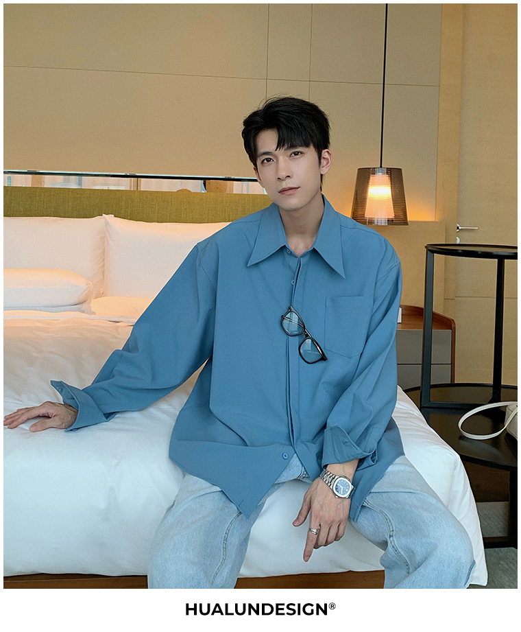 Hualun Autumn Design High-End Casual Gray Shirt for Men, Long-Sleeved, Wrinkle-Free, Solid Color, Korean Style White Shirt
