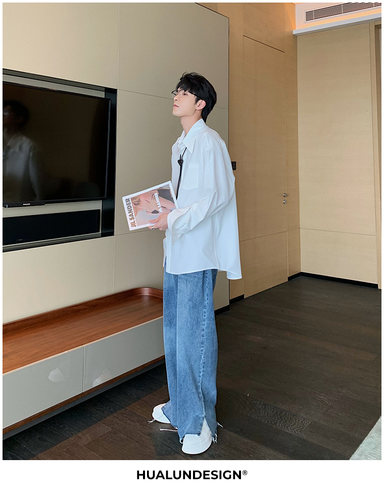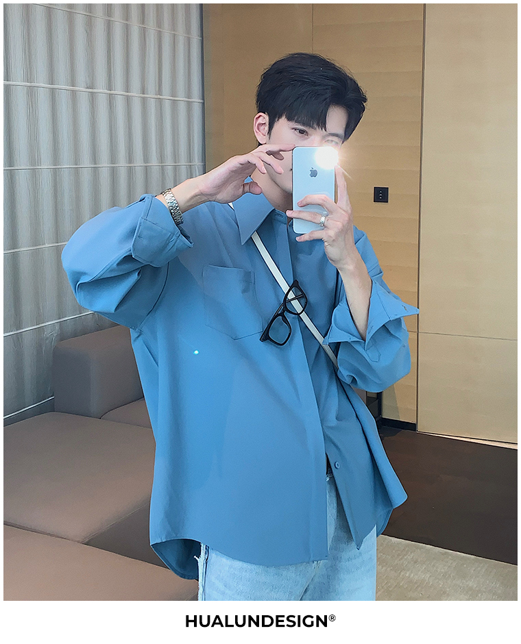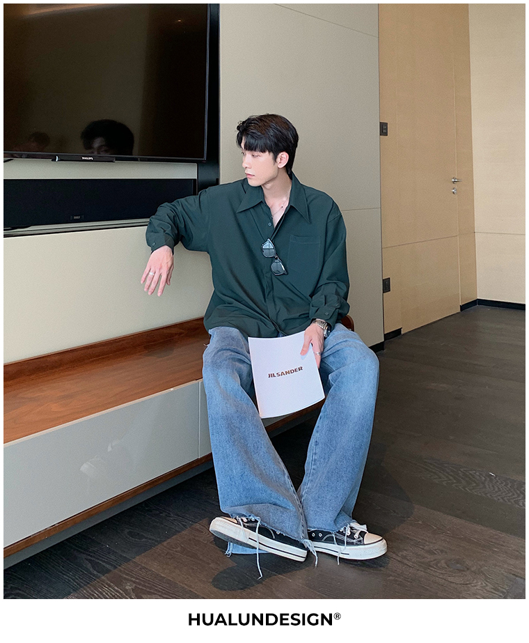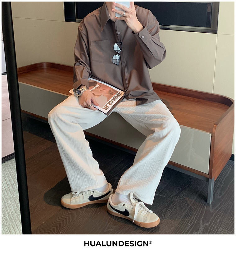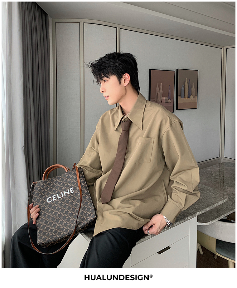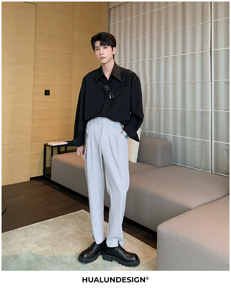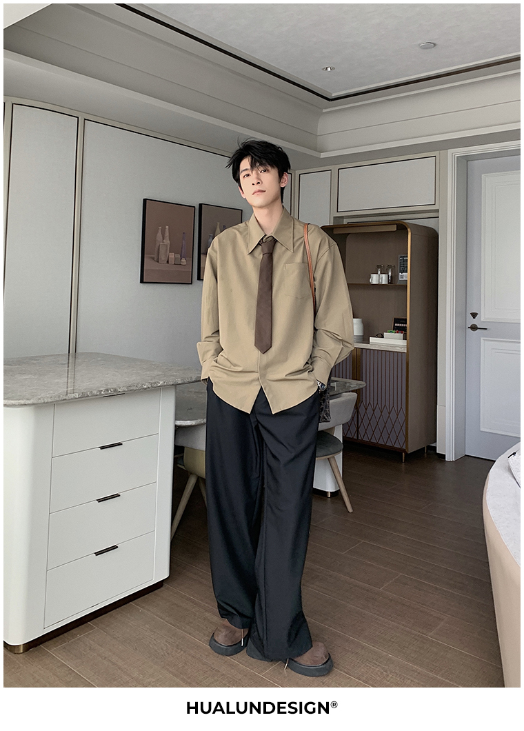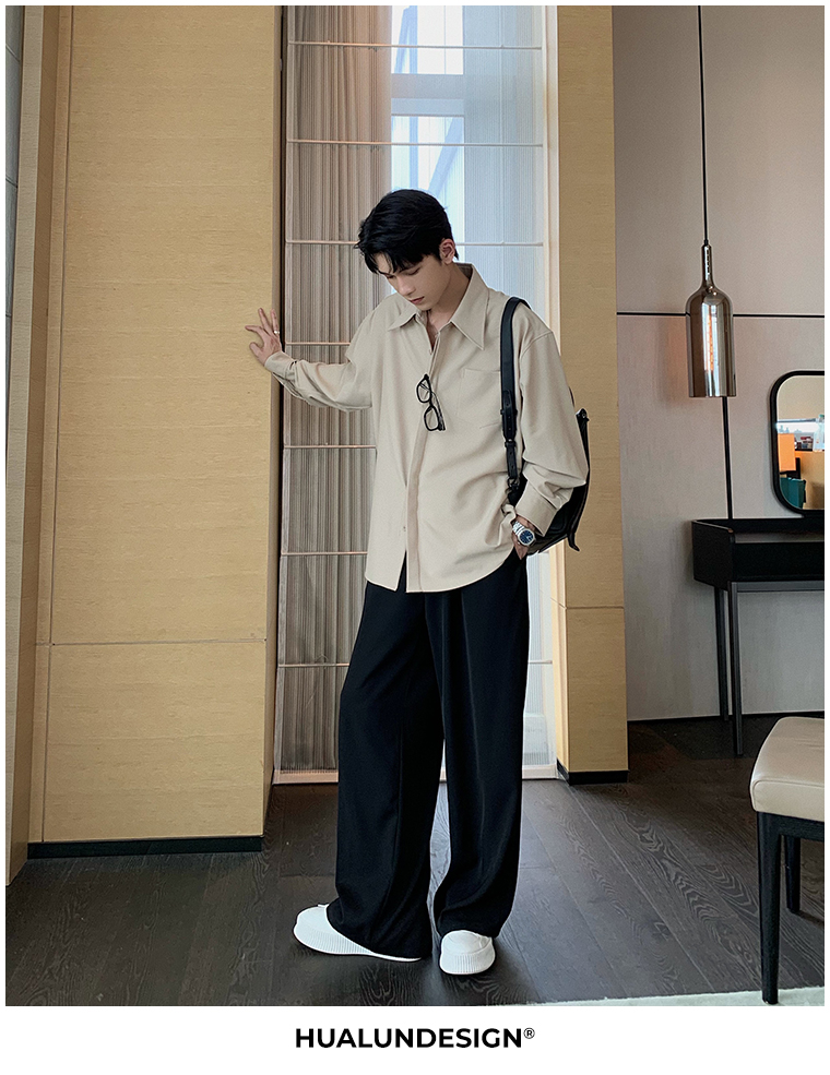 Hualun Autumn Design High-End Casual Gray Shirt for Men, Long-Sleeved, Wrinkle-Free, Solid Color, Korean Style White Shirt