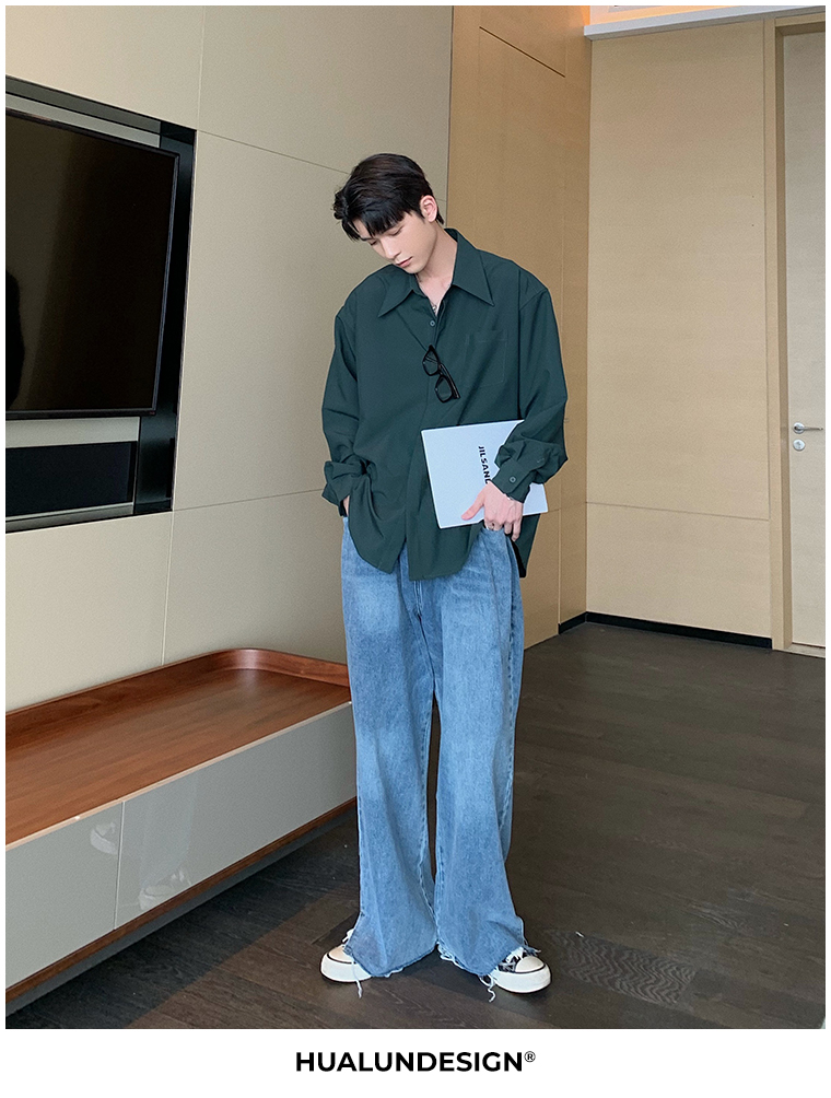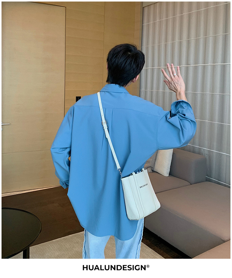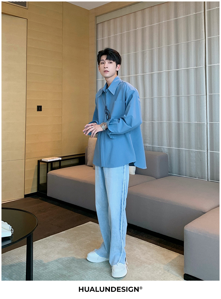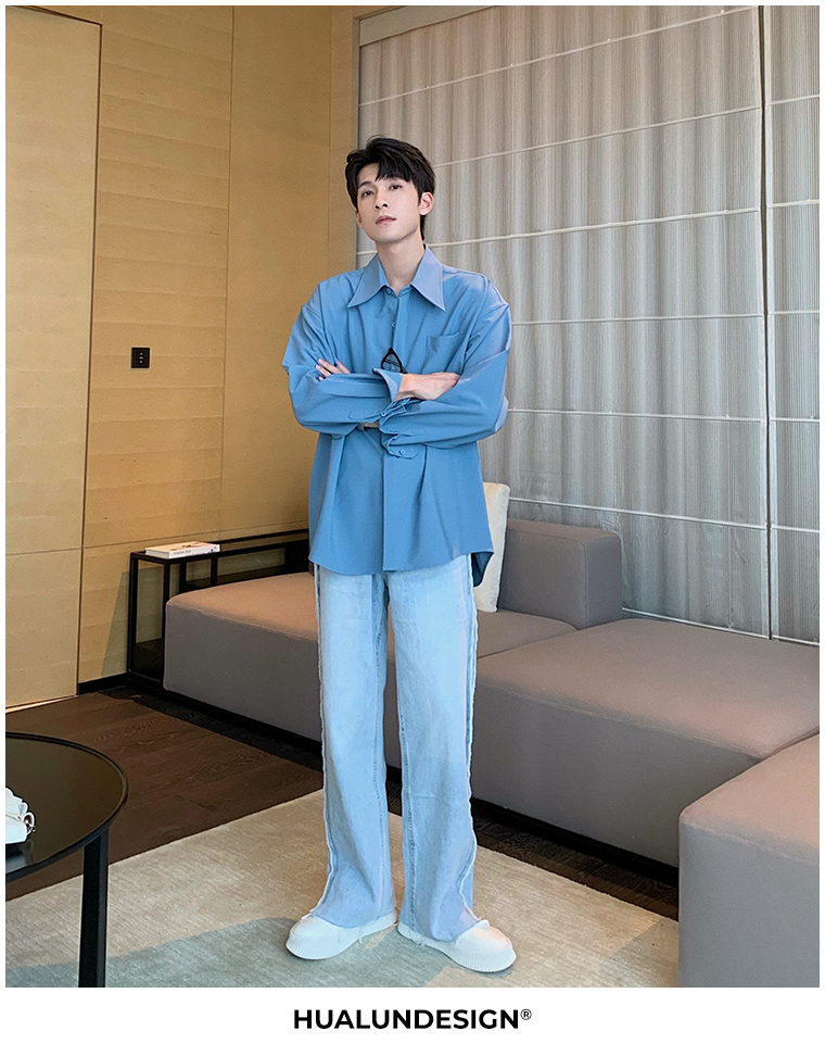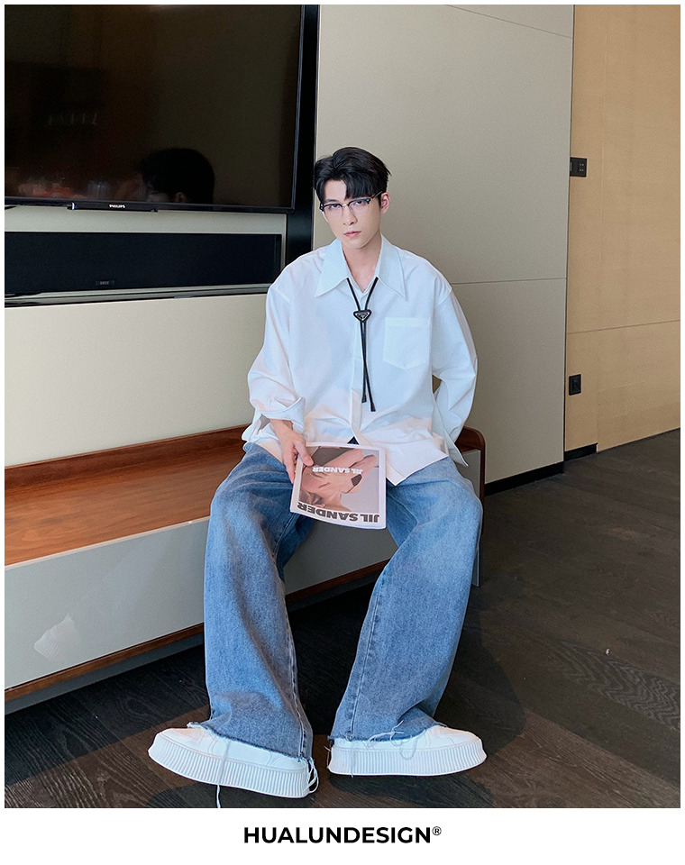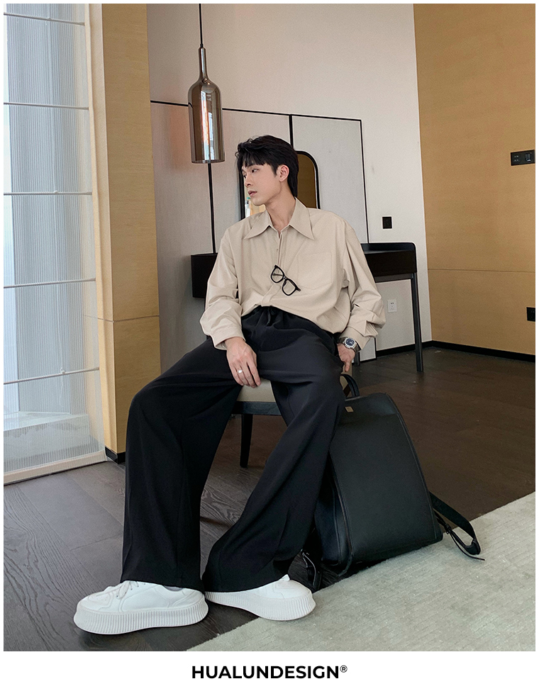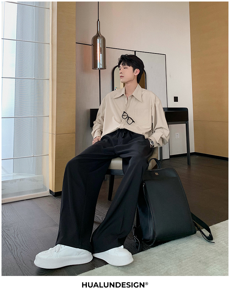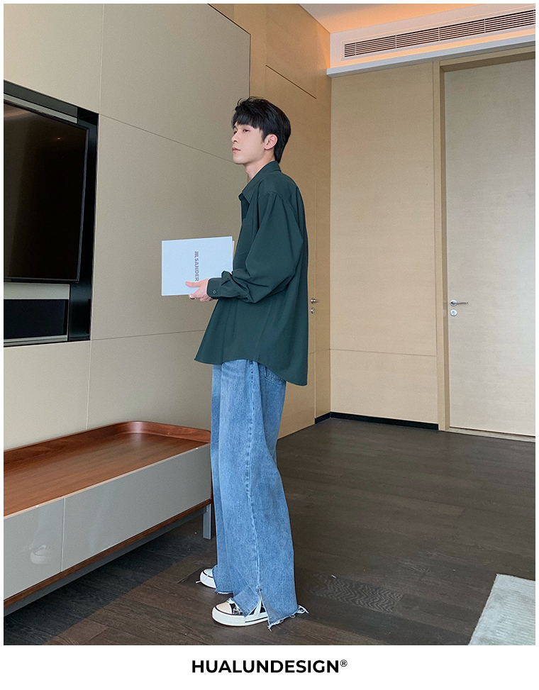 Hualun Autumn Design High-End Casual Gray Shirt for Men, Long-Sleeved, Wrinkle-Free, Solid Color, Korean Style White Shirt