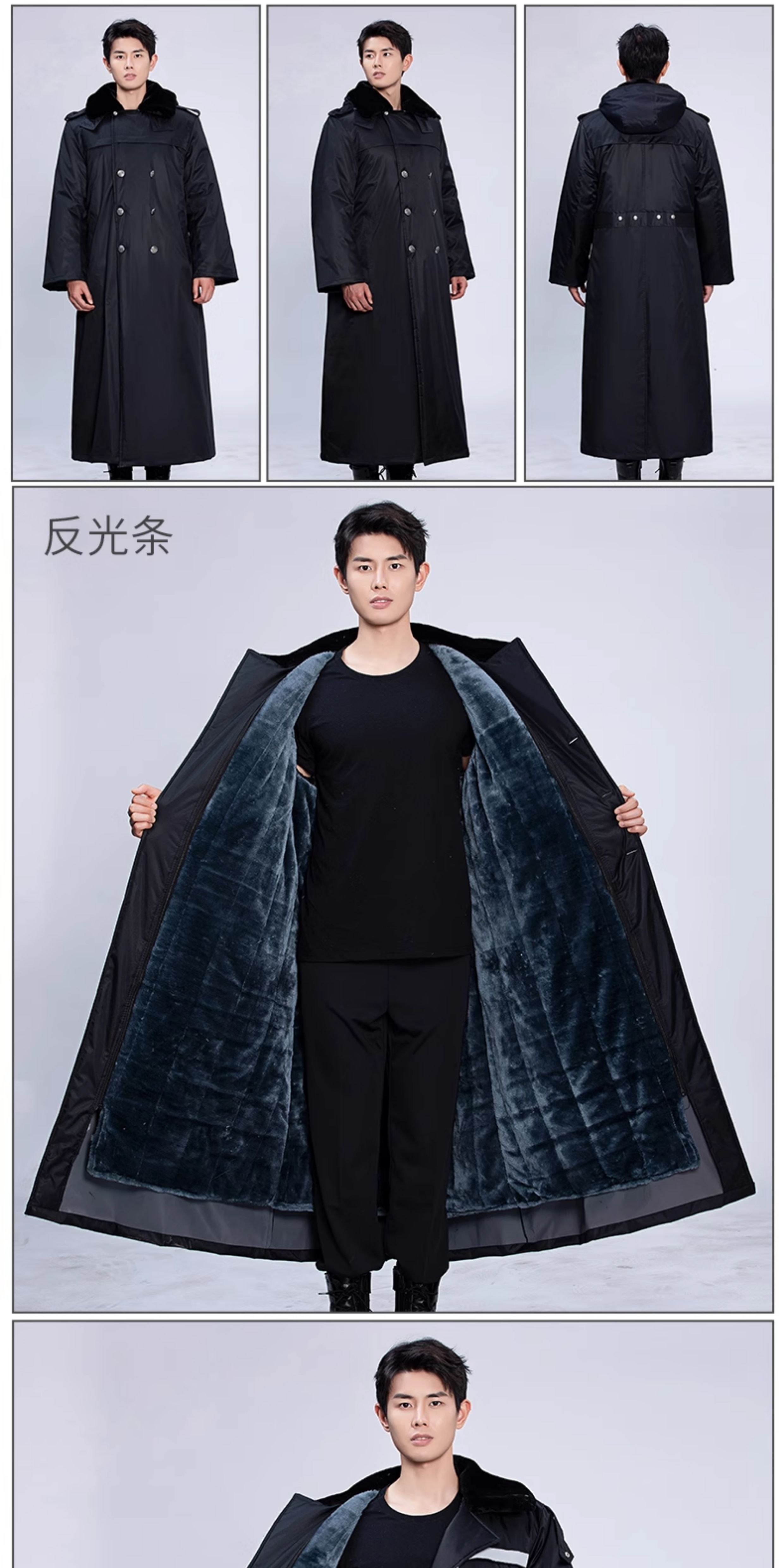 Men's Military Winter Coat, Green, Thickened and Fleece-Lined, Long Style, Cold-Proof Cotton Jacket for Cold Storage, Labor Protection, Security Guard Cotton Coat