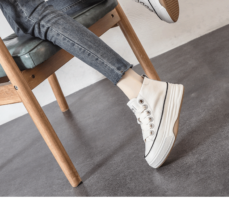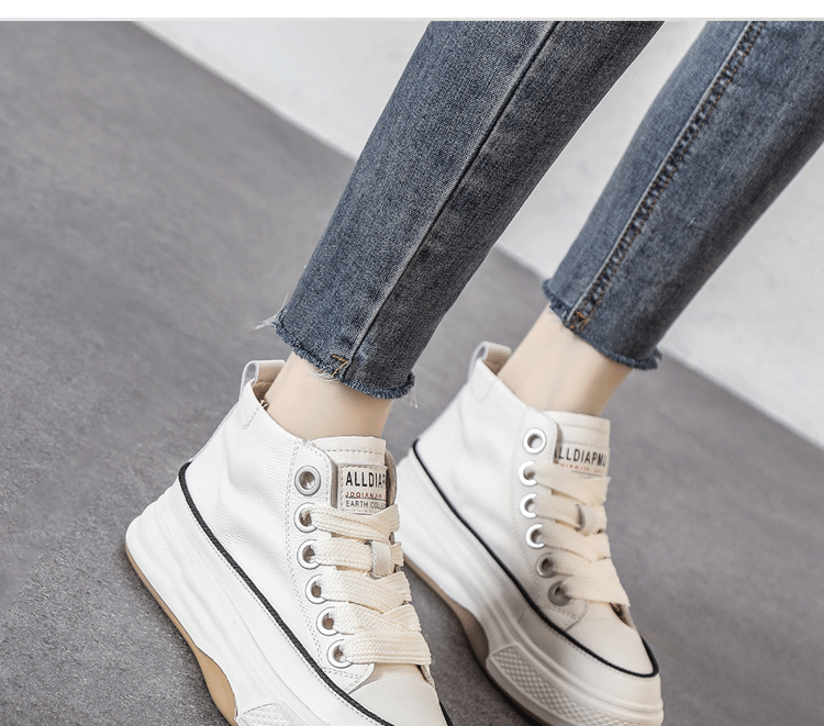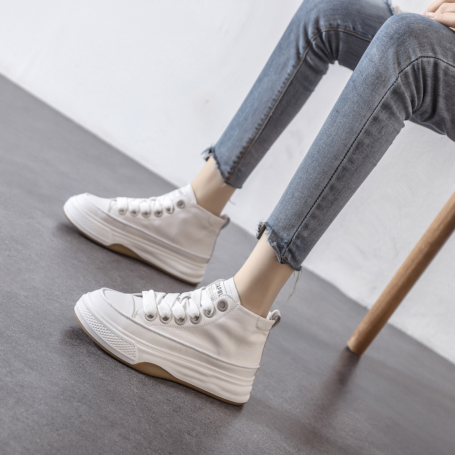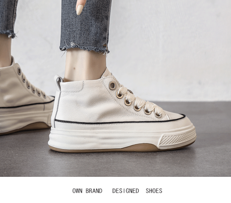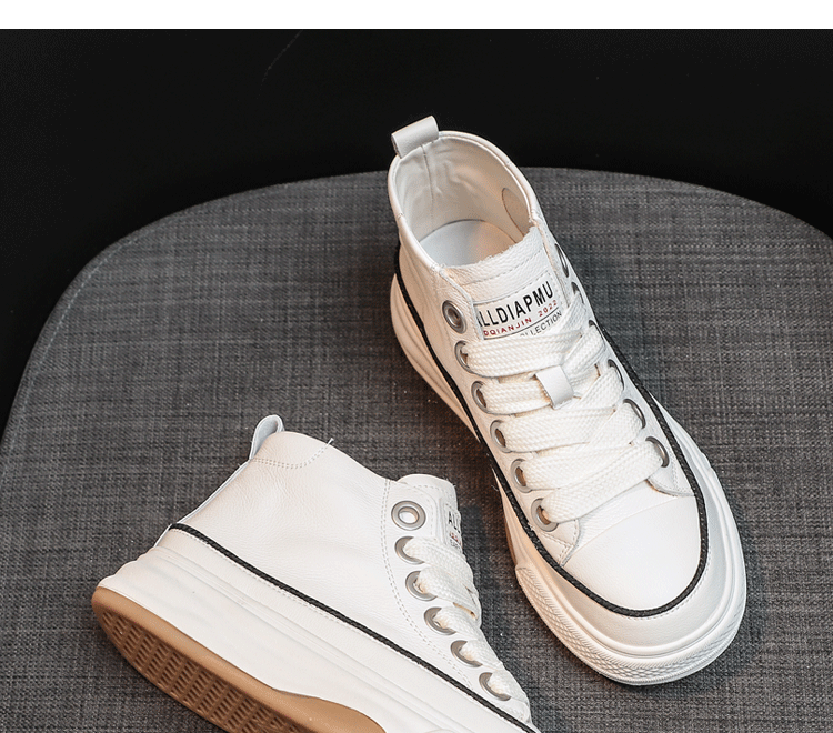 Genuine Leather Sports Casual High-Top Shoes for Women, Thick-Soled Platform White Shoes, 2026 New Spring White Soft-Soled Sneakers