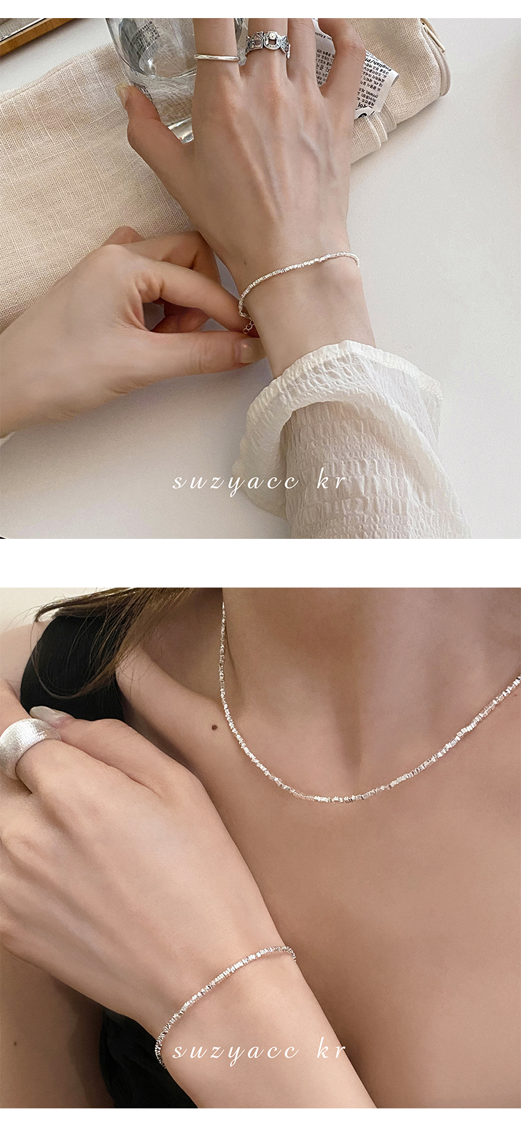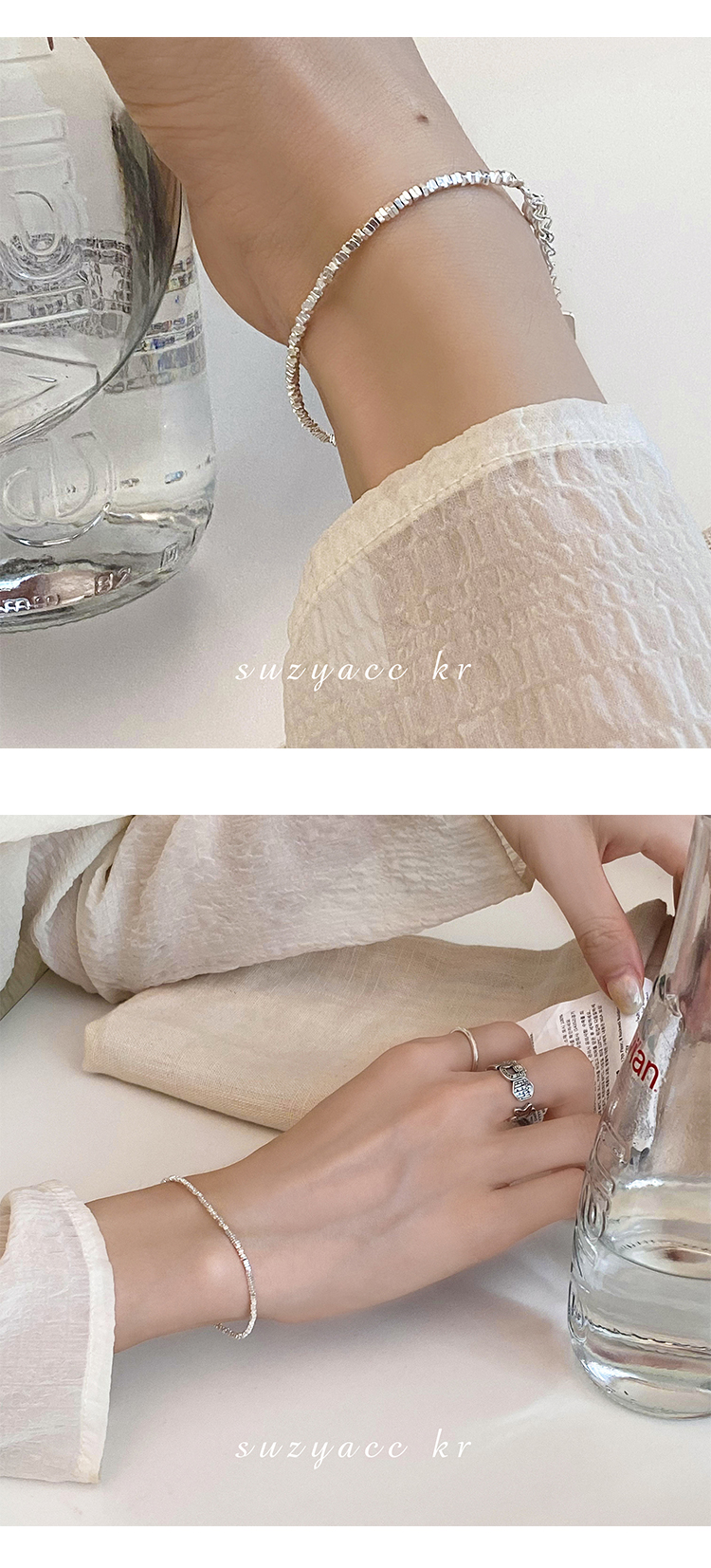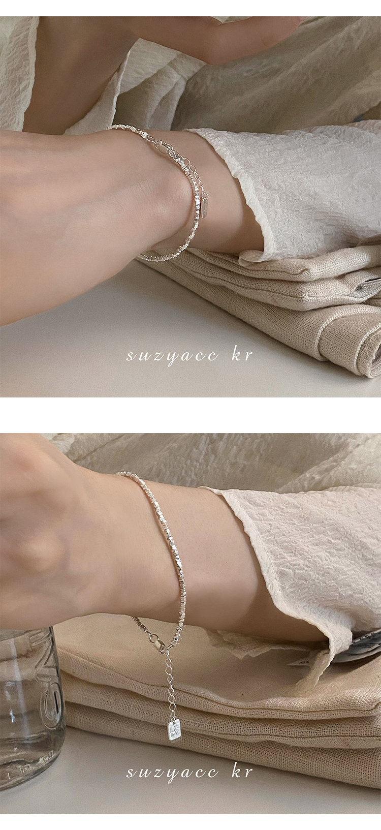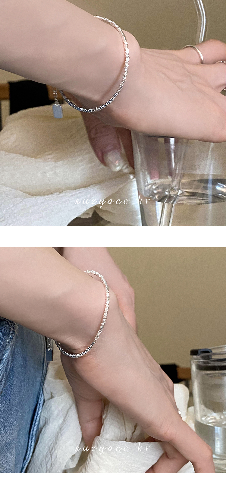 Suzyacc Minimalist Slim Silver Pure Silver Bracelet ins Niche Design Women's Layered Beaded Jewelry