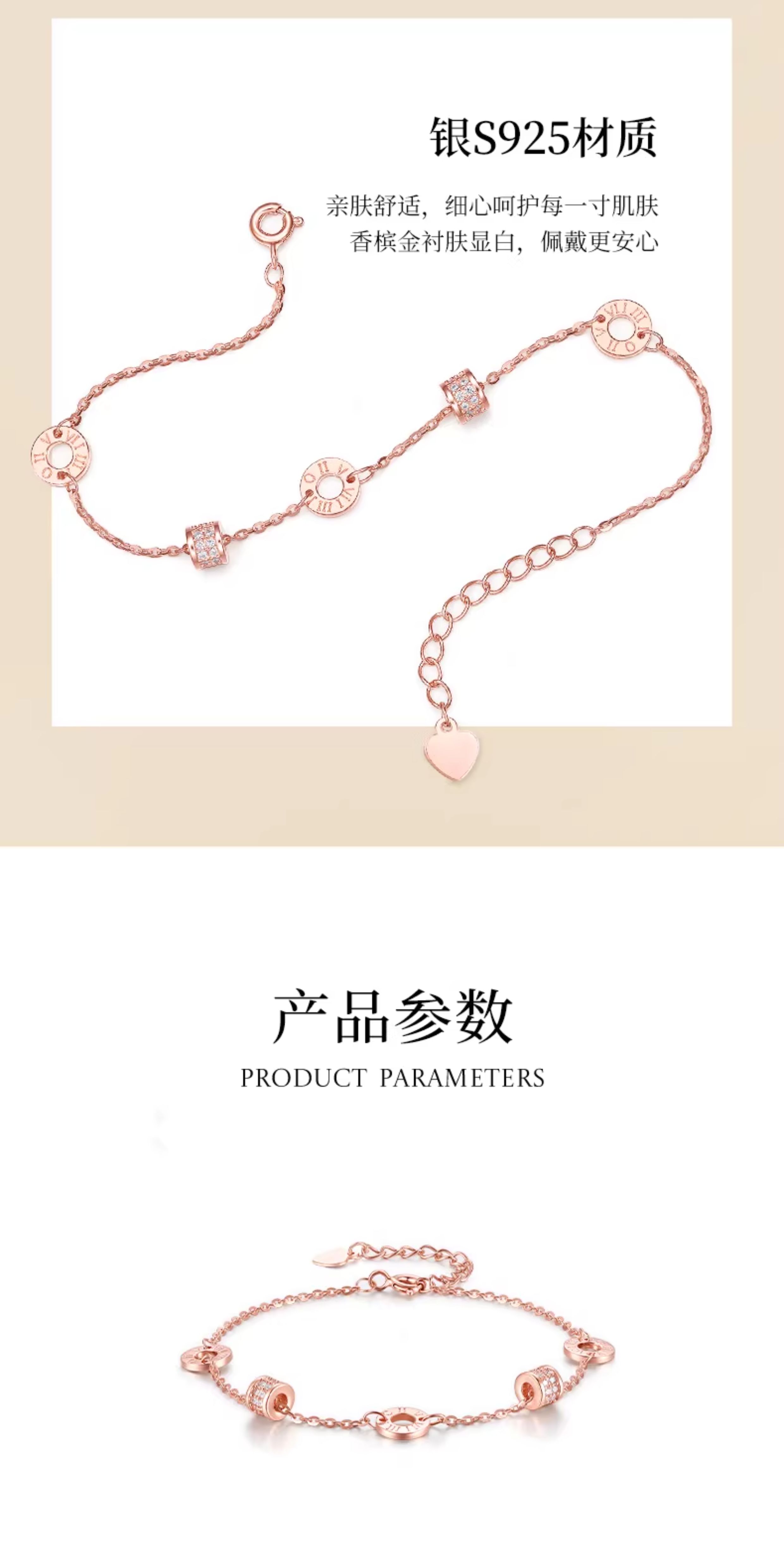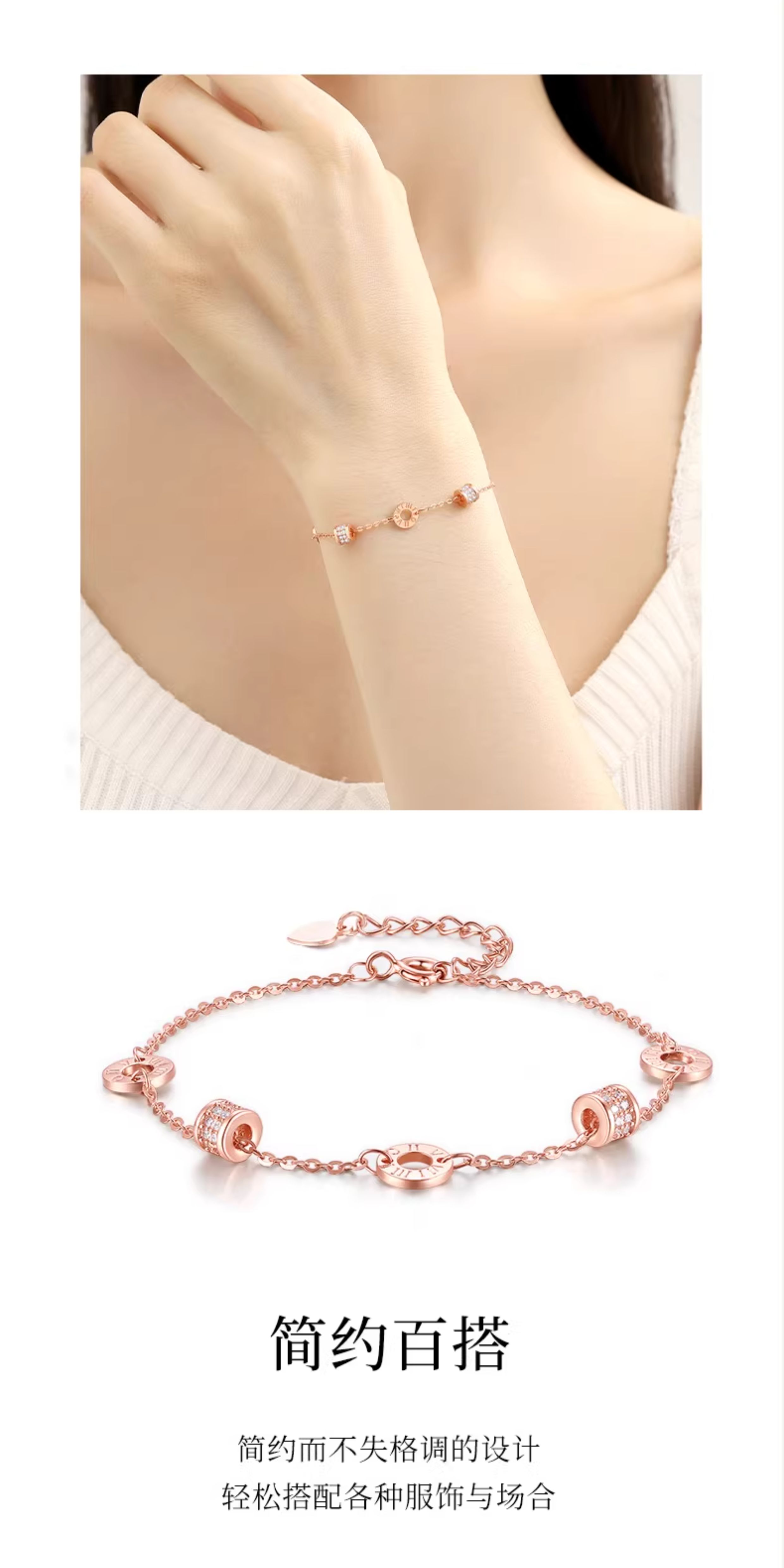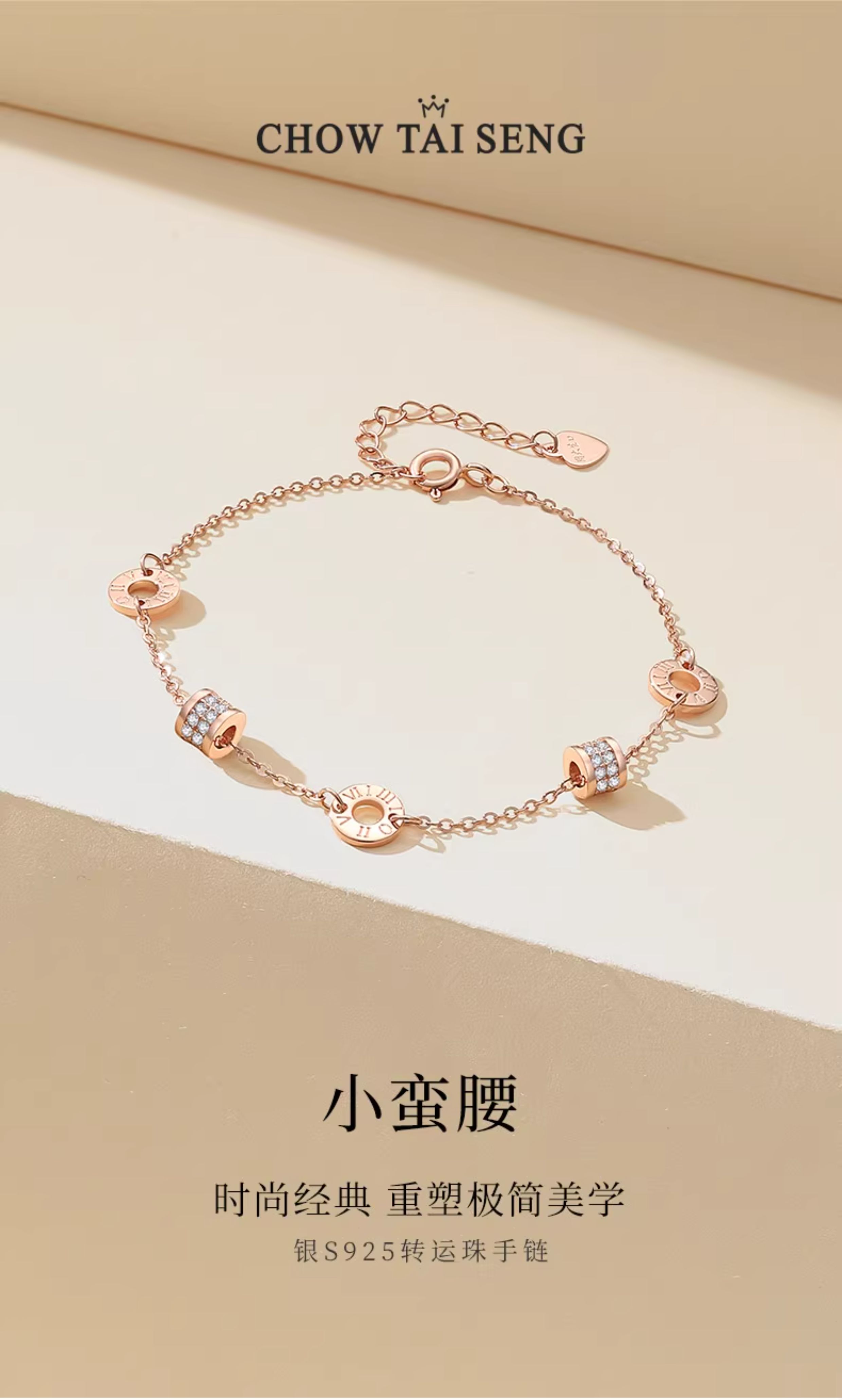 Zhou Dasheng Rose Gold Sterling Silver Waist Bracelet Women's Accessible Luxury Niche style Exquisite Birthday Gift for Girlfriend