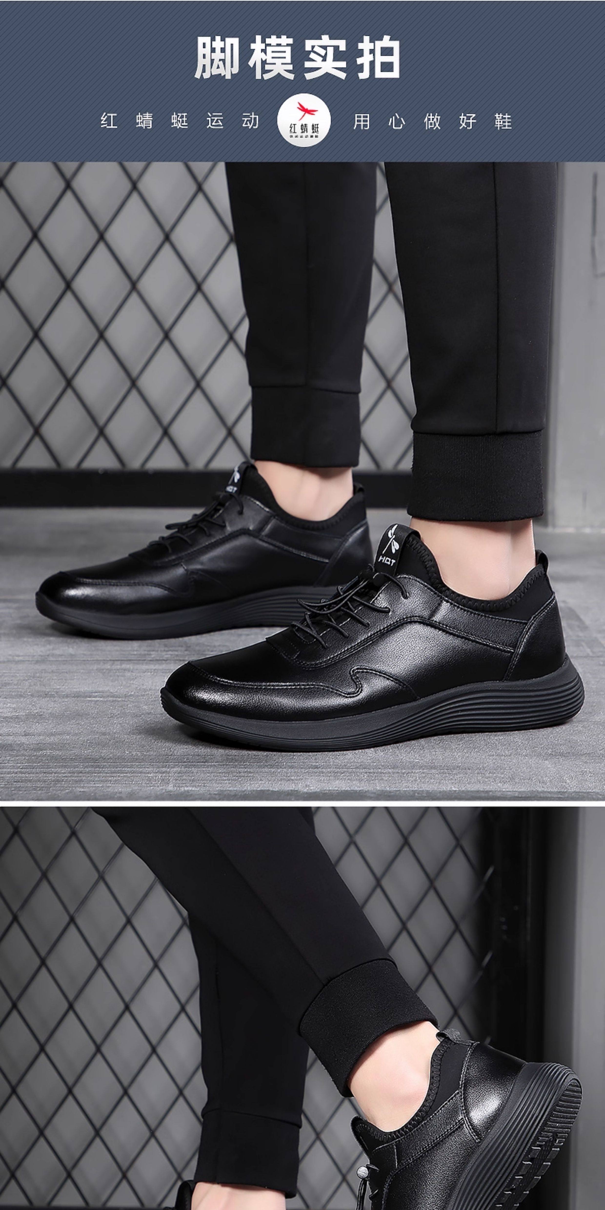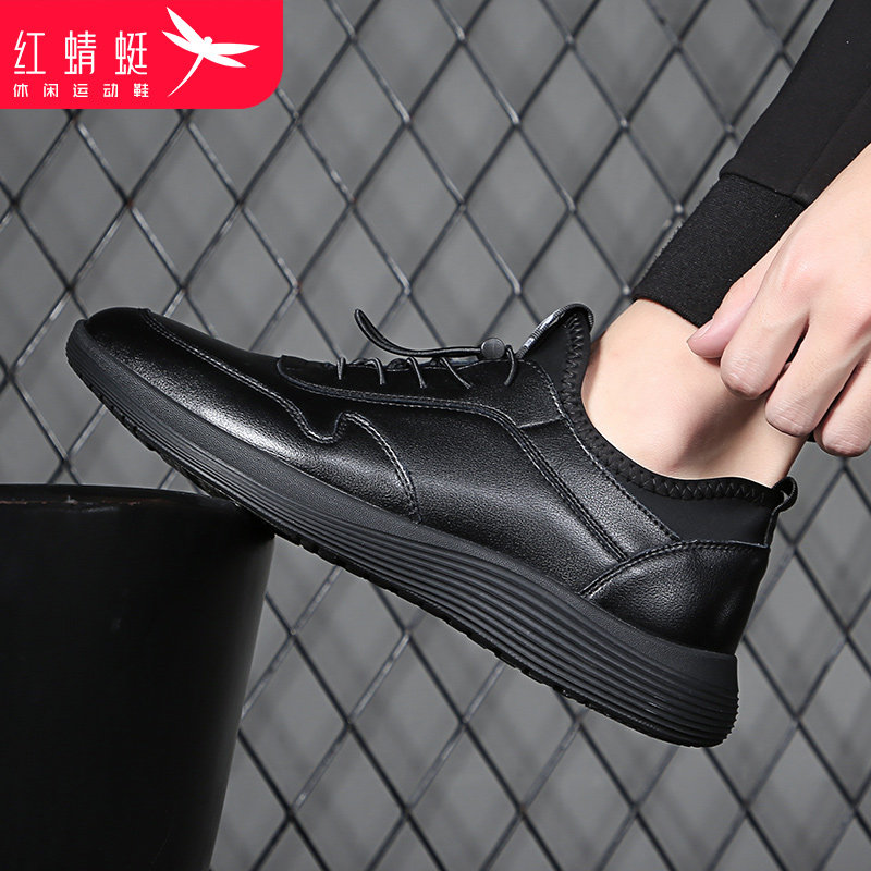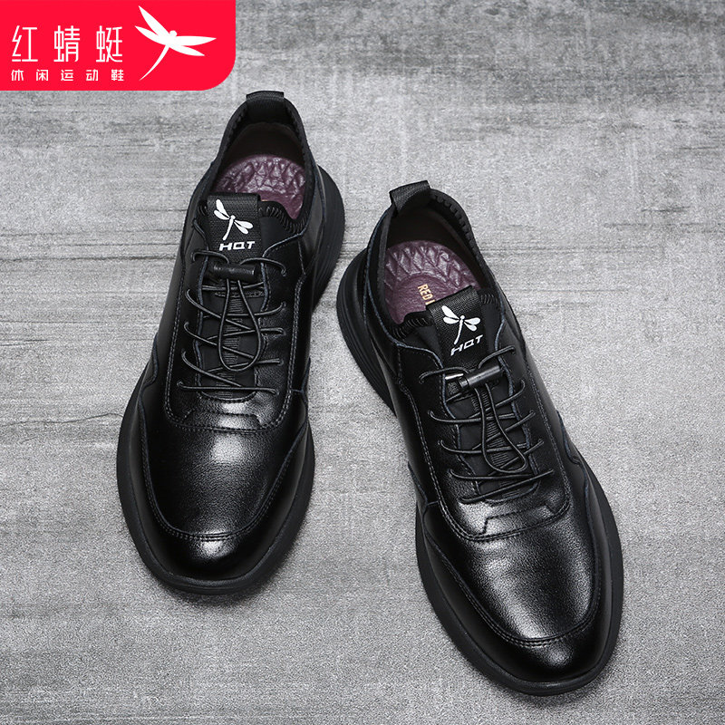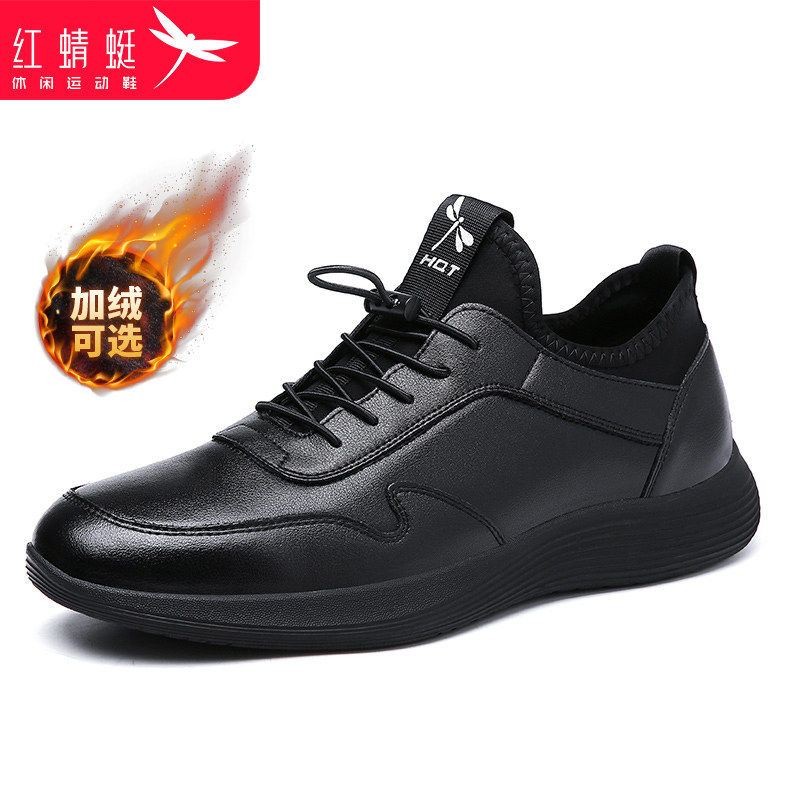 Red Dragonfly Men's Shoes Winter New Style Fleece-Lined Sports Casual Leather Shoes Men's Genuine Leather Soft Sole Cowhide Waterproof Travel Shoes