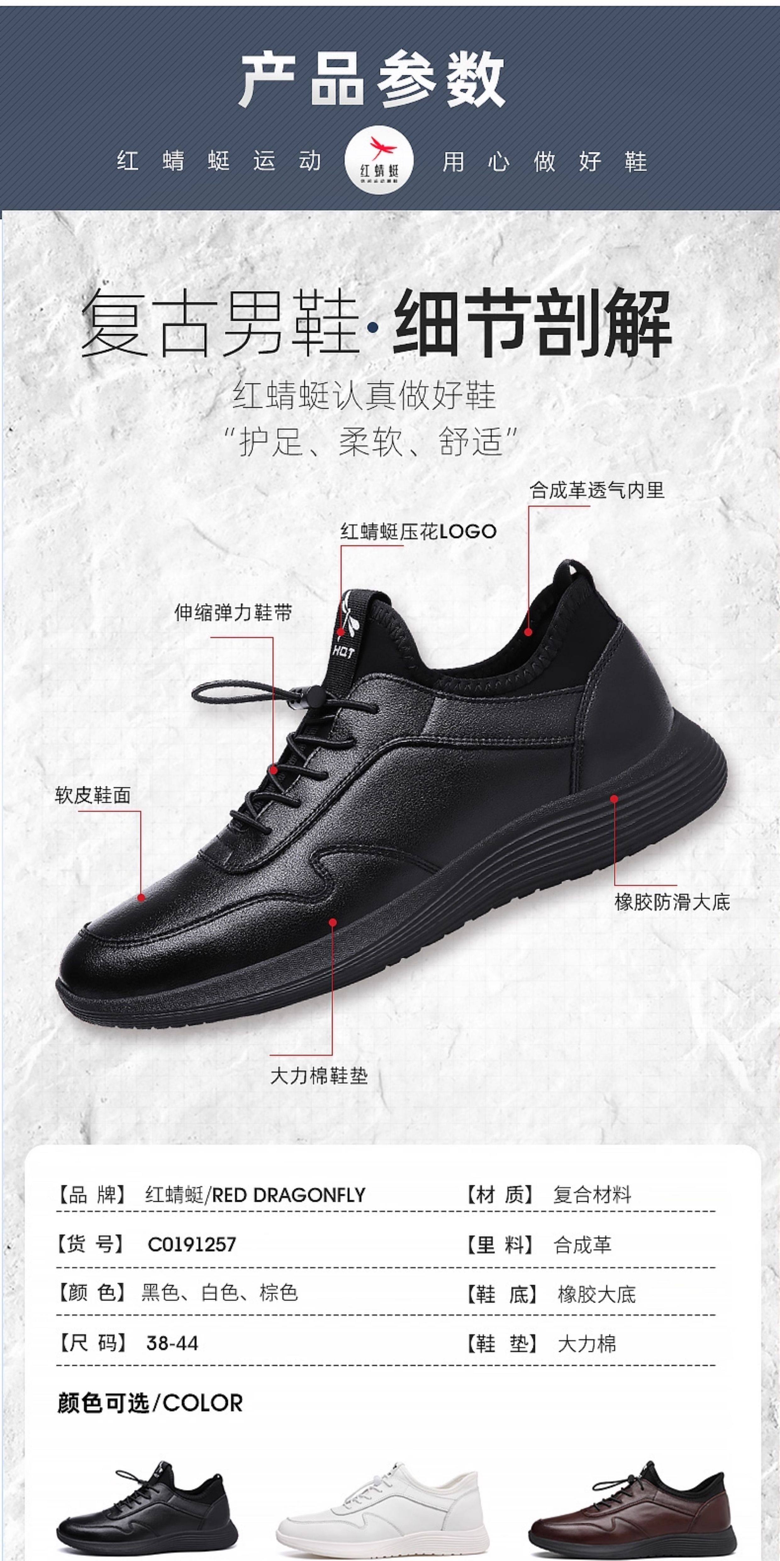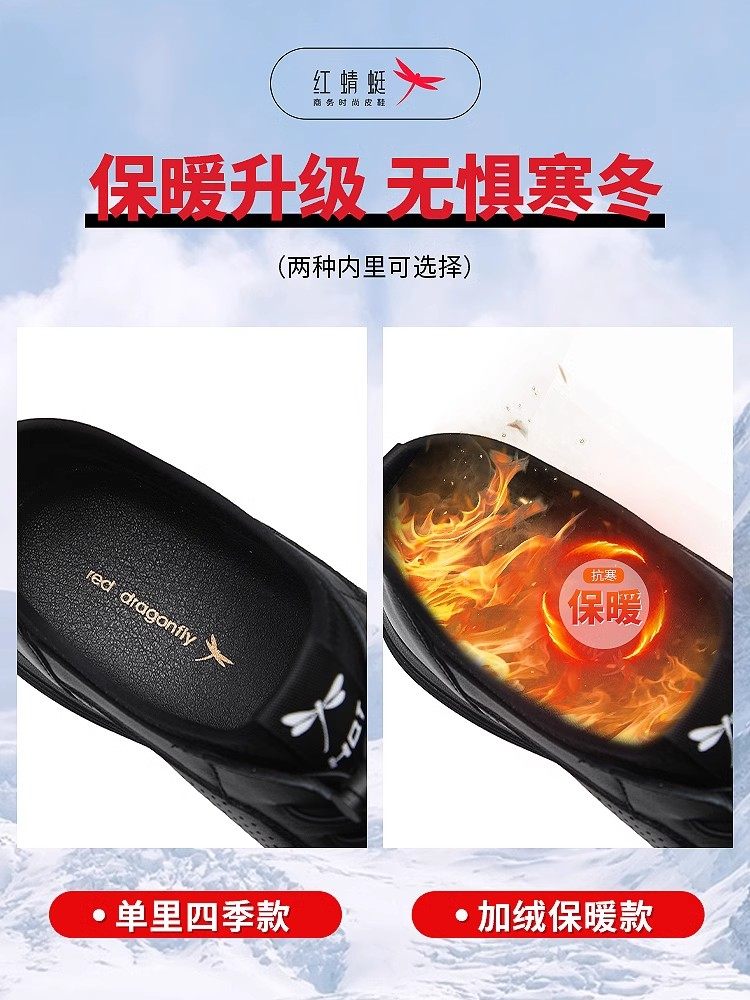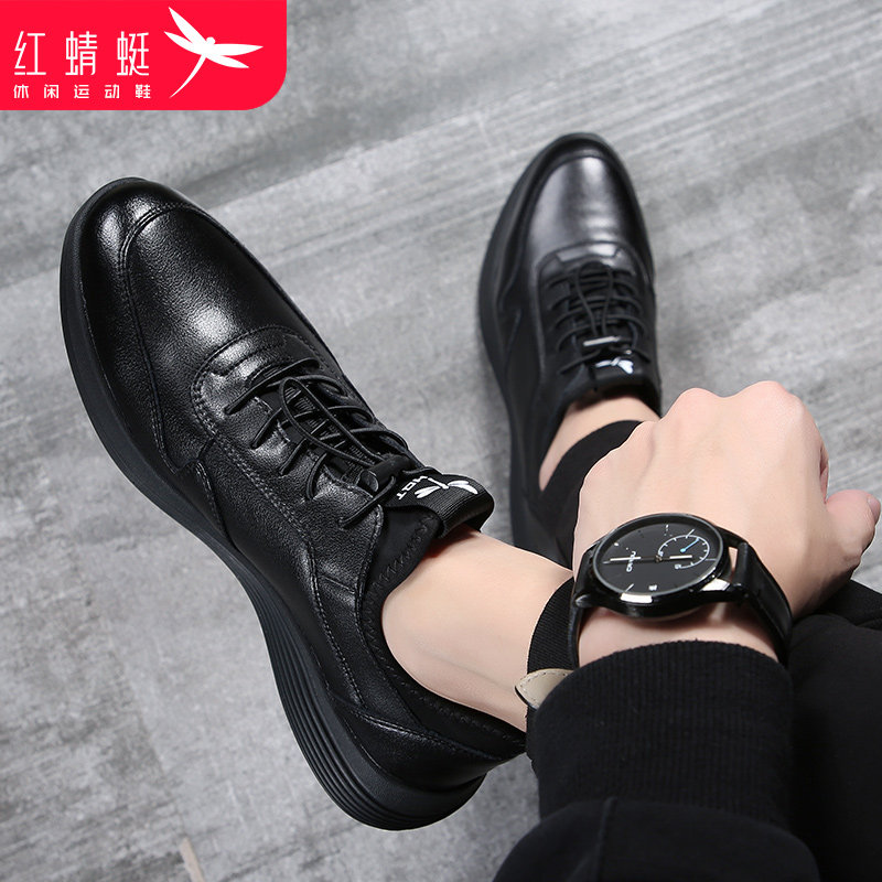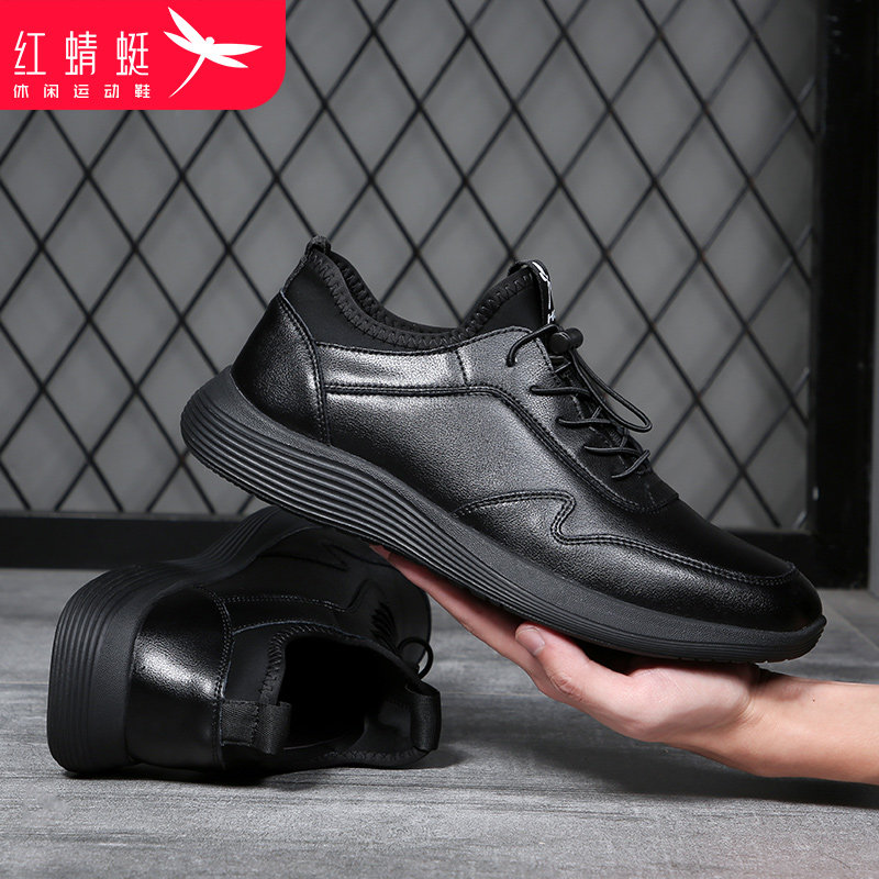 Red Dragonfly Men's Shoes Winter New Style Fleece-Lined Sports Casual Leather Shoes Men's Genuine Leather Soft Sole Cowhide Waterproof Travel Shoes