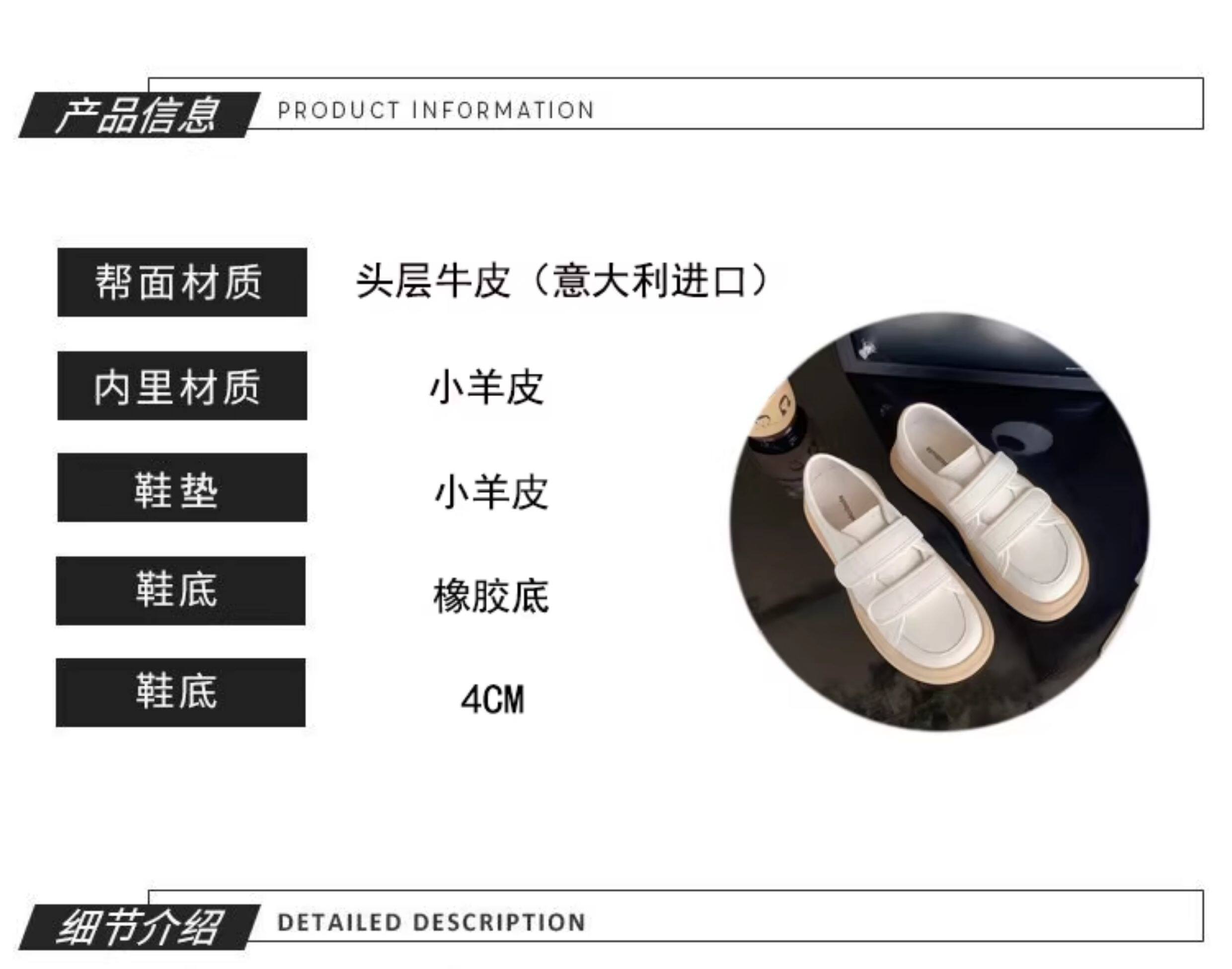 Hong Kong Genuine Leather Thick-Soled White Sneakers for Women, New Spring and Autumn Style, Velcro Round-Toe Cute Loafers, Casual Sports Sneakers