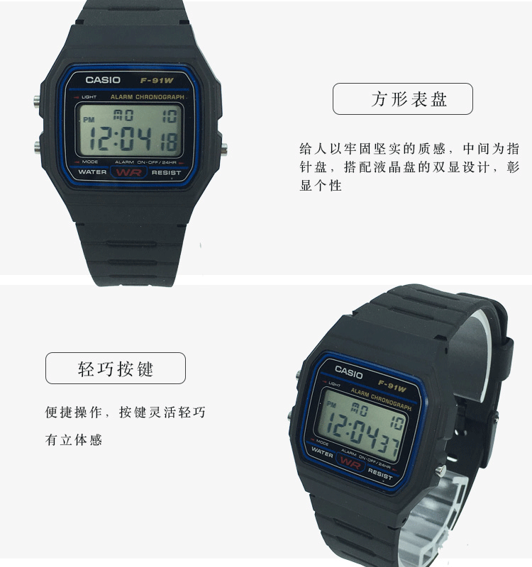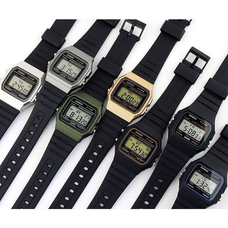 Casio Watch Casio F-91Wm-3A Green Frame Waterproof Calendar Alarm Clock Stopwatch Retro Digital Small Square Watch