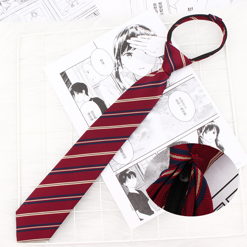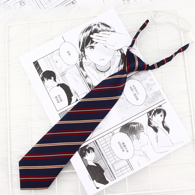 Red Blue Gold Red Stripes Japanese style Free Bean Bag Zipper Preppy style Tie JK-DK Tie Feather Bow Tie