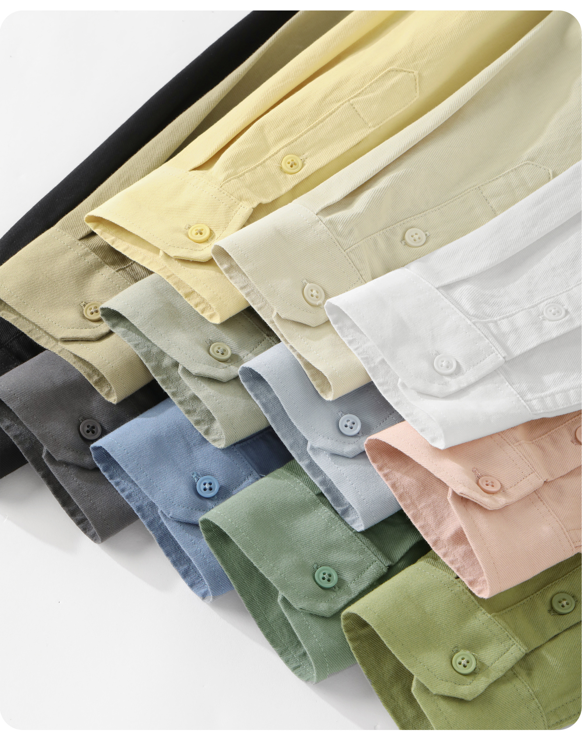 Jieyi 100% Pure Cotton Soft-Touch Versatile Solid Color Shirt for Men, Simple, Stylish, Artistic Style, Can Be Worn Alone as a Jacket or Top