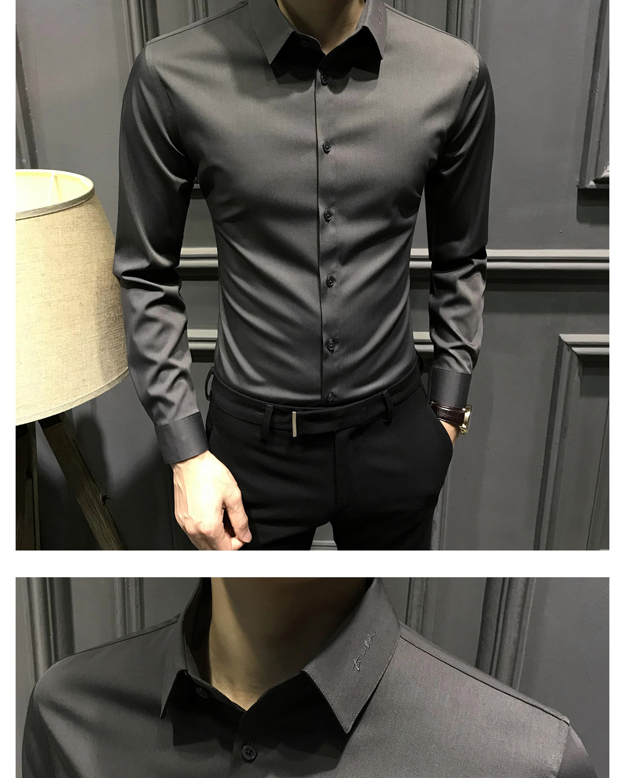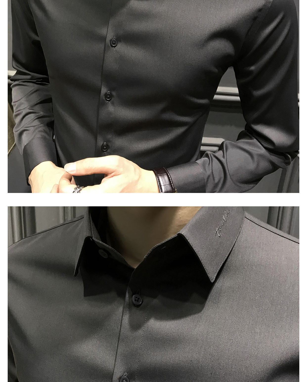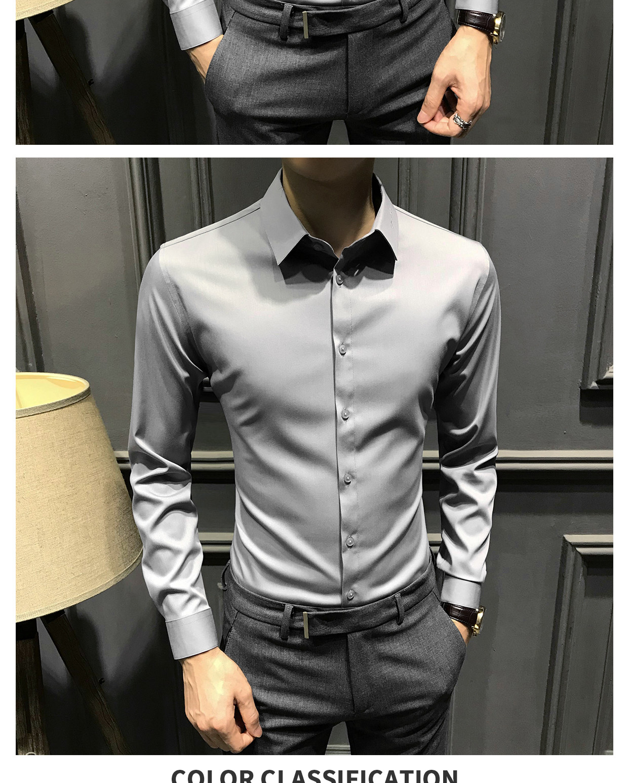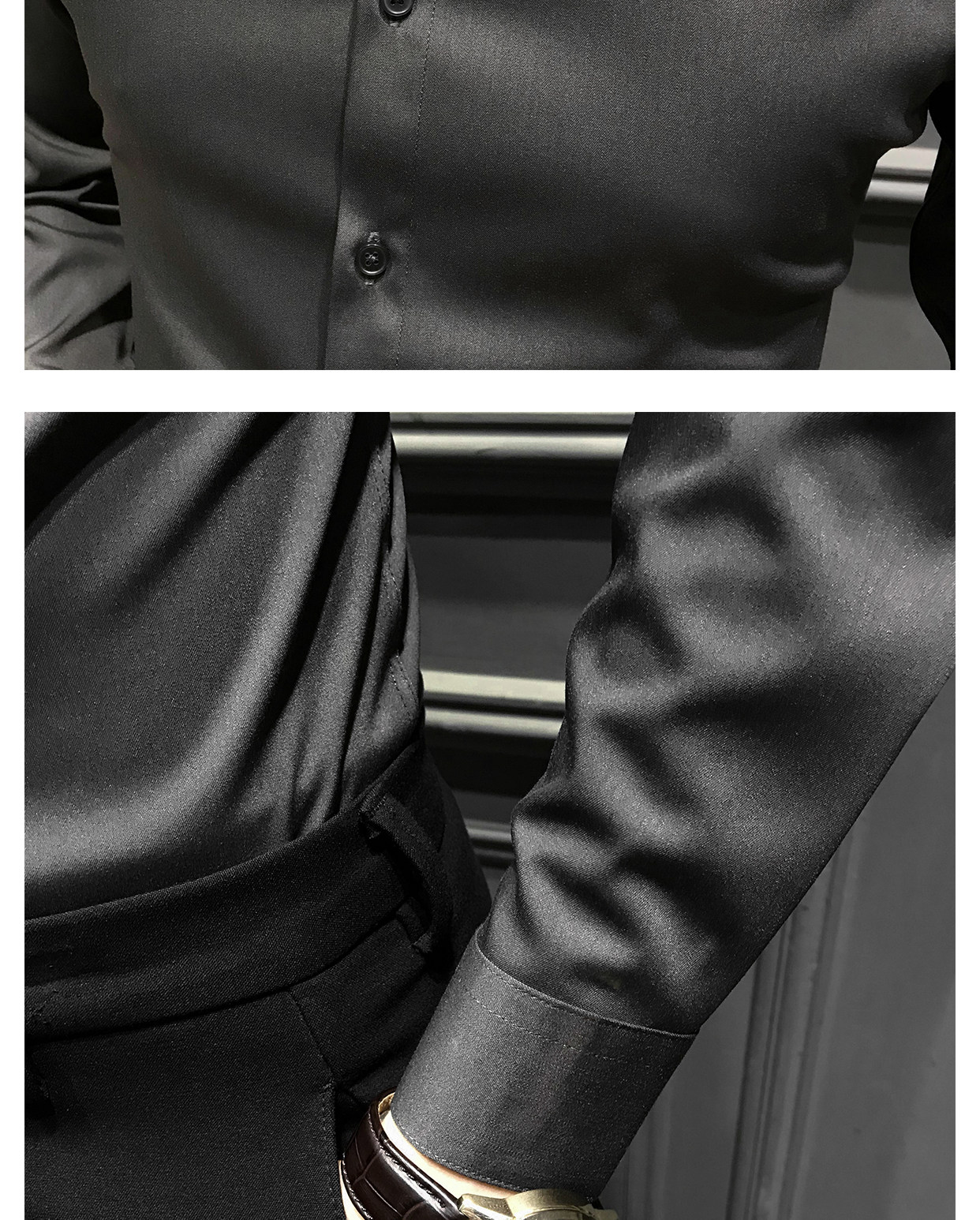 High-End Men's Long-Sleeved Shirt, New Style, Warm, Classy, Stylish Business Shirt, Slim Fit, Fleece-Lined, Wrinkle-Free Men's Clothing