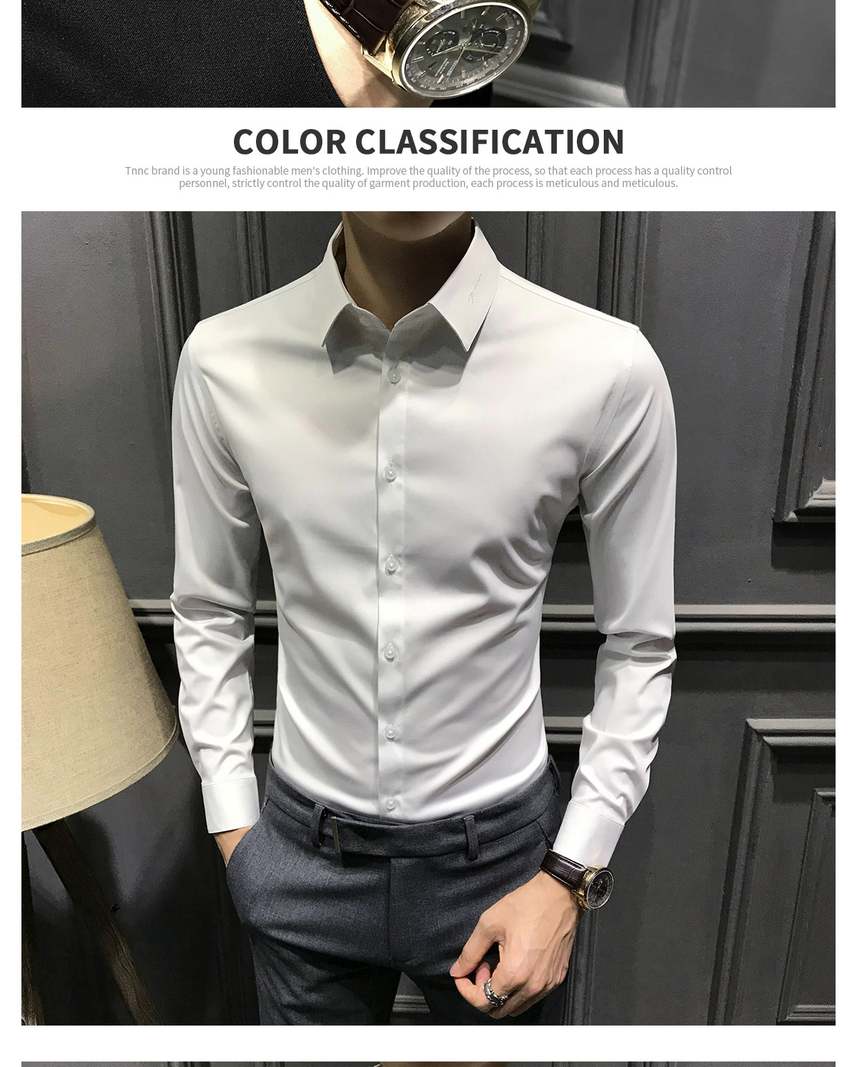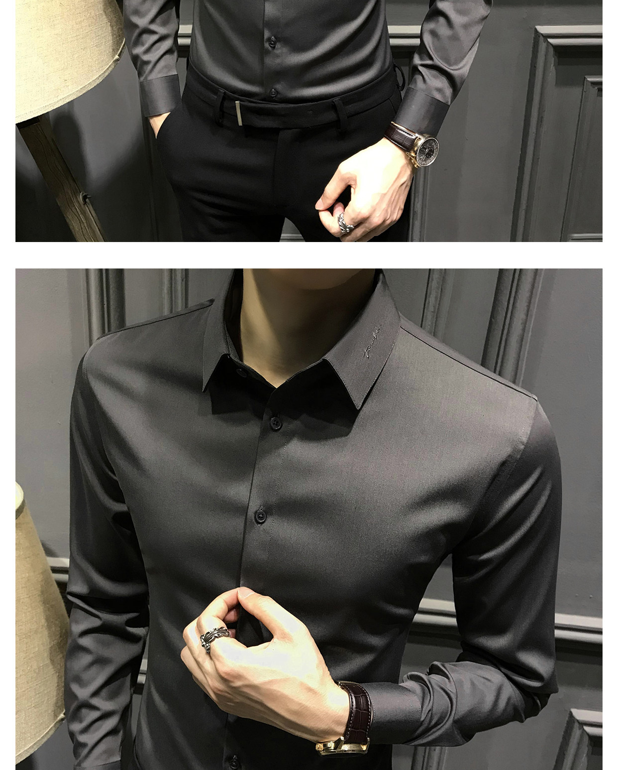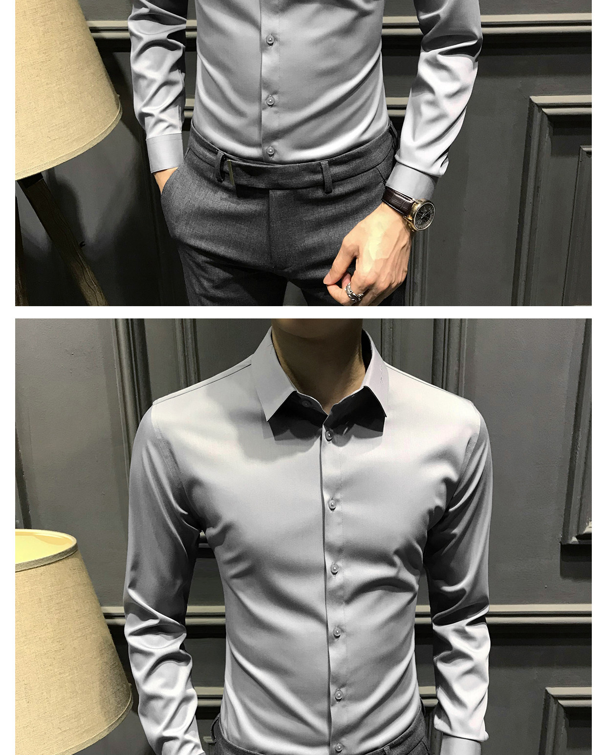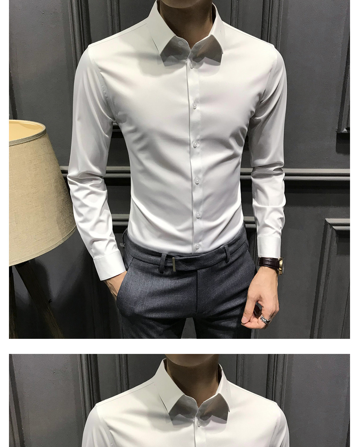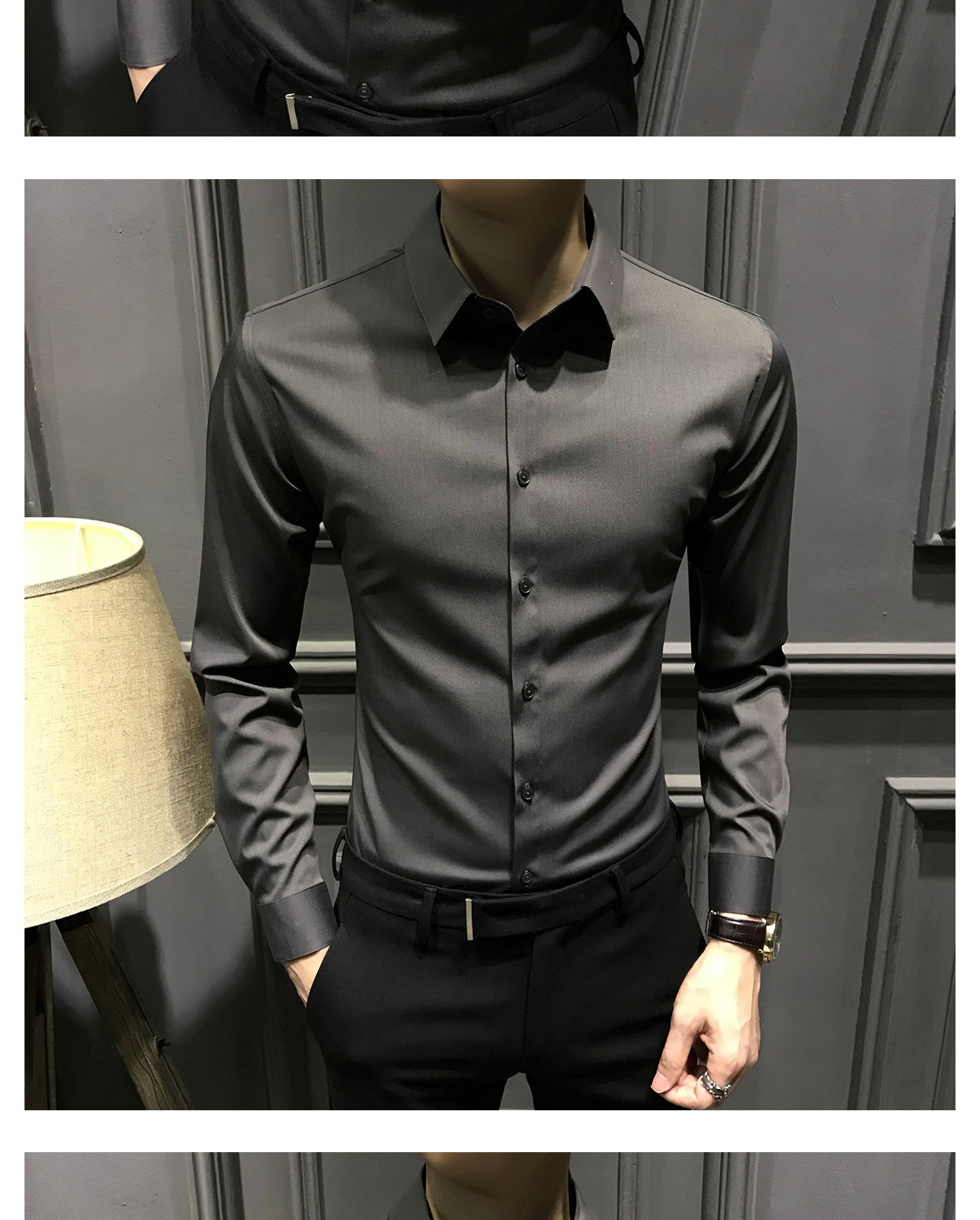 High-End Men's Long-Sleeved Shirt, New Style, Warm, Classy, Stylish Business Shirt, Slim Fit, Fleece-Lined, Wrinkle-Free Men's Clothing