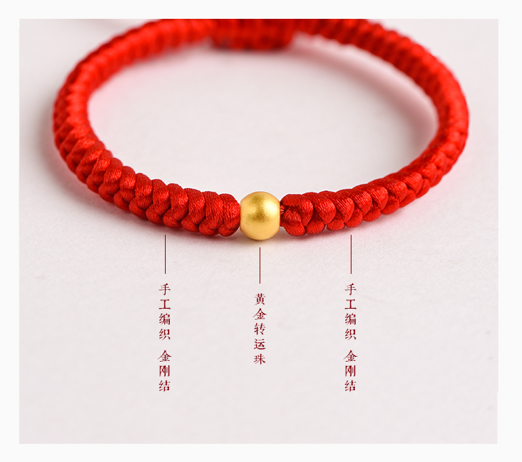 Lifetime Safe 999 Foot Gold Red Rope Bracelet for Men and Women kids Baby Pure Gold Transfer Bead Hand Rope to Prevent Fright