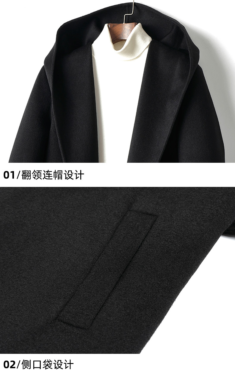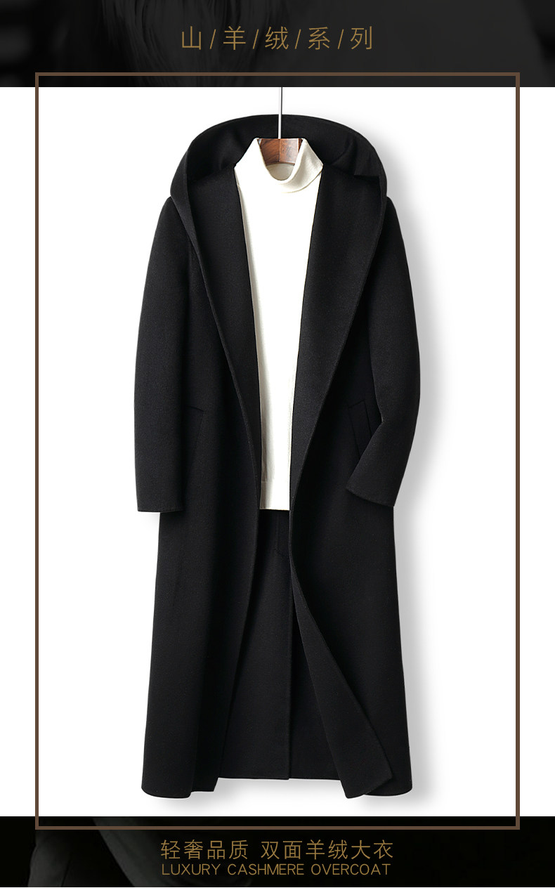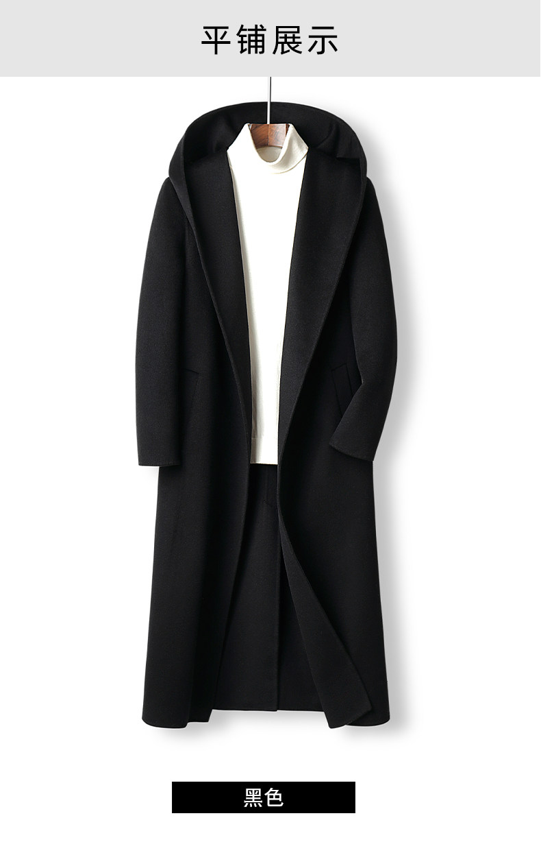 Autumn and Winter High-End Men's Hooded Over-The-Knee Long Bathrobe Style Double-Sided Cashmere Coat Woolen Trench Coat Korean Style