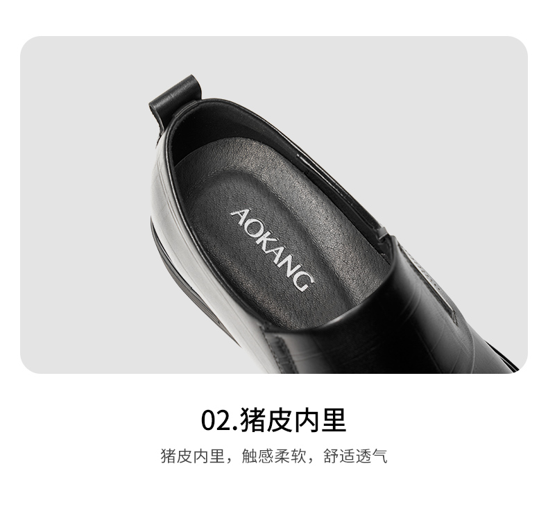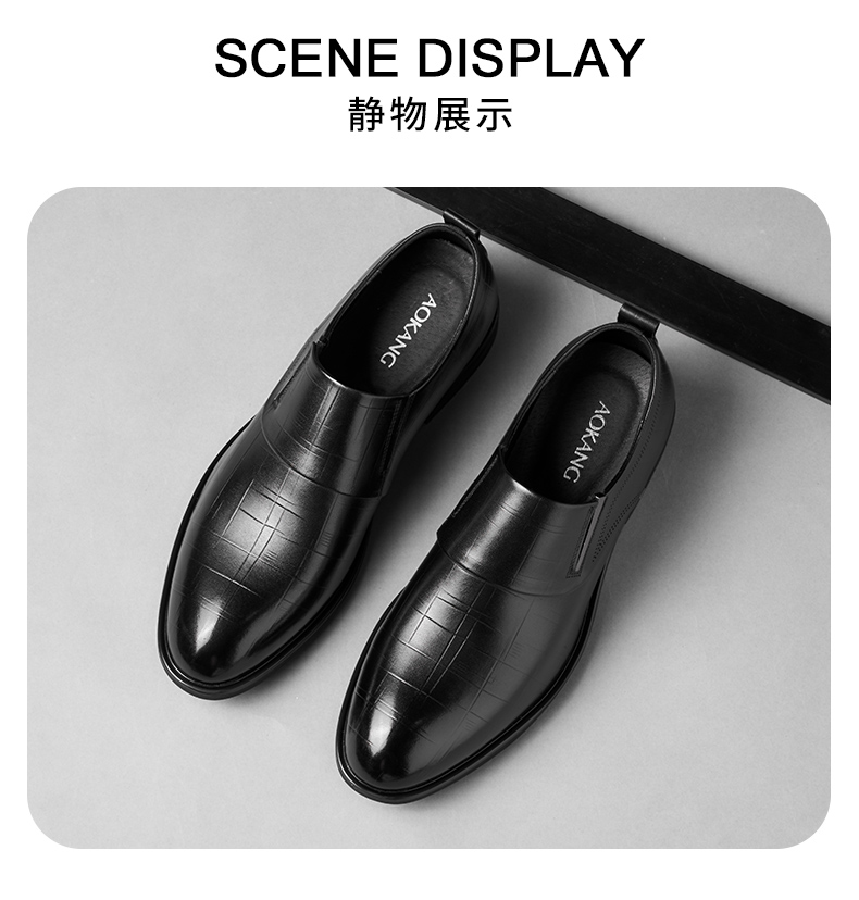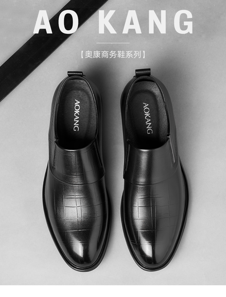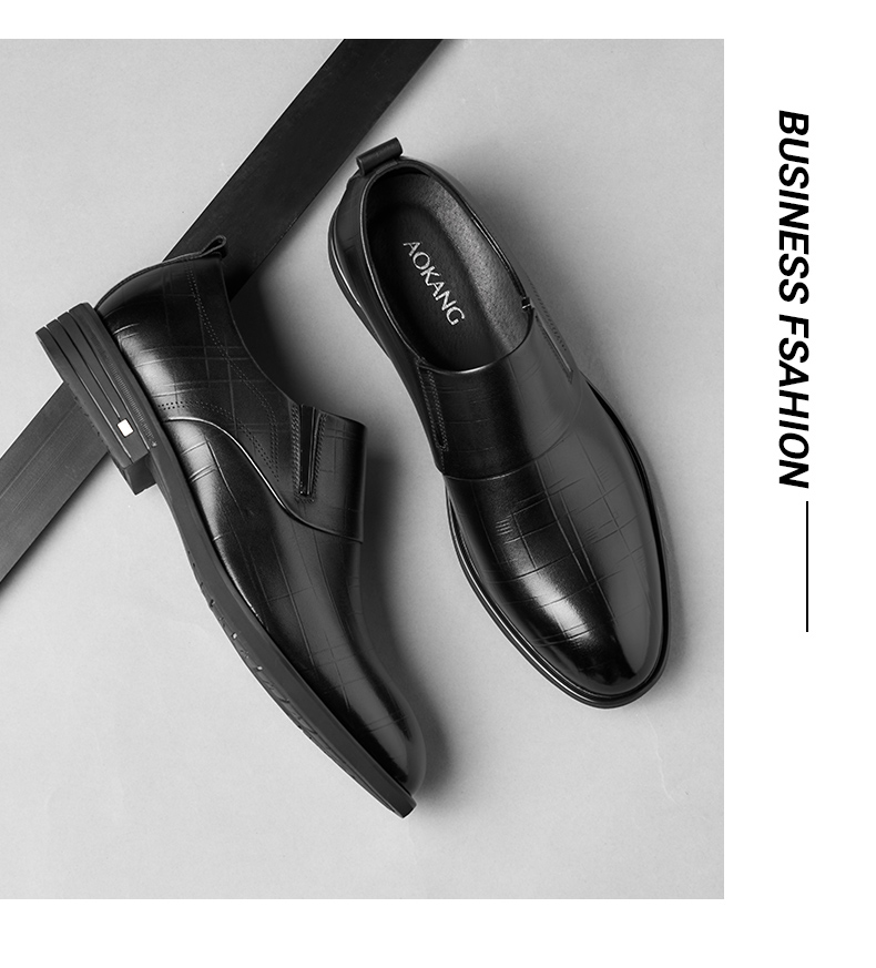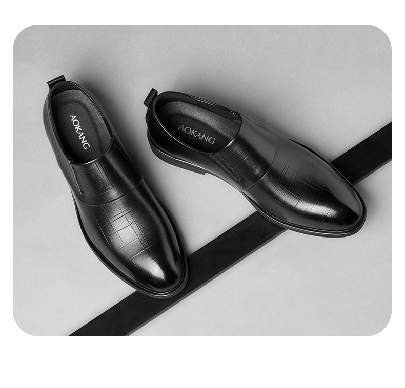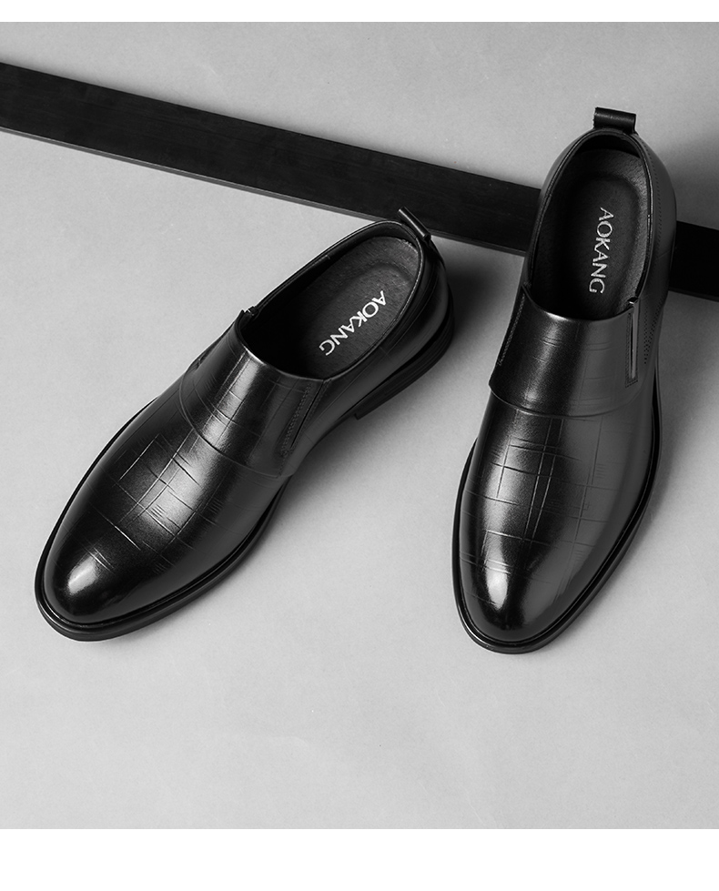 Aokang Men's Shoes, Autumn Business Formal Leather Shoes, Men's Genuine Leather Soft-Soled Korean Style Versatile Casual Men's Slip-On Leather Shoes