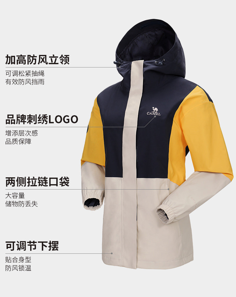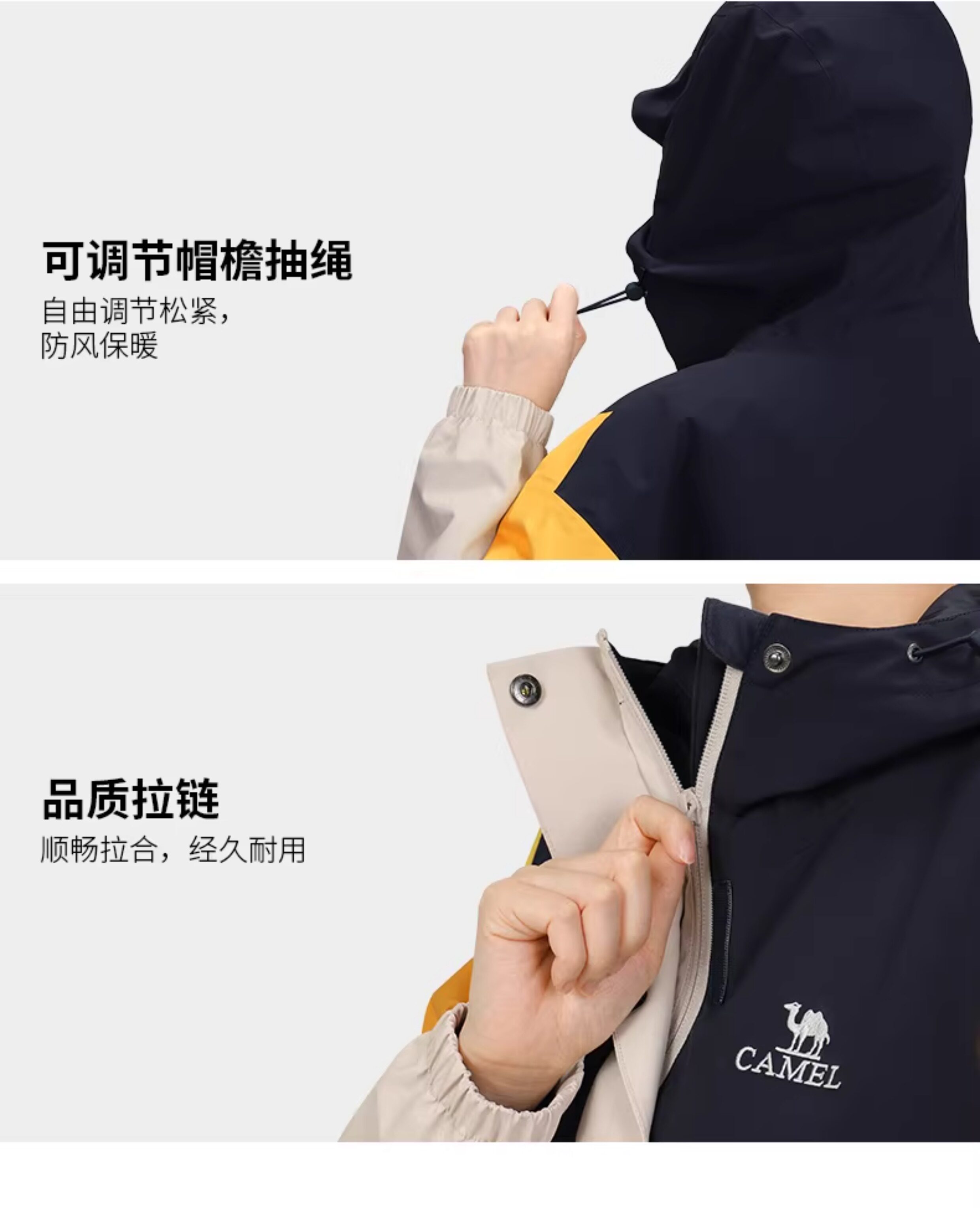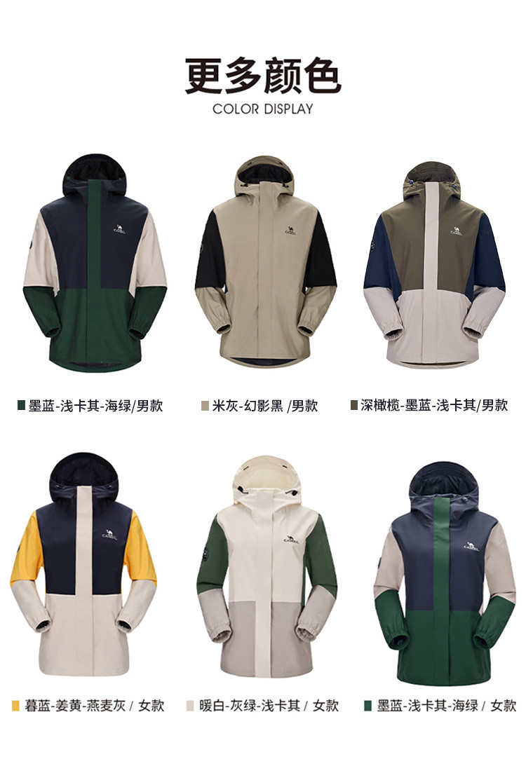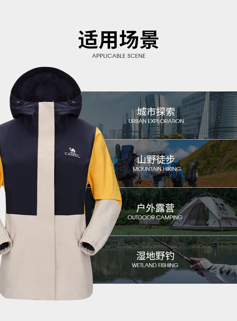 Camel Panda Three-Proof Outdoor Jacket for Women, 2026 Spring/Summer Men's Windproof and Waterproof Stylish Hiking and Mountaineering Clothing