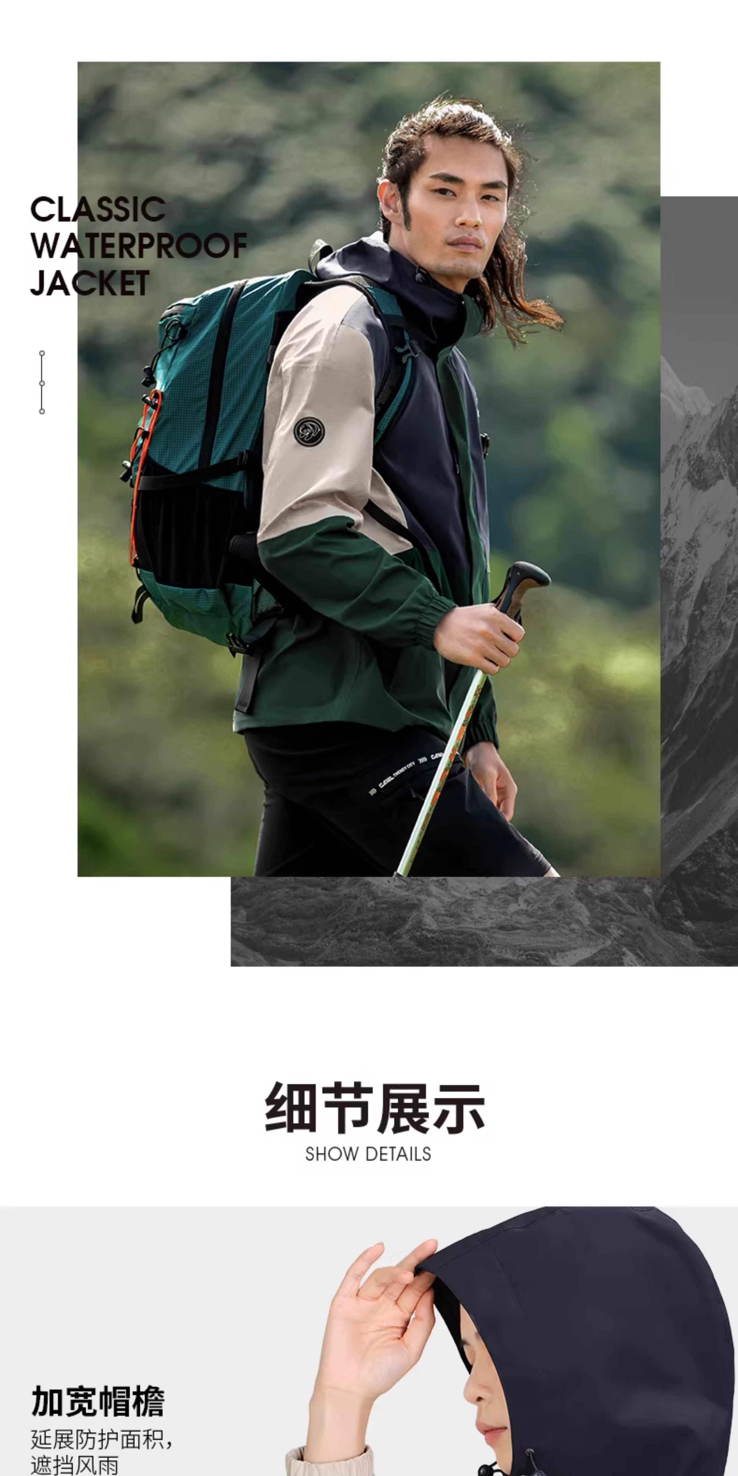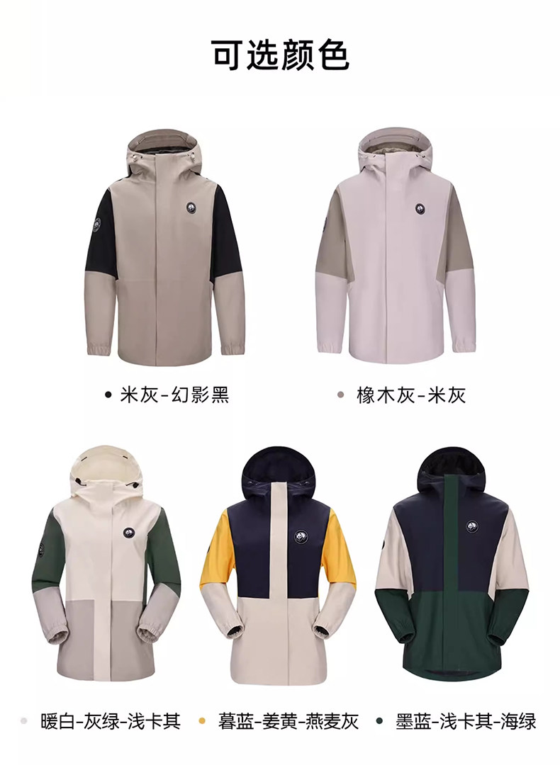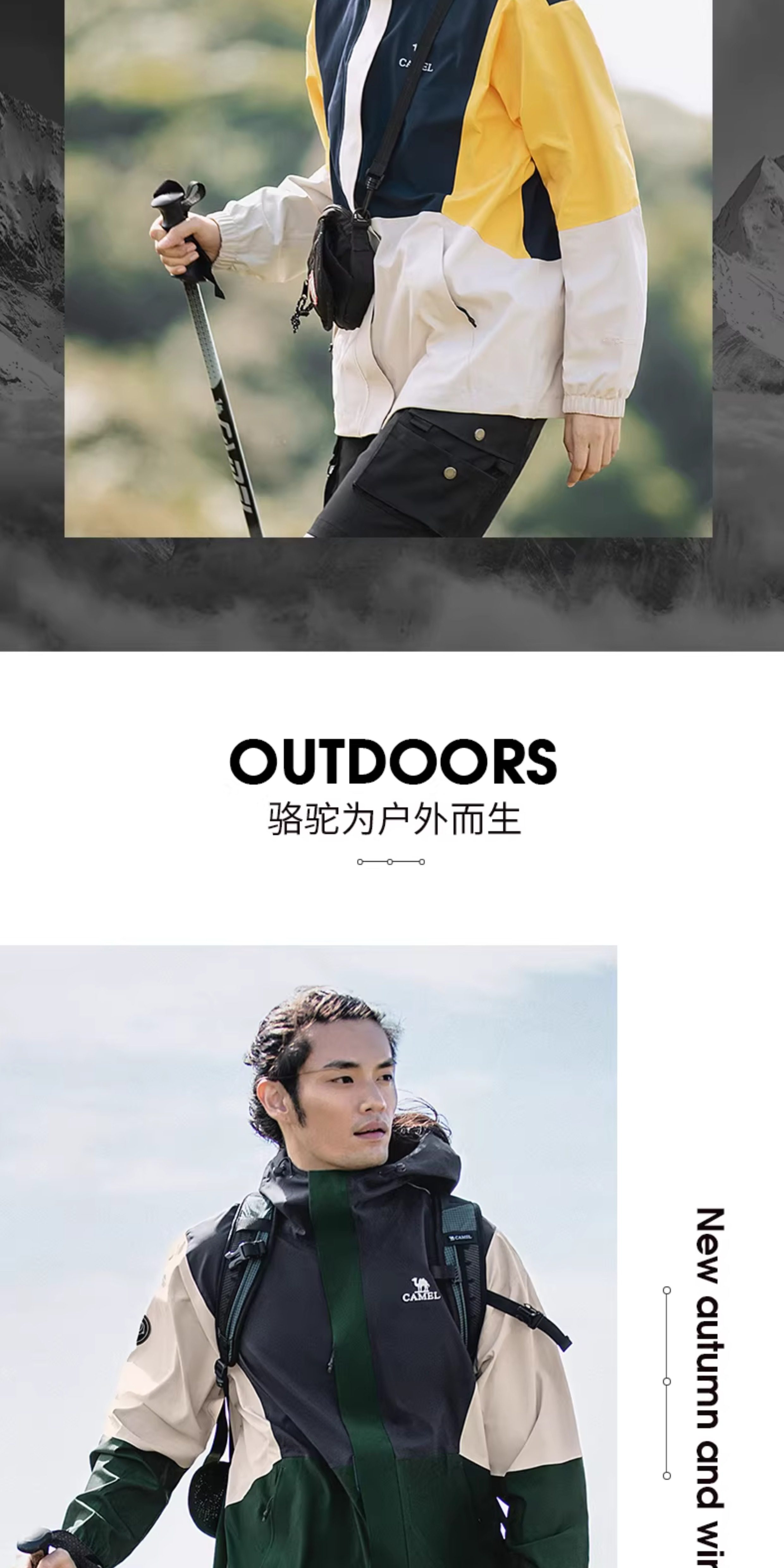Camel Panda Three-Proof Outdoor Jacket for Women, 2026 Spring/Summer Men's Windproof and Waterproof Stylish Hiking and Mountaineering Clothing