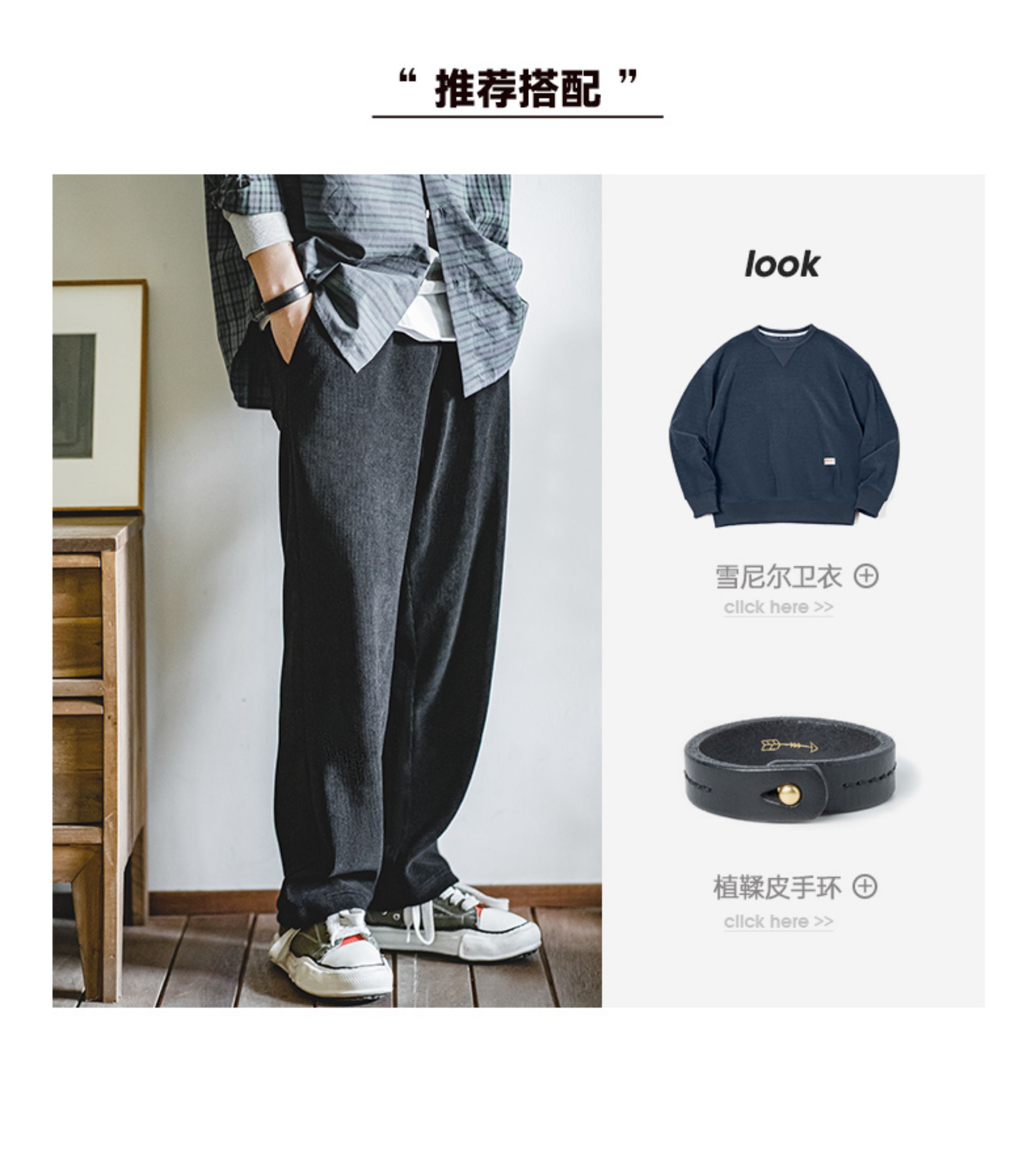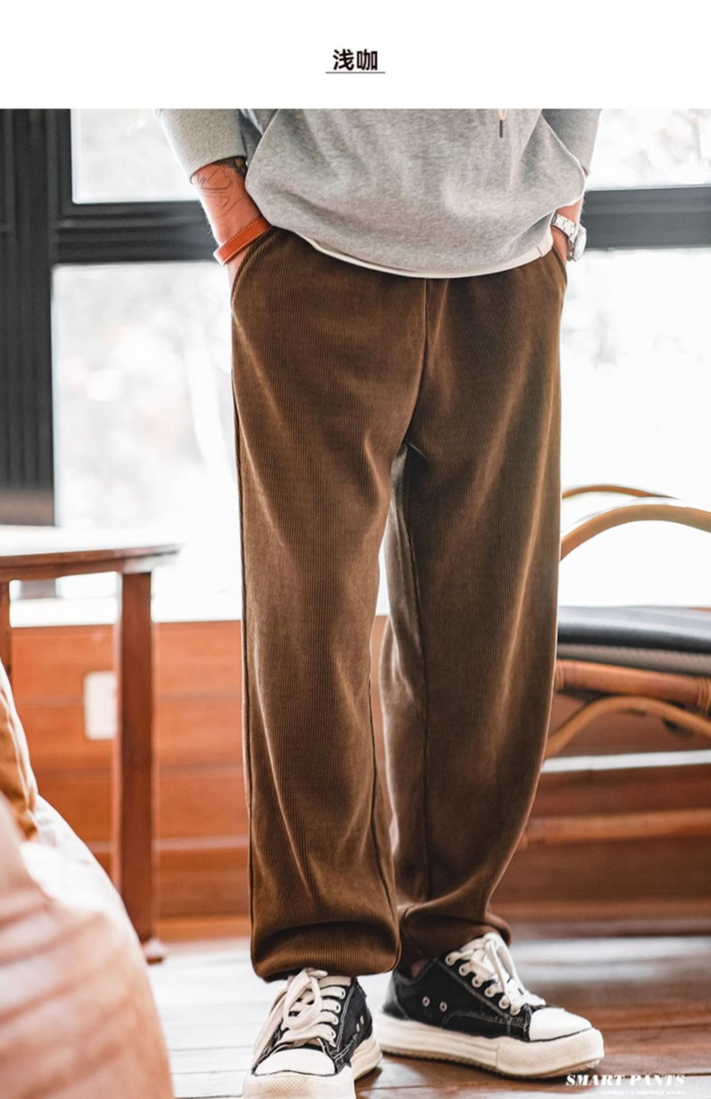 Madden Workwear American Casual Chenille Drape Smart Straight-Leg Pants Imitation Corduroy Melard Pants for Men Autumn