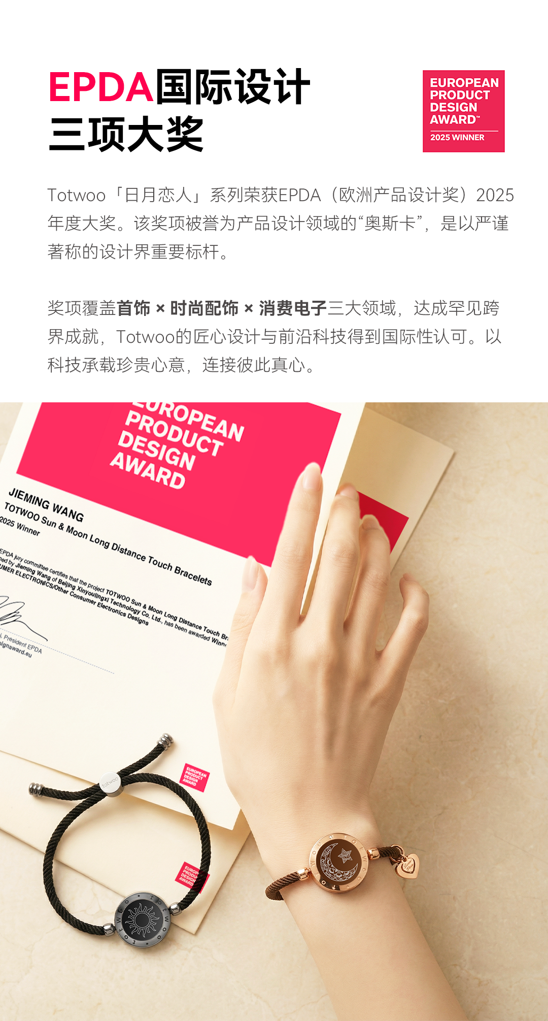 Totwoo Smart Sensor Couple Bracelet Sun and Moon Lovers Flashing Vibration Long-Distance Relationship Original Gift for Valentine's Day