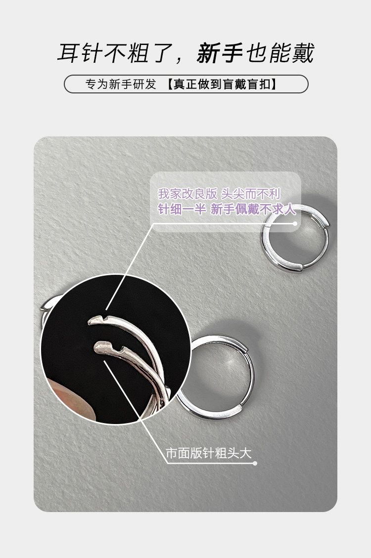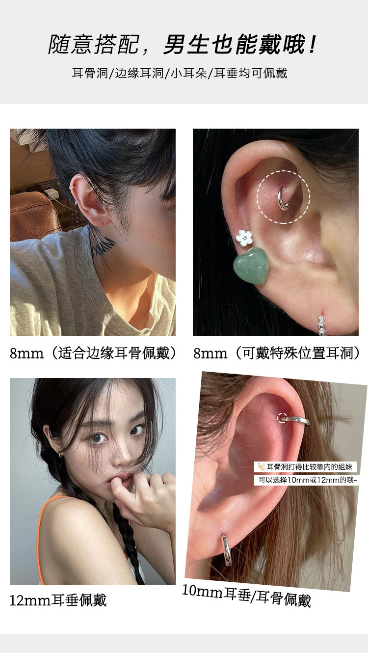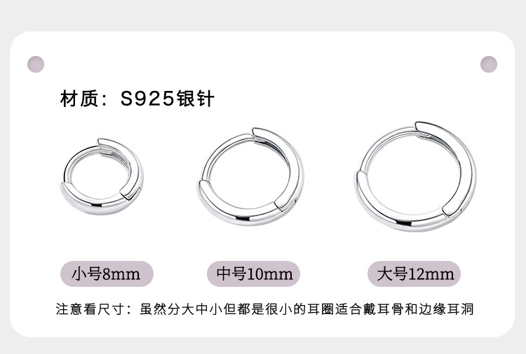 925 Silver Needle Earrings, Ear Hoops, Ear Cartilage Studs, Hoop Ear Cartilage Rings, New Small Plain Hoop Ear Clasps, Ear Studs, Women's and Men's Earrings
