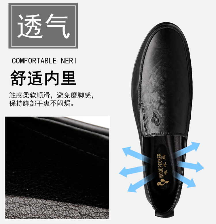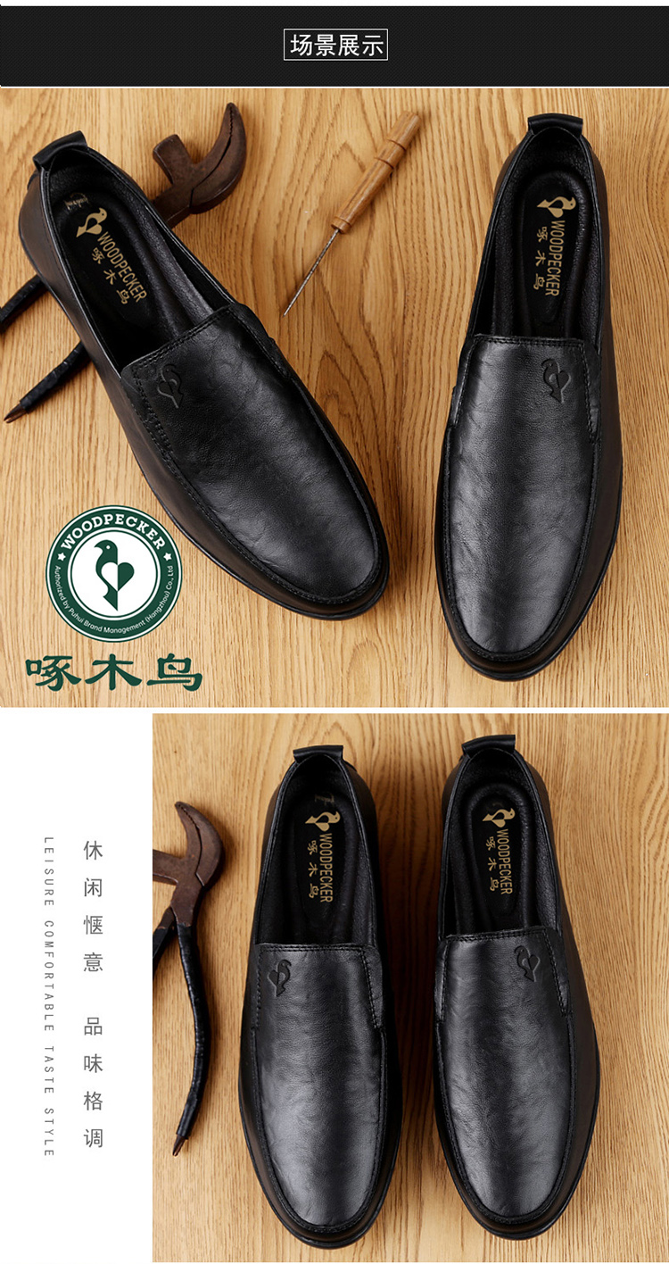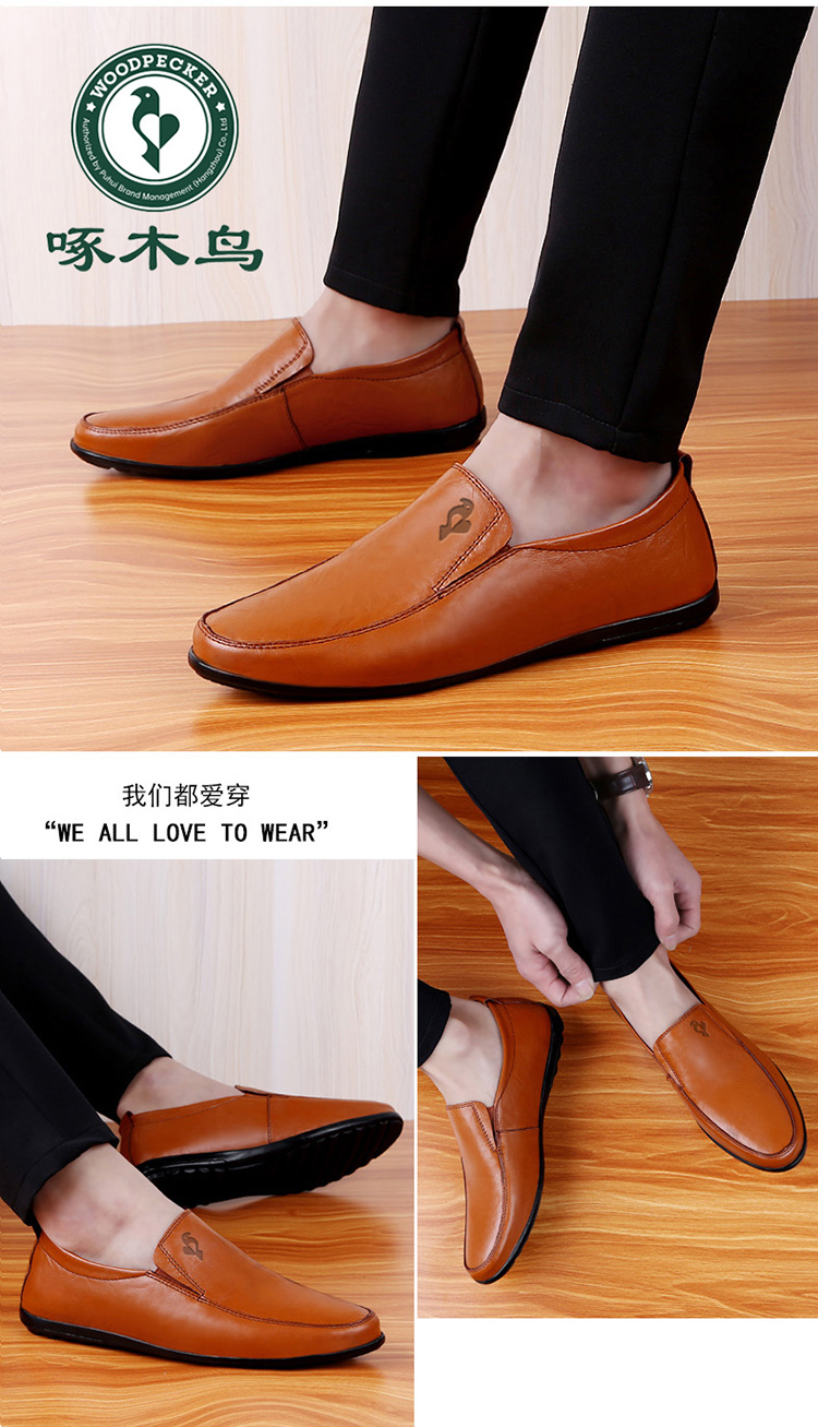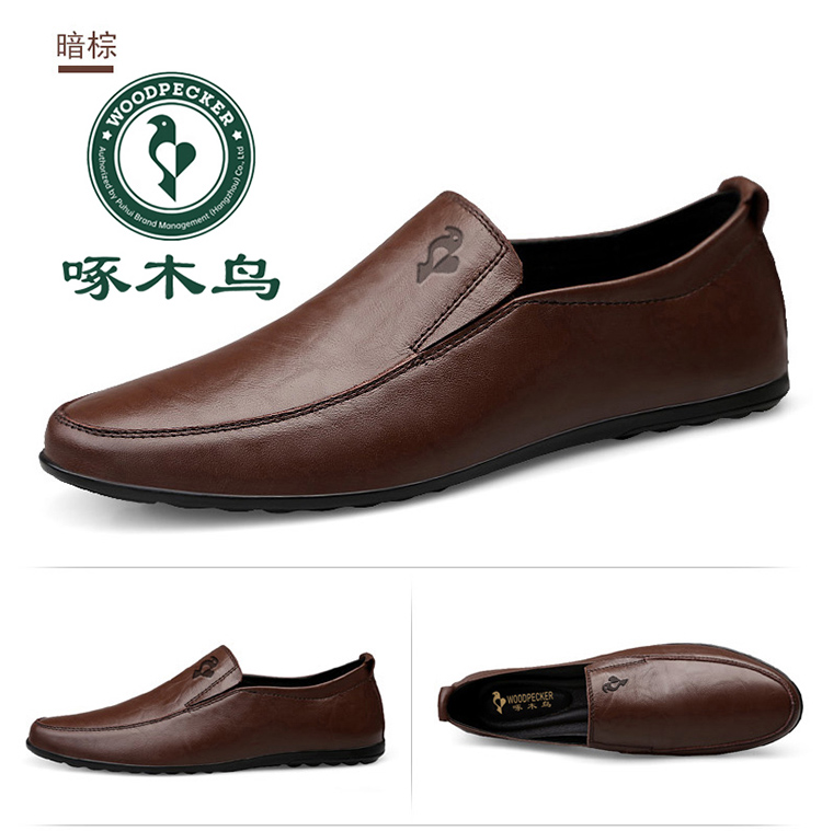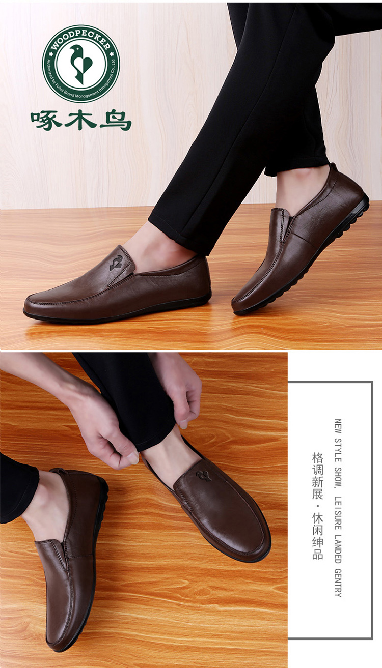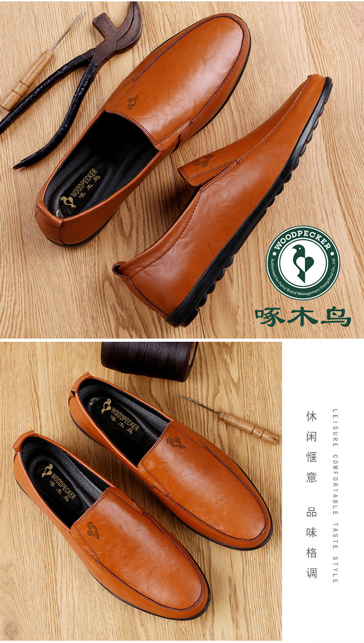 Woodpecker Genuine Leather Men's Shoes, Autumn Breathable Casual Versatile Soft-Soled Men's Leather Shoes, Slip-On Loafers, Dad Shoes