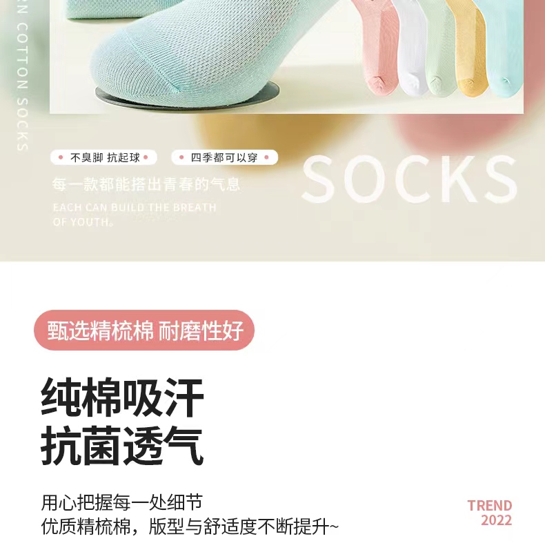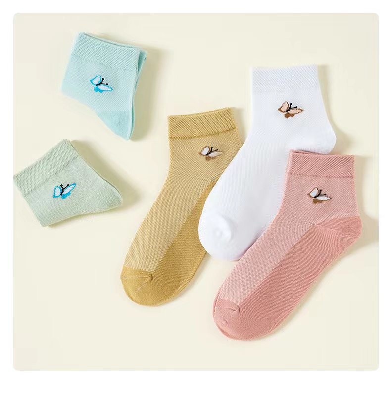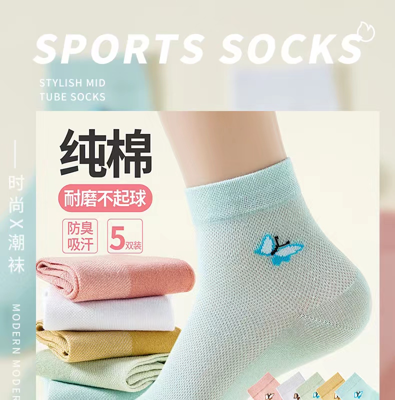 Pure Cotton Socks for Women, Mesh Mid-Tube Cotton Socks, Thin, Breathable, Odor-Resistant, Sweat-Absorbent, Ins Style, Suitable for Spring and Summer Sports, Versatile