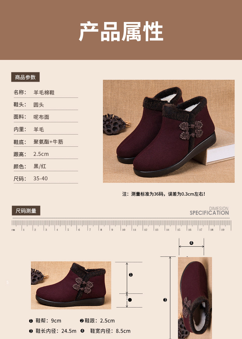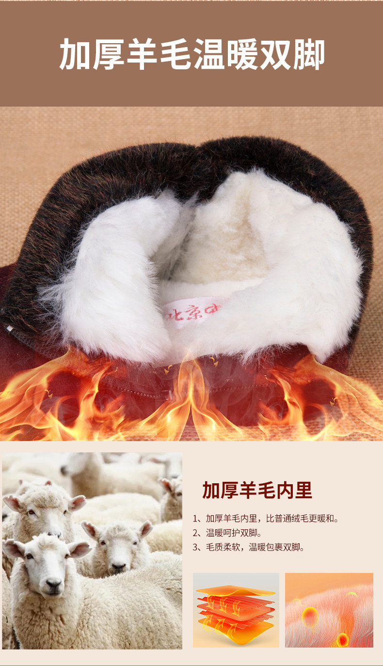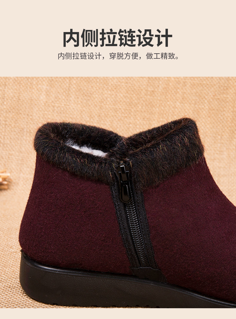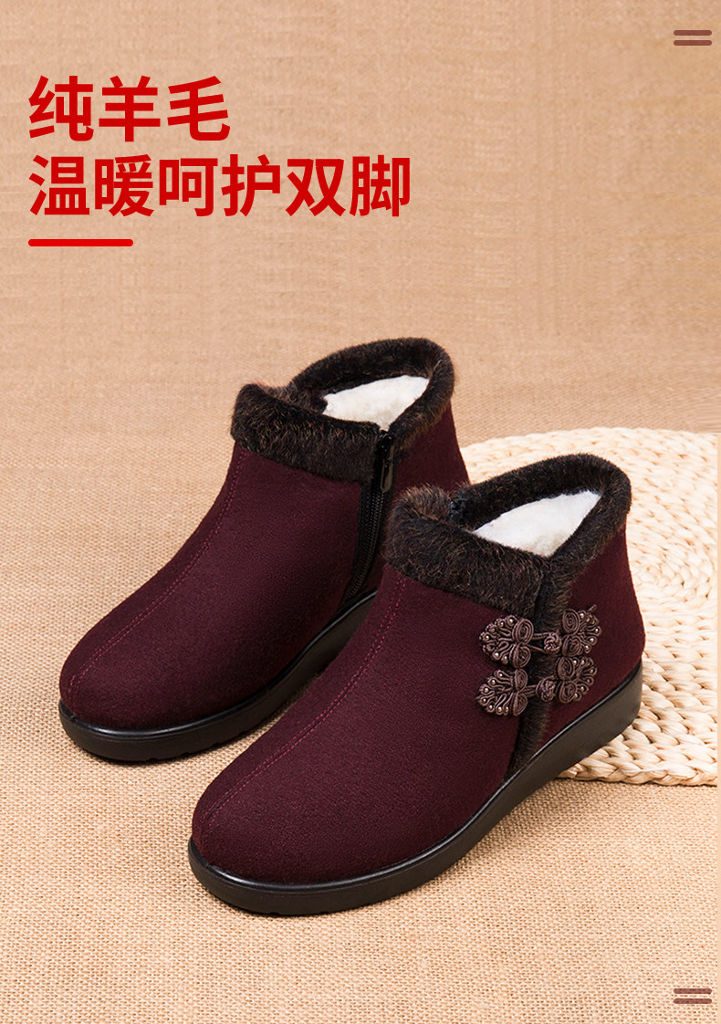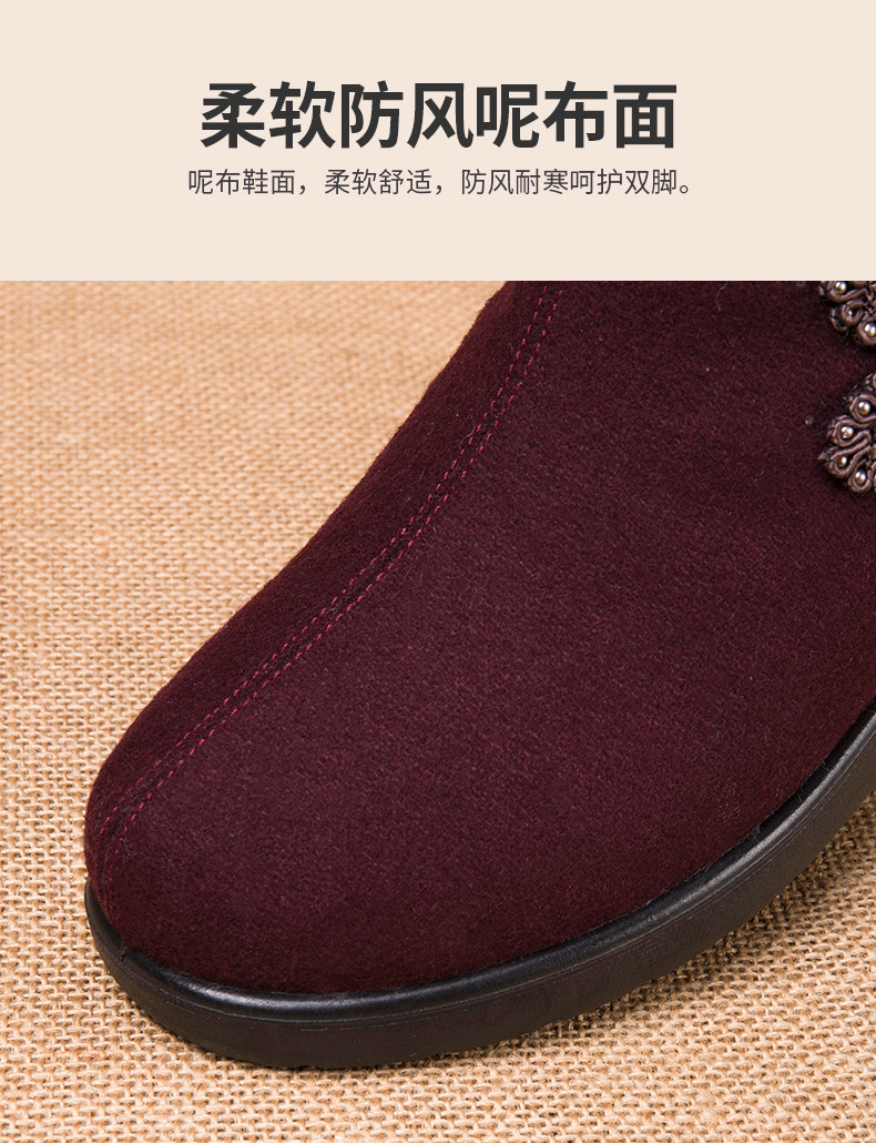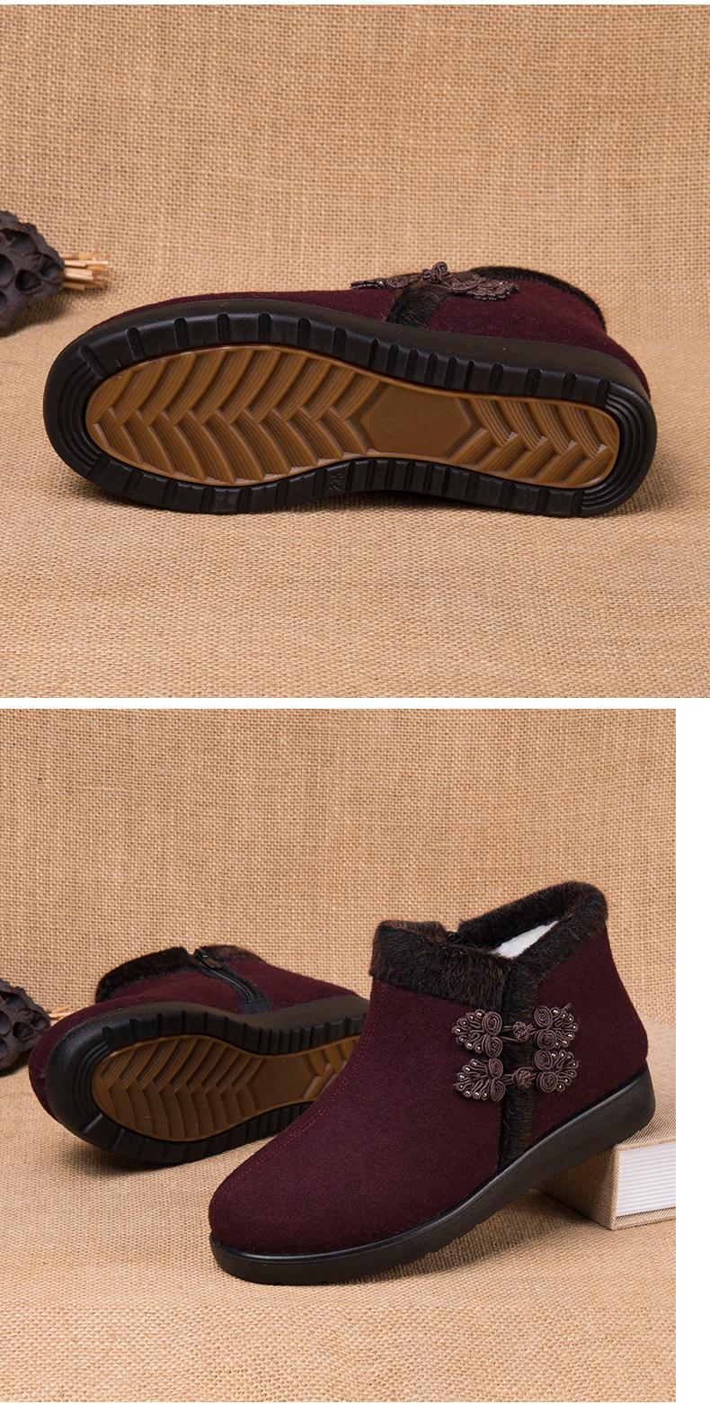 Old Beijing Cloth Shoes for Women, Winter Fleece-Lined Warm Wool Shoes for Mothers, Elderly Cotton Shoes, Non-Slip Rubber Sole Shoes for Old Ladies and Grandmothers