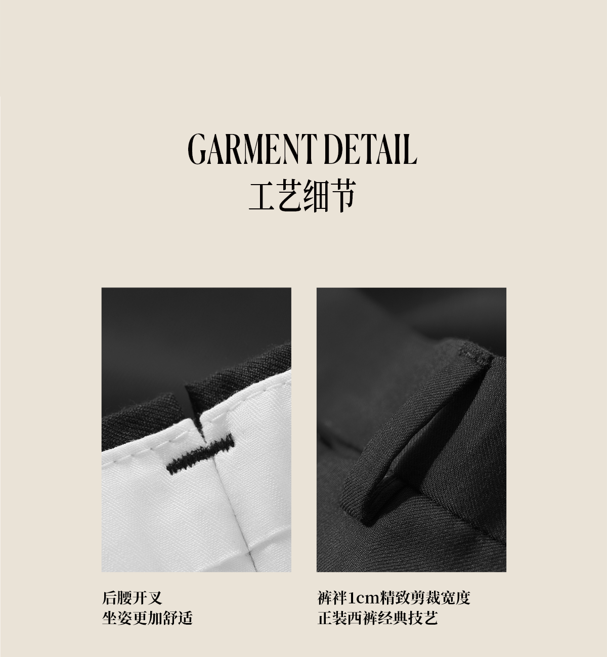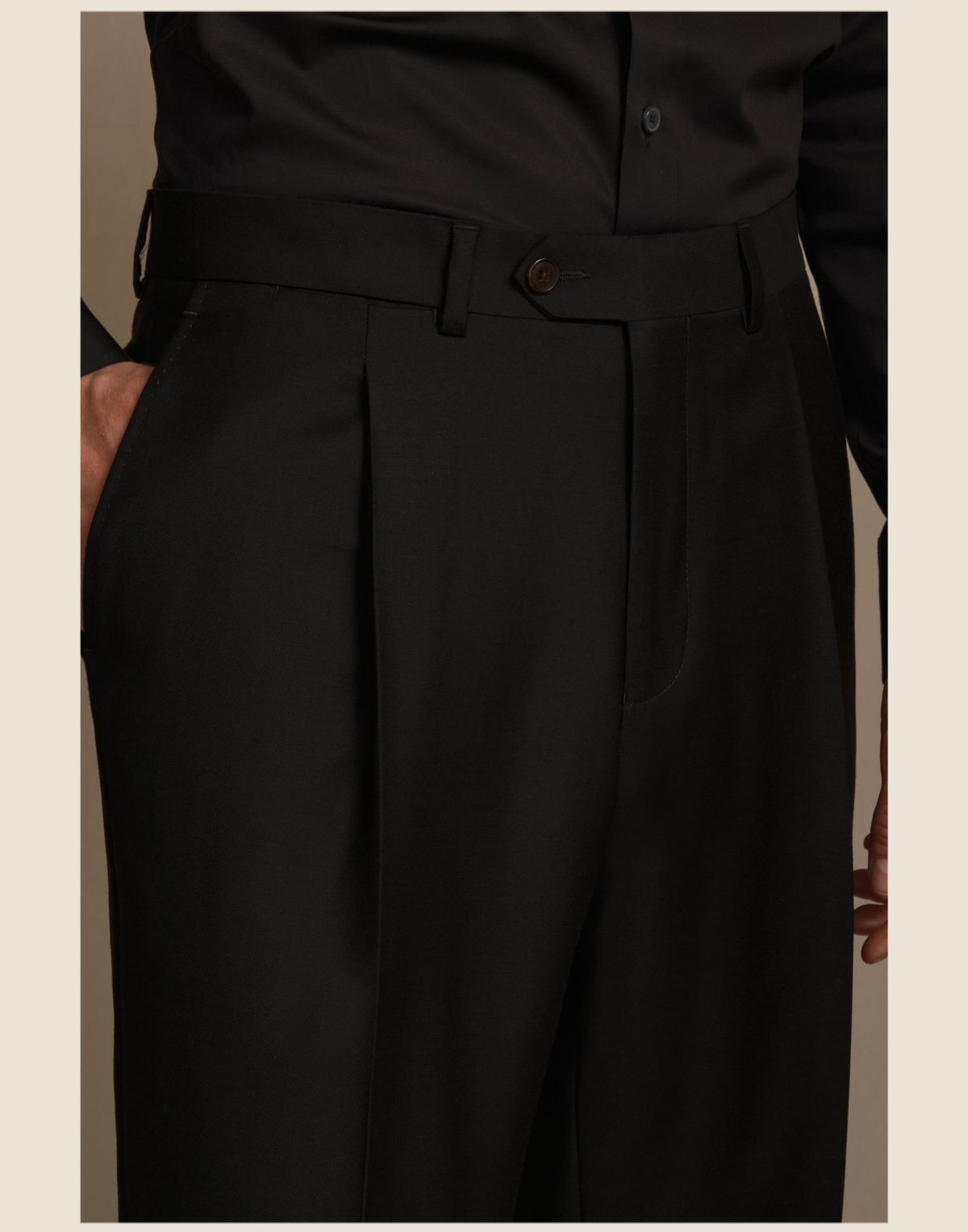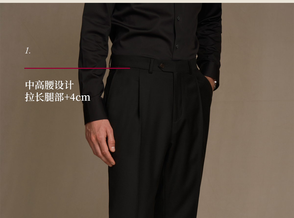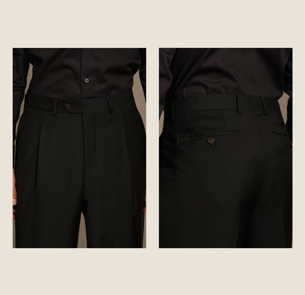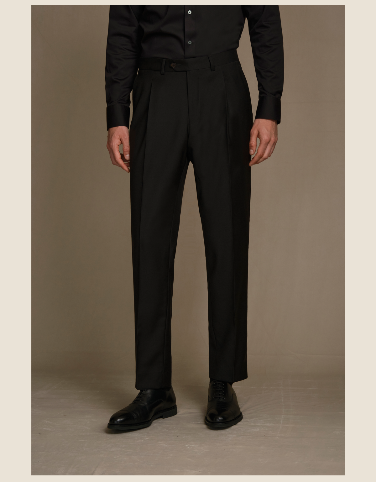 【High Weight Pure Wool】Full Monty Business Formal Trousers for Men, Black High-Waisted Straight-Leg Suit Trousers