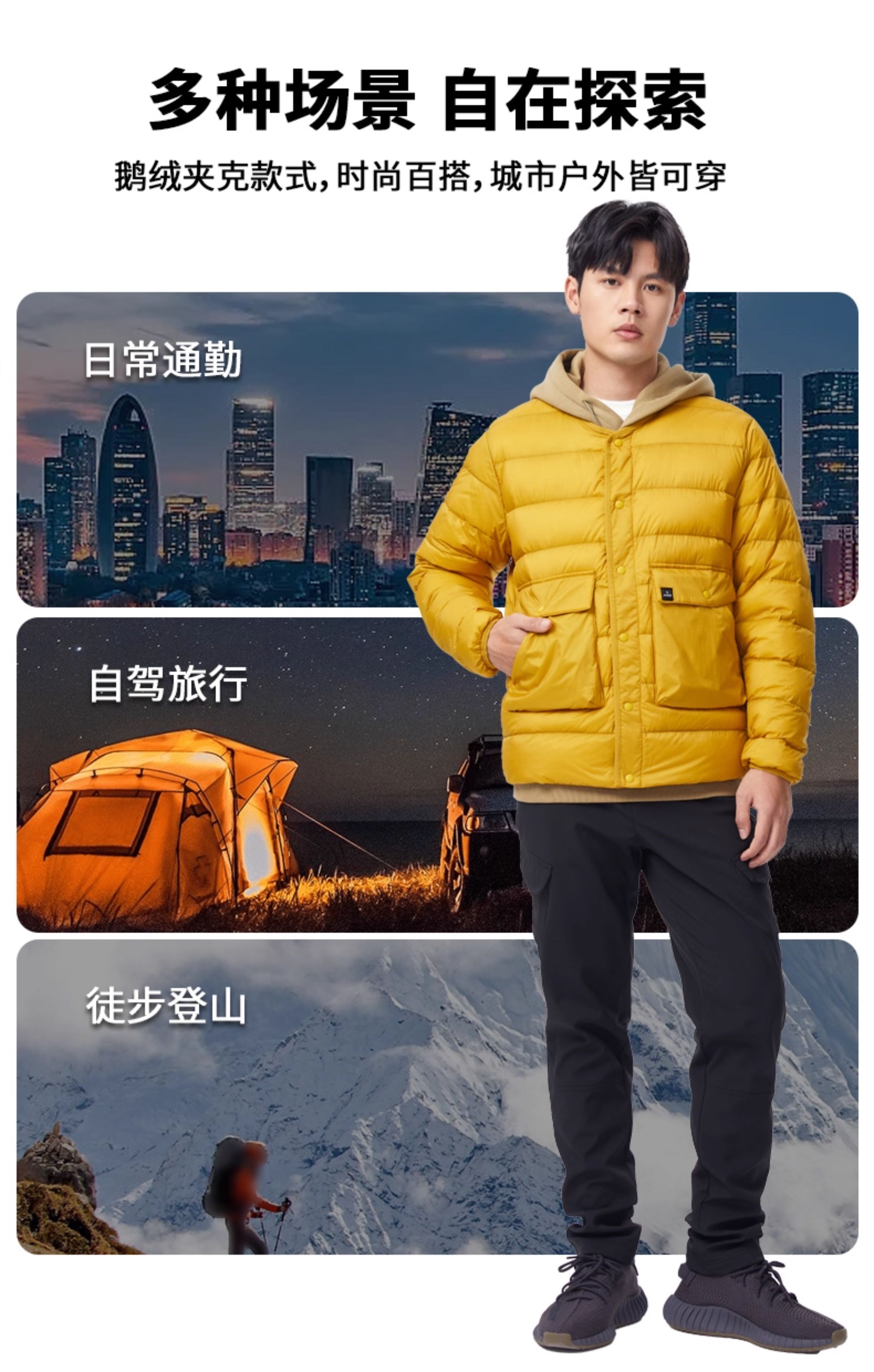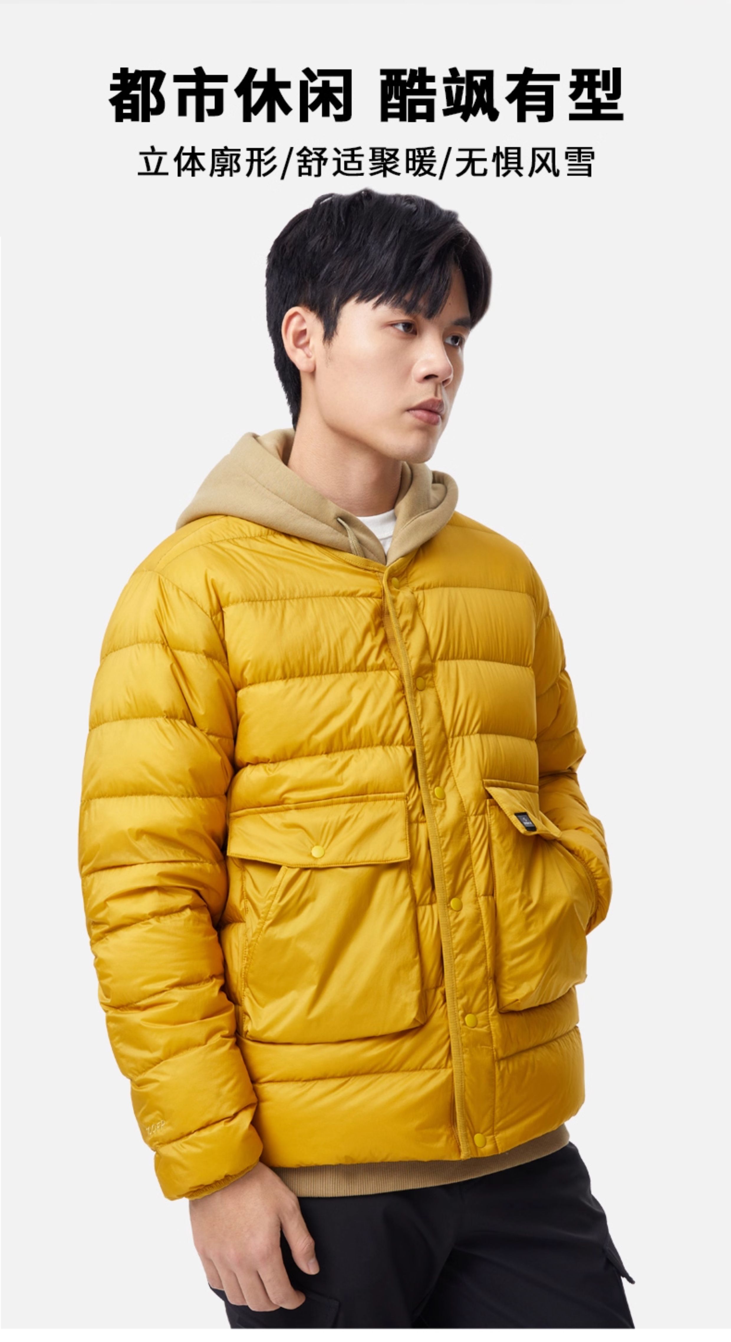 Junyu 700 Fill Power Goose down Jacket Men's Short Jacket Autumn and Winter Casual Loose Round Neck Goose down Jacket Sa62017
