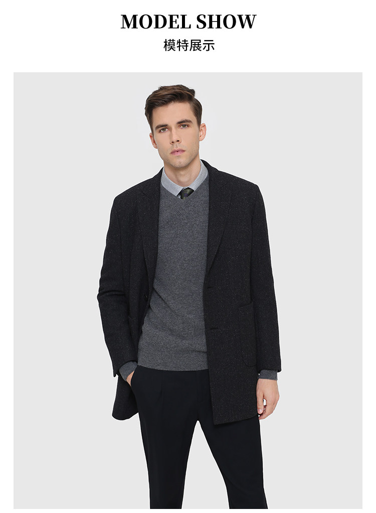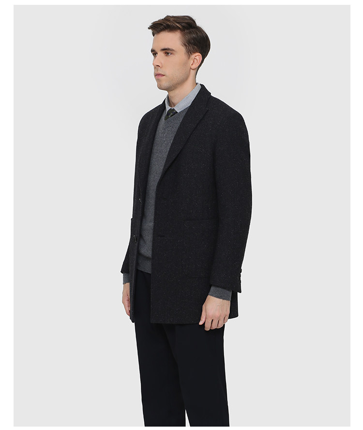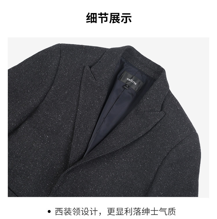 【Hoba Fine Wool】Callisto Men's Spring and Autumn Wool Coat with Herringbone Pattern, Suit Collar, Soft and Skin-Friendly