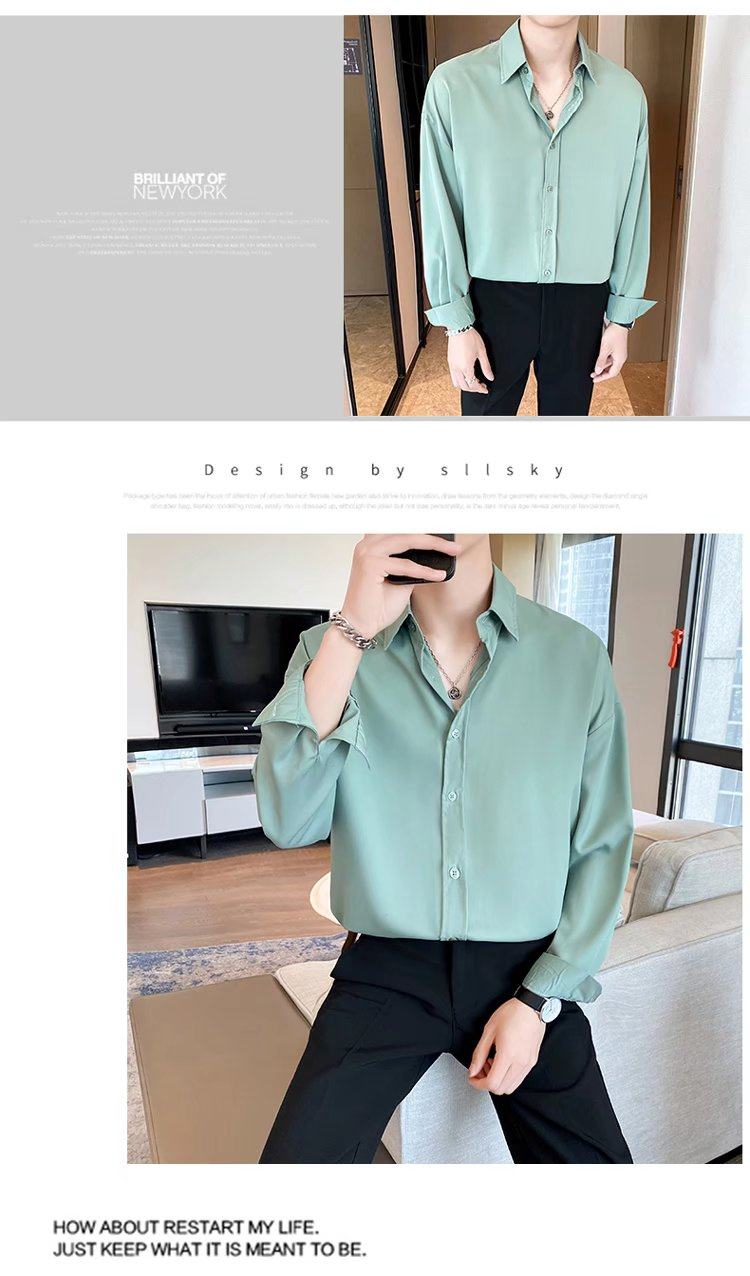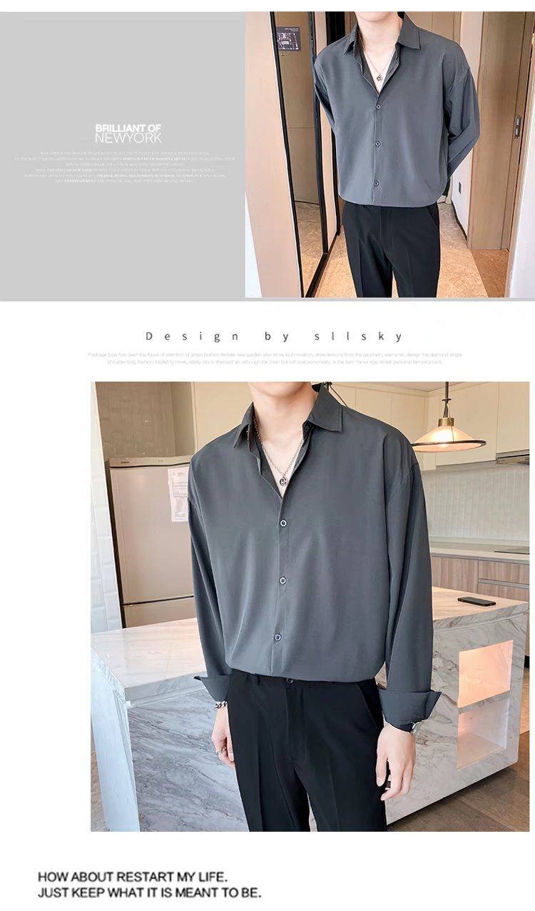 Black Shirt for Men, Long-Sleeved, High-End, Stylish, Trendy, Spring and Autumn, Mature Style, Casual Top, Dk Drape, Inner Layer Shirt
