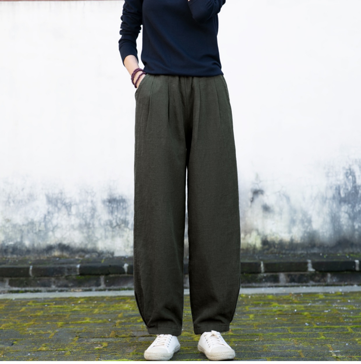 Cotton and Linen Pants 2025 New Style Artistic Slimming Casual Long Pants Thickened Cotton-Padded Lantern Pants Women's Winter Outerwear Warm Pants