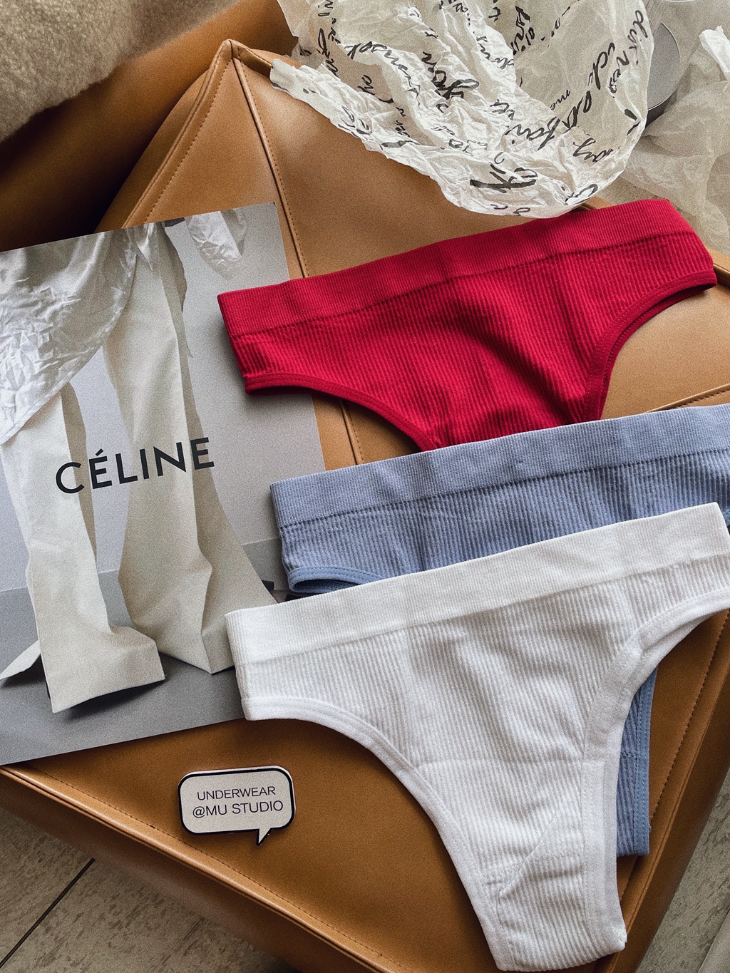 Women's Underwear European and American Style Ribbed Cotton Sexy Mid-High Waist Half-Coverage Thong Brazilian Panties Comfortable Plus Size Sports Fitness