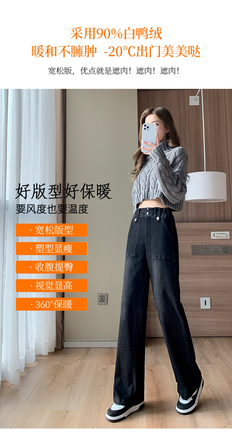 Women's Denim down Pants for Outdoor Wear, Winter 2025 New Style, Straight-Leg, High-Waisted, Wide-Leg, Fleece-Lined, Thickened, Warm Cotton Pants