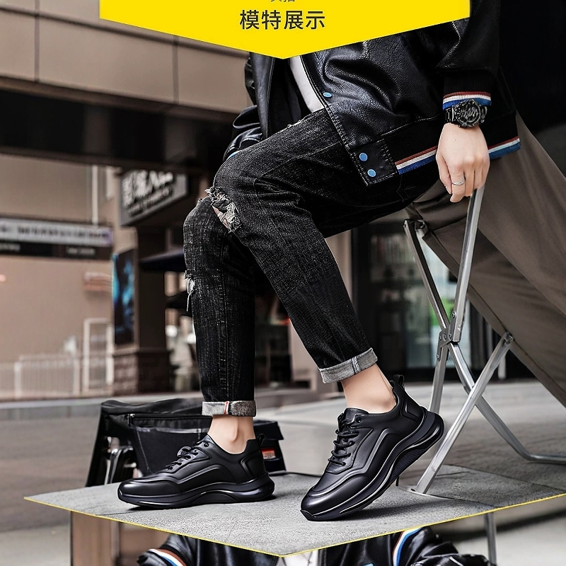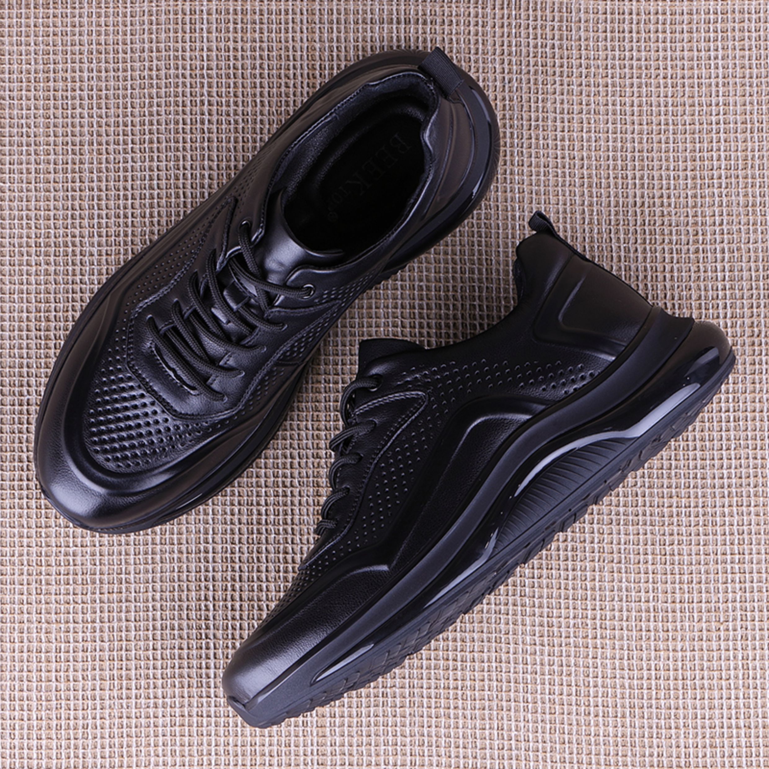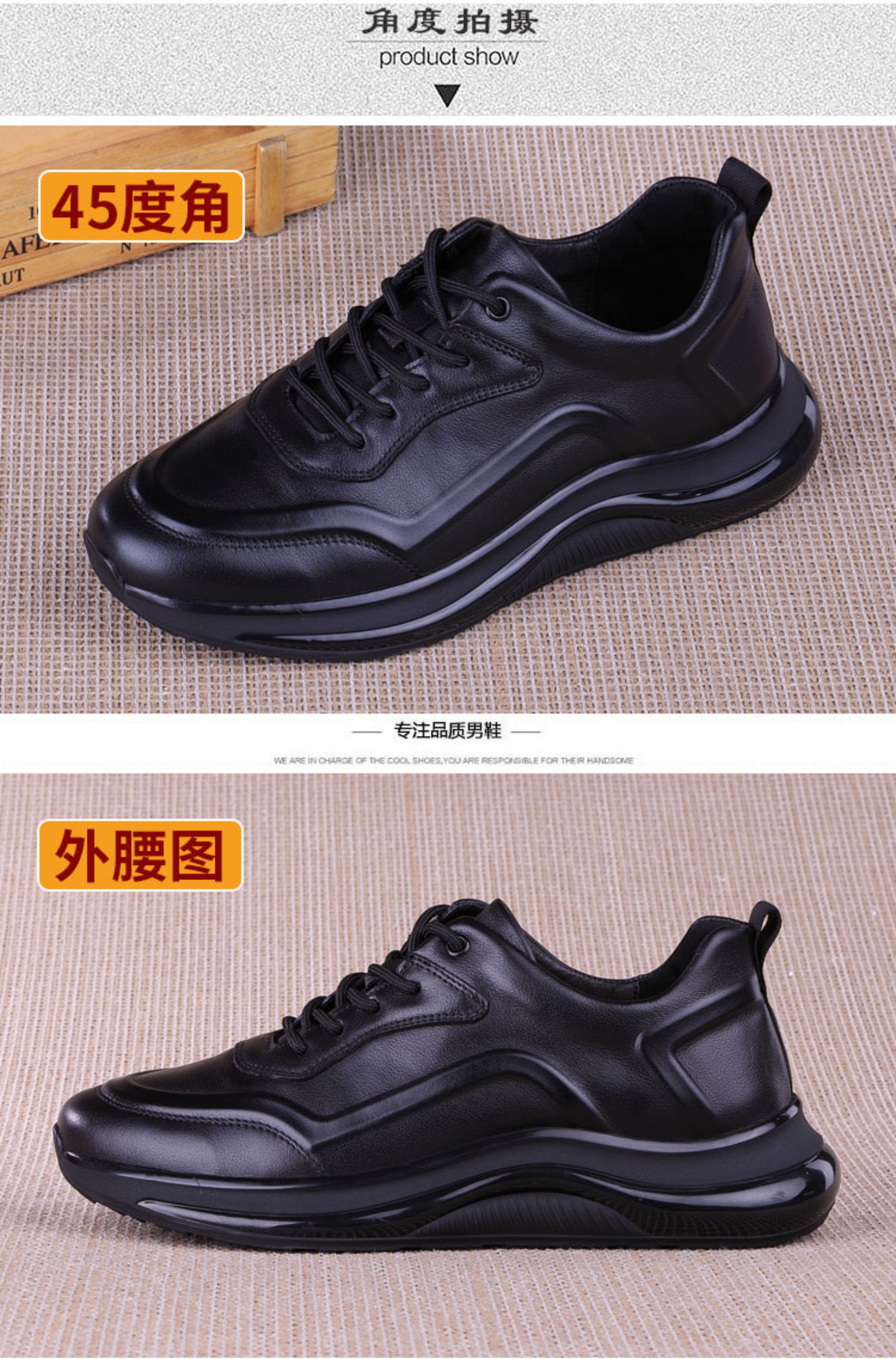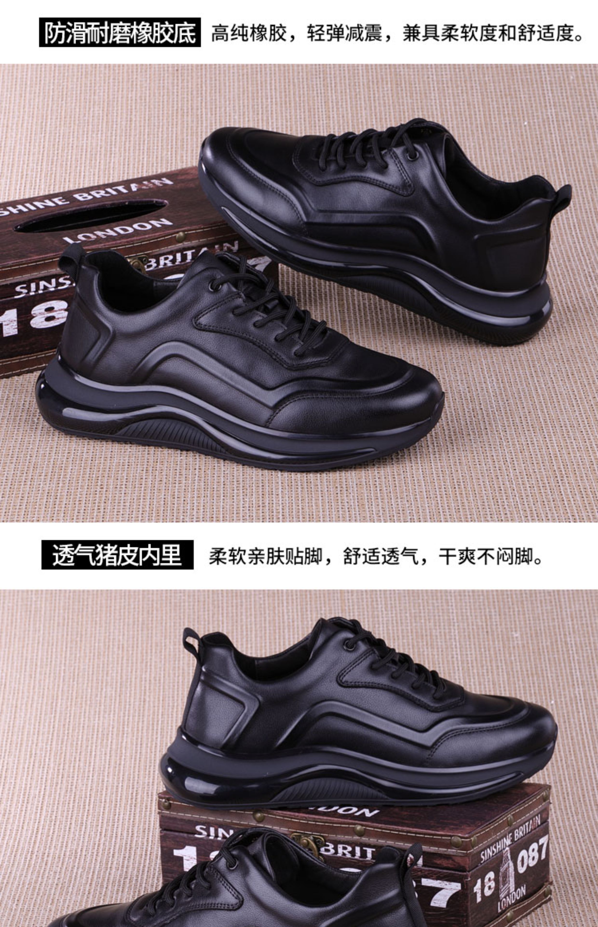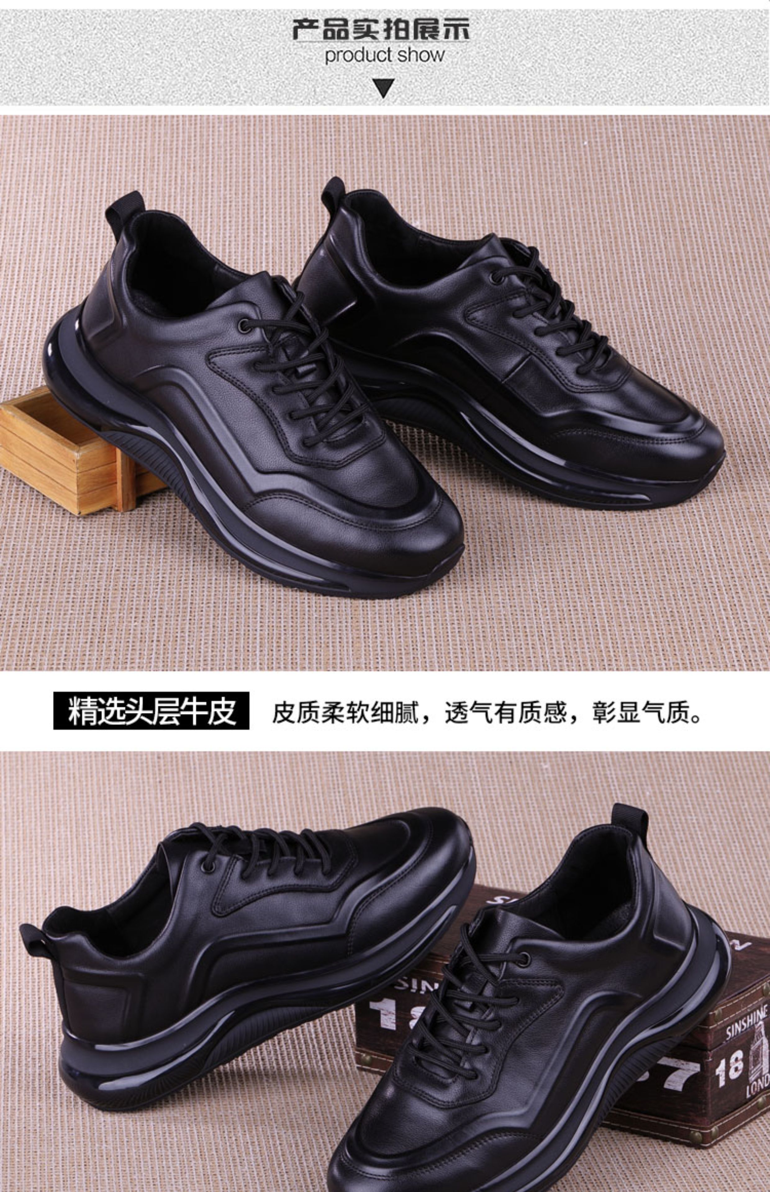 Foreign Trade Men's Shoes Autumn Genuine Leather First-Layer Cowhide All-Black Sports Shoes Men's Thick-Soled Ultra-Light Lace-Up Casual Shoes Running Shoes
