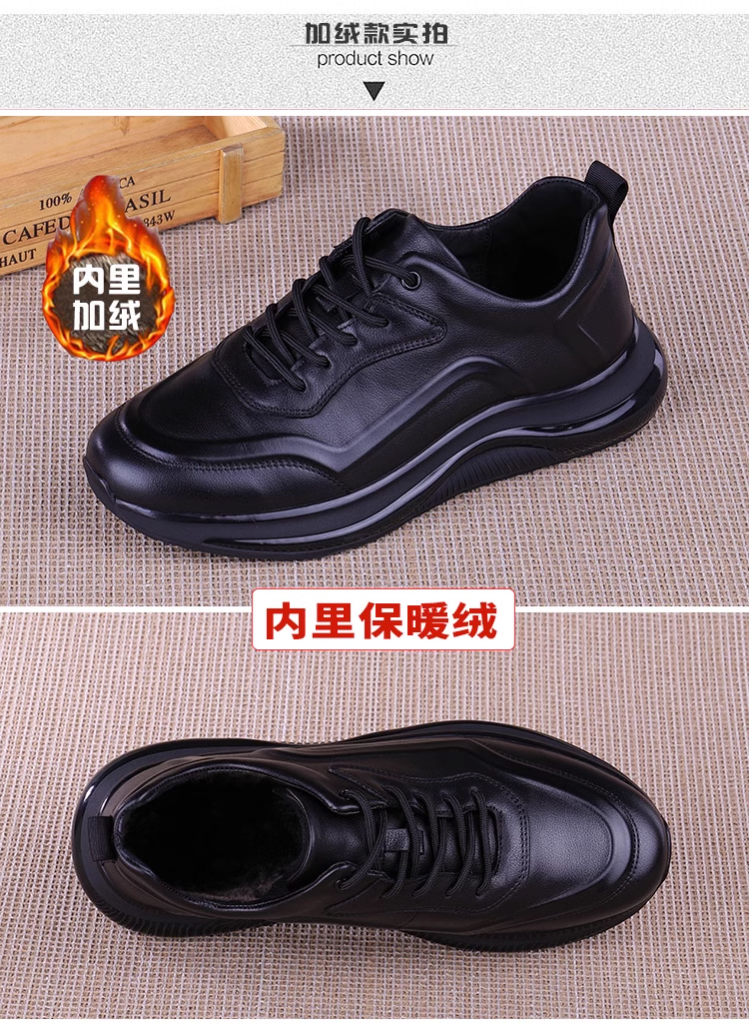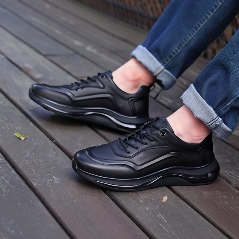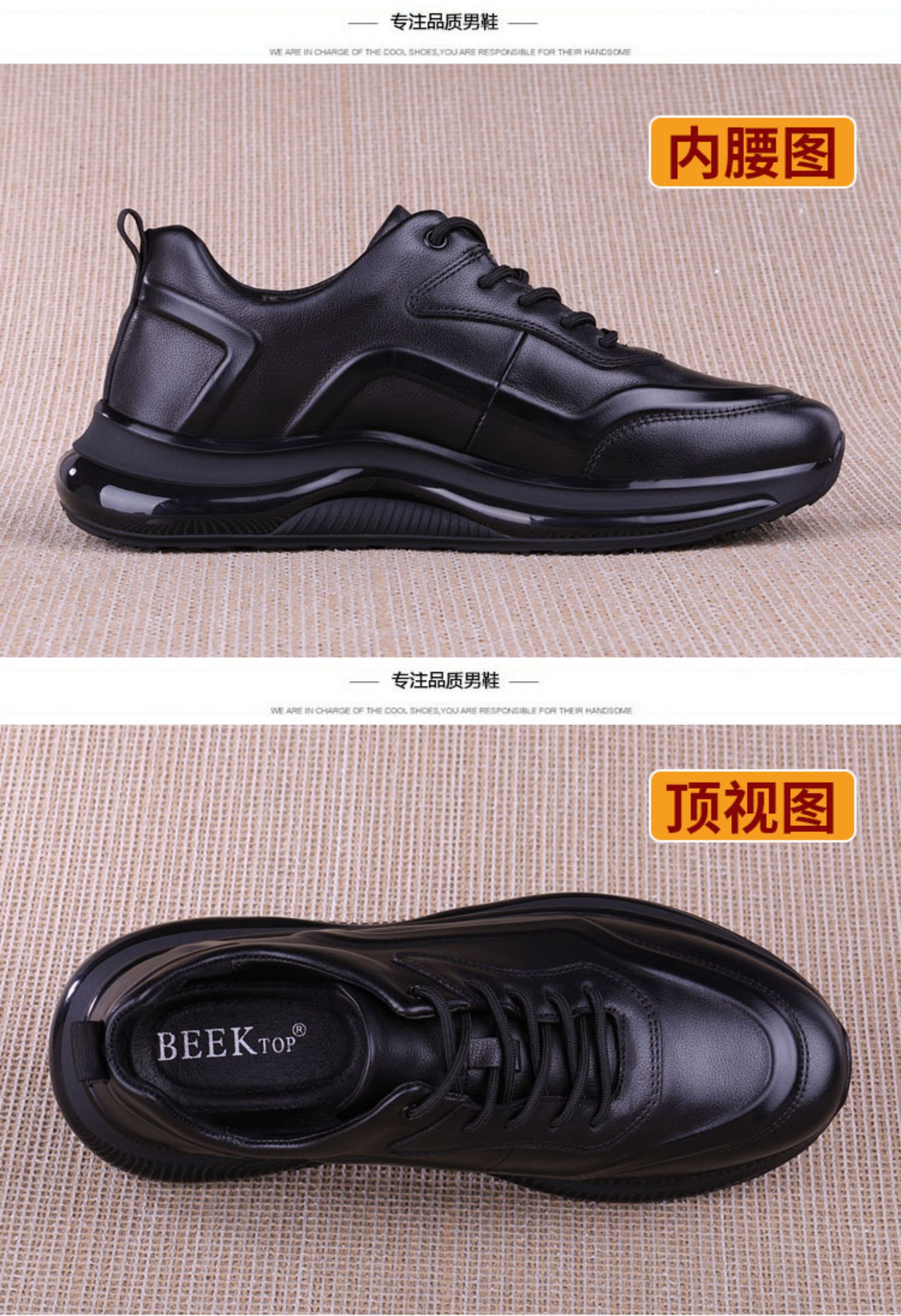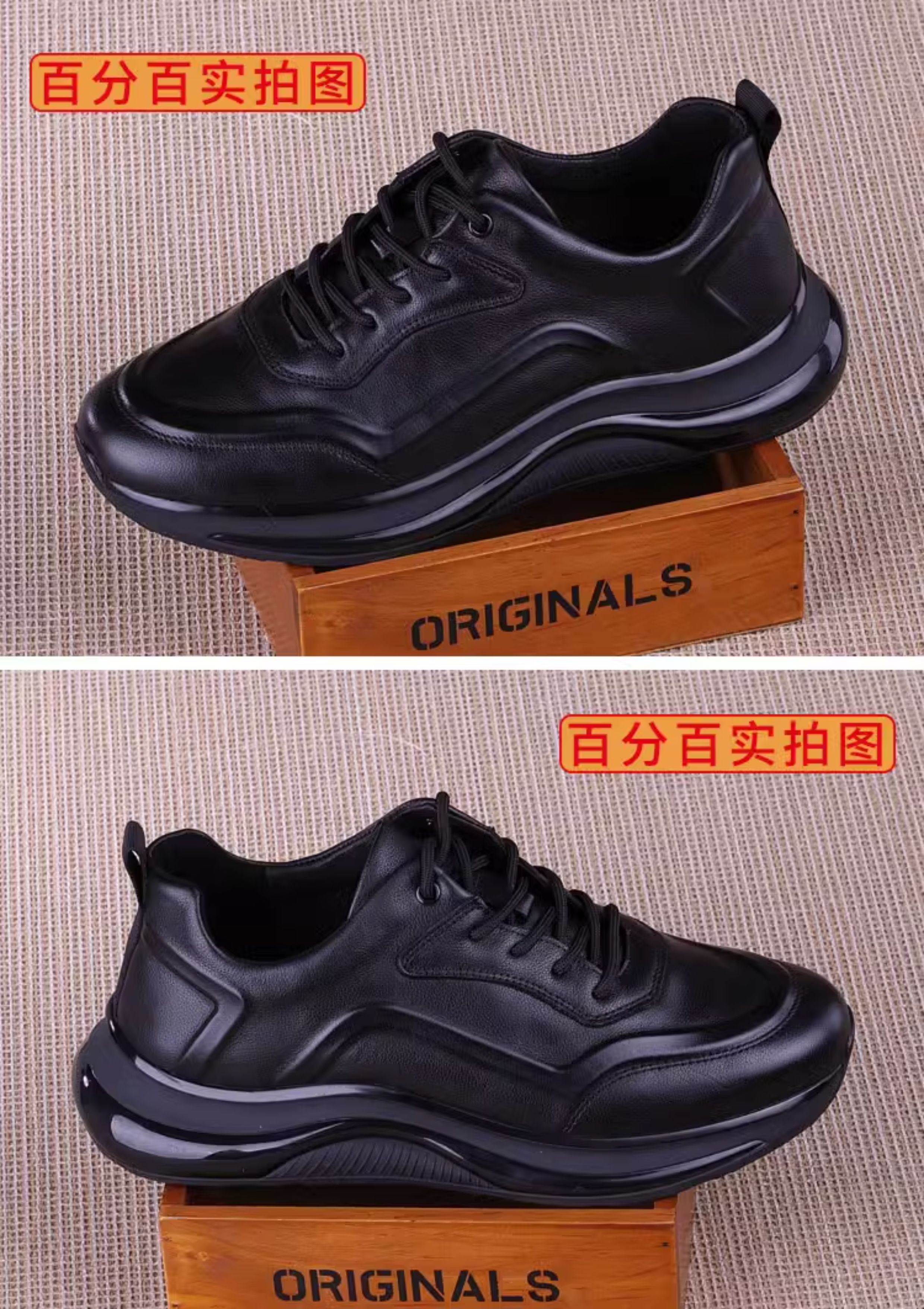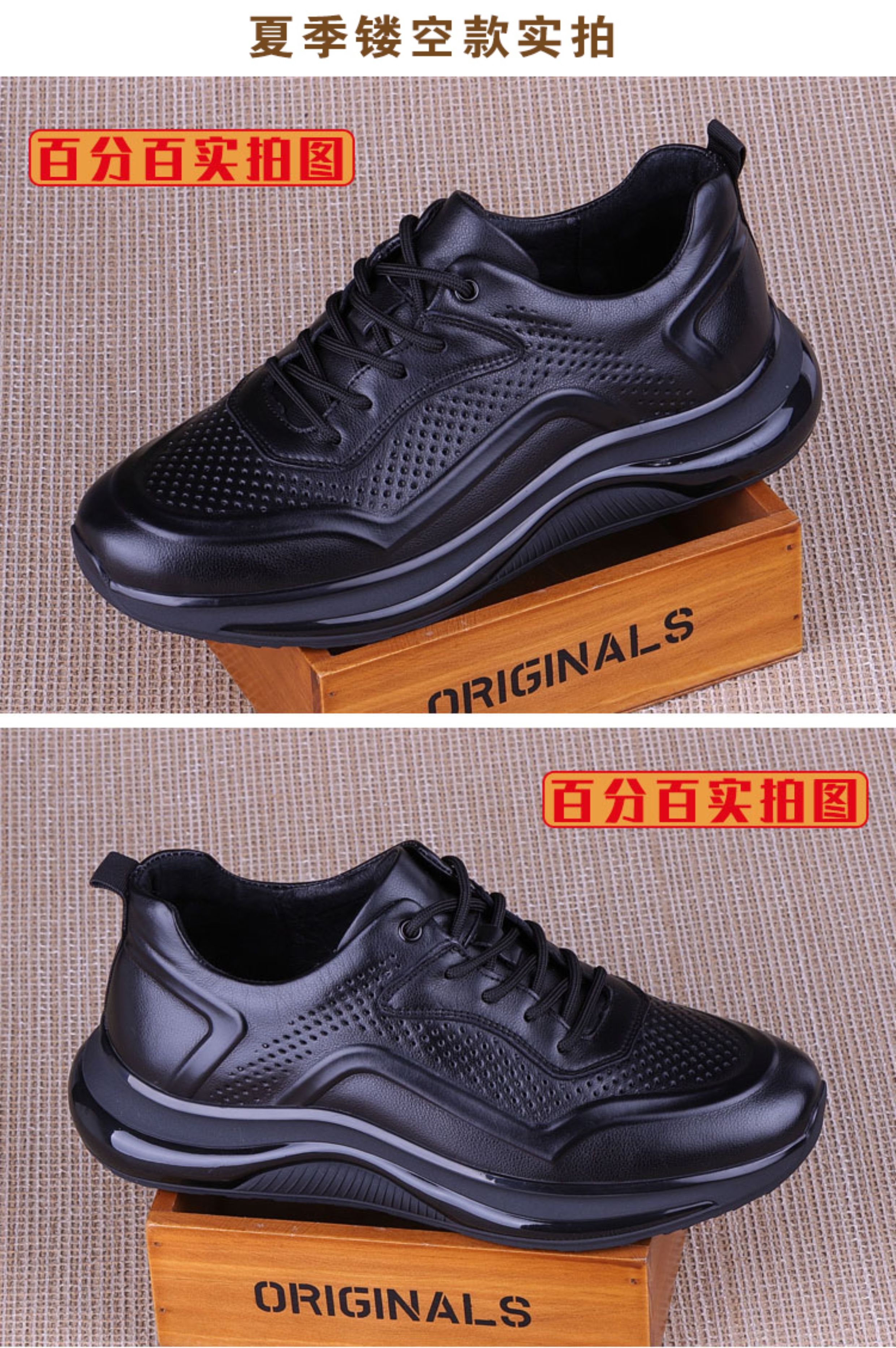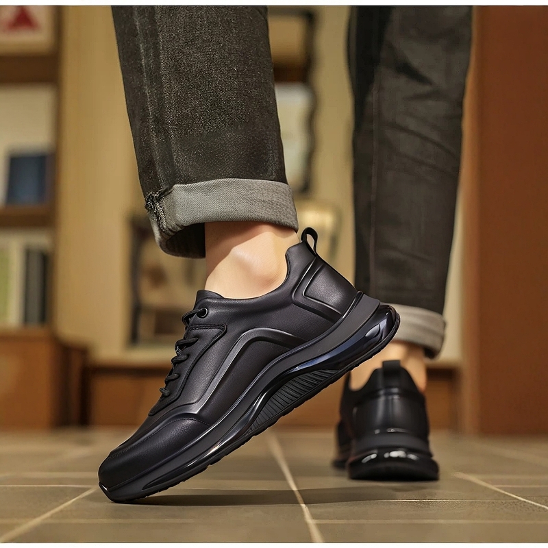 Foreign Trade Men's Shoes Autumn Genuine Leather First-Layer Cowhide All-Black Sports Shoes Men's Thick-Soled Ultra-Light Lace-Up Casual Shoes Running Shoes