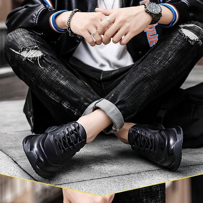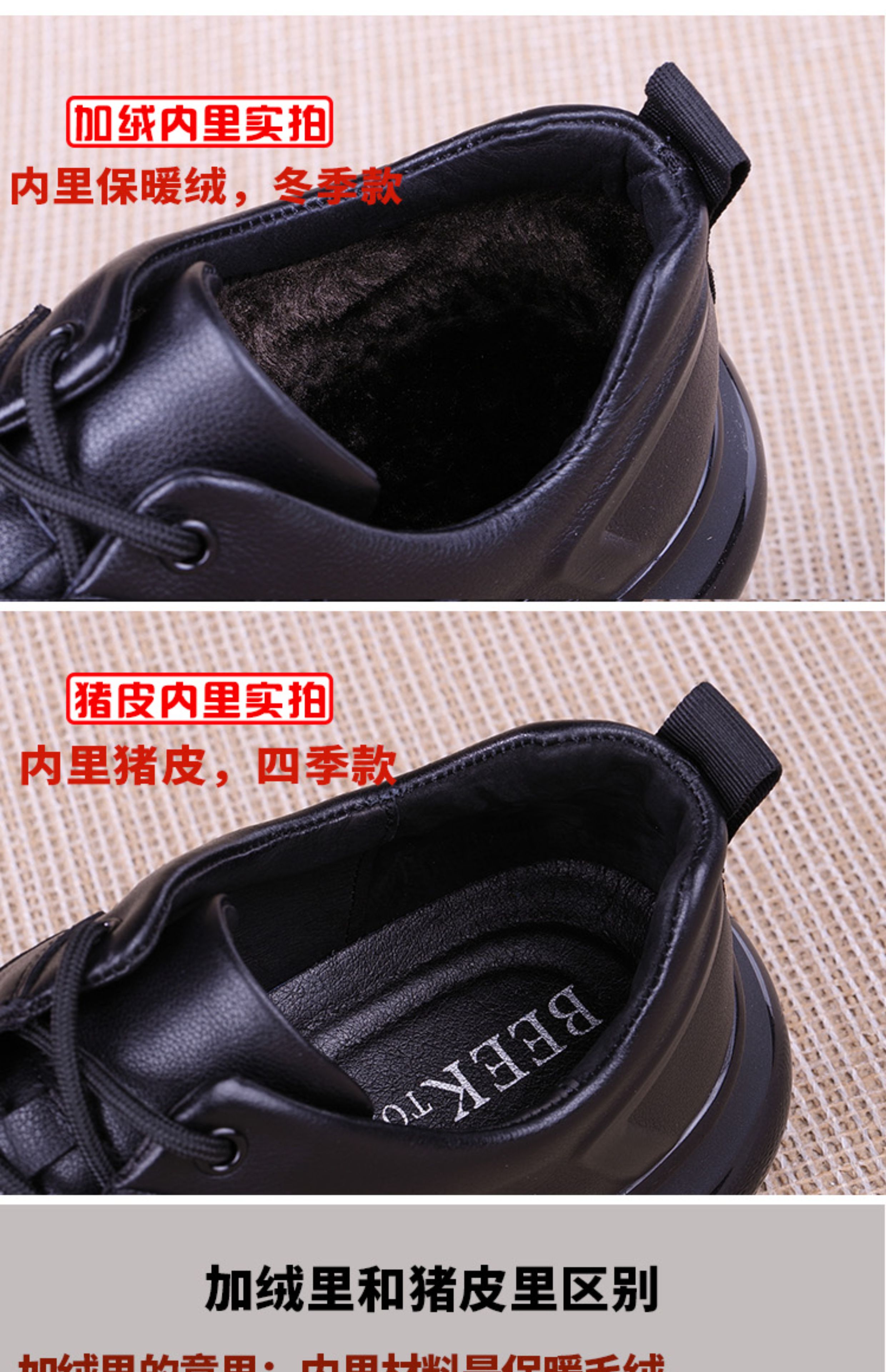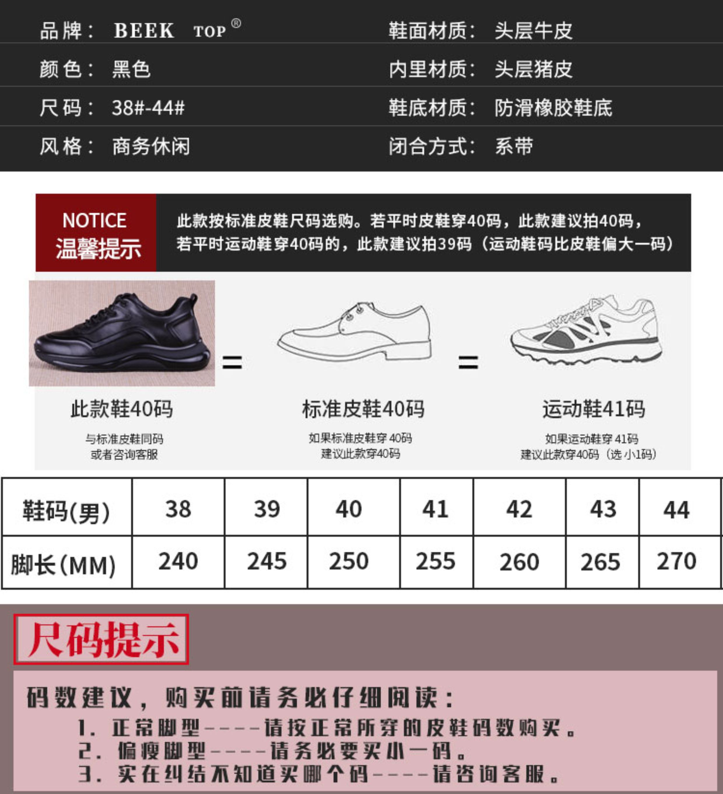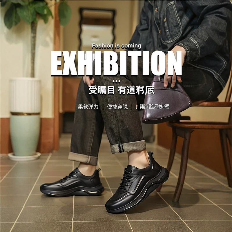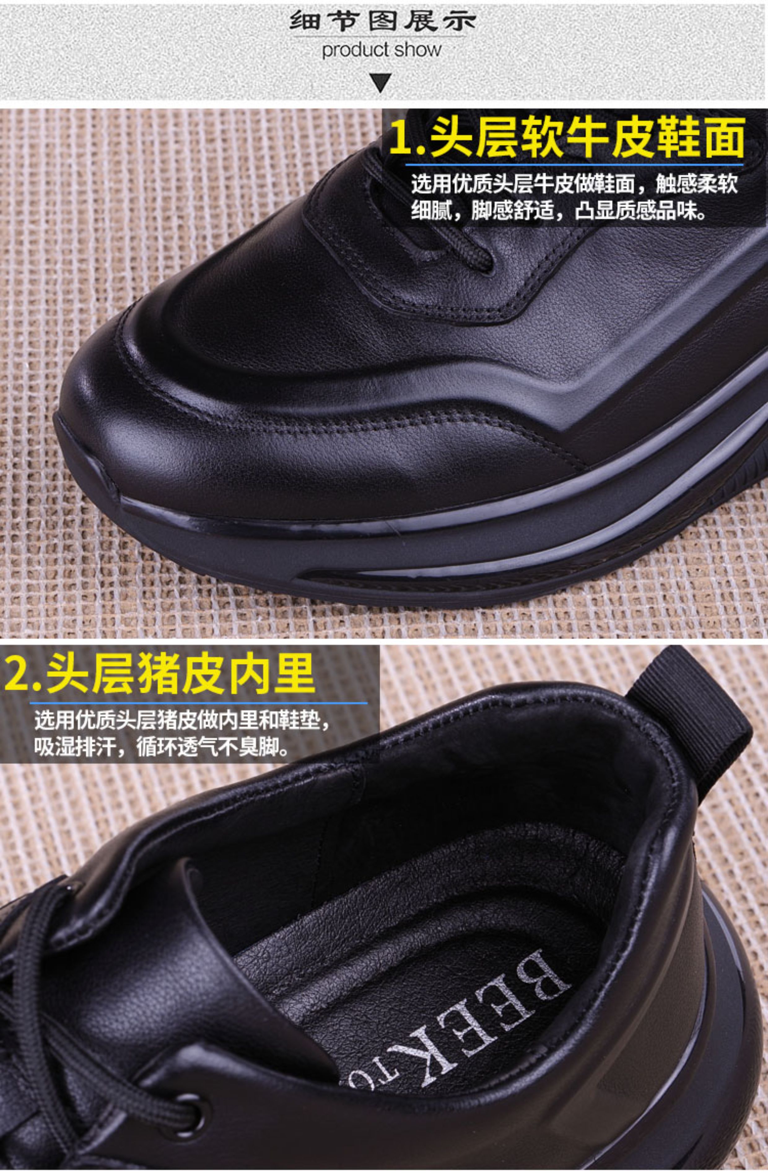 Foreign Trade Men's Shoes Autumn Genuine Leather First-Layer Cowhide All-Black Sports Shoes Men's Thick-Soled Ultra-Light Lace-Up Casual Shoes Running Shoes