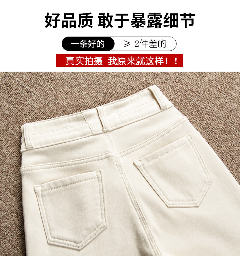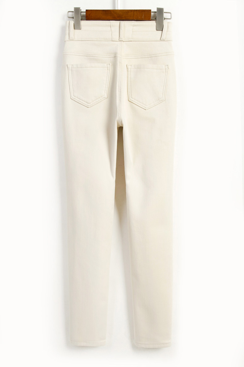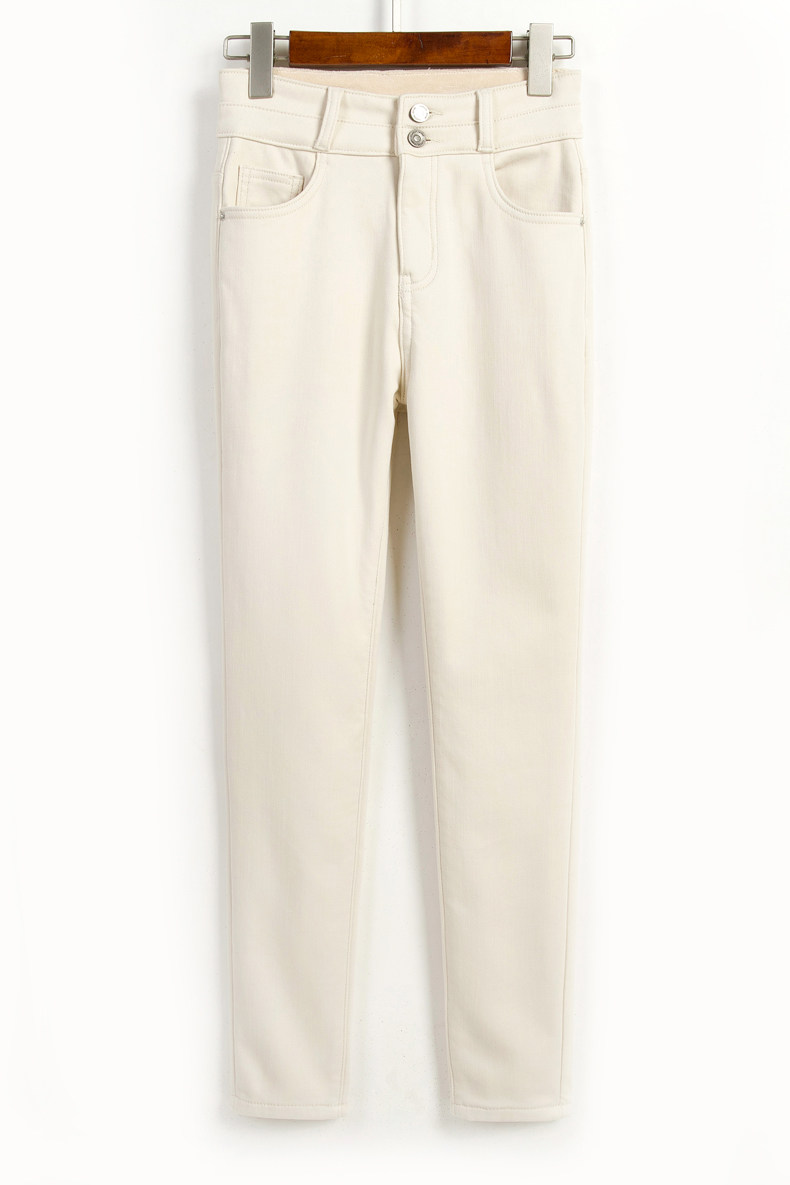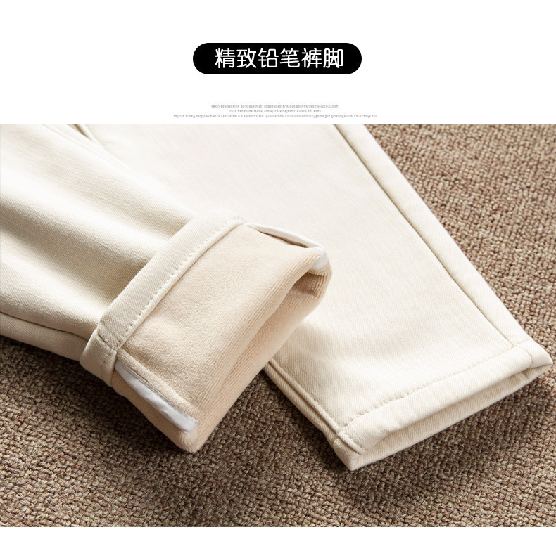 High-Waisted Fleece-Lined Jeans for Women, 2025 Winter, Off-White, Slim-Fit, Thickened, Slimming, Stretchy, Warm, Integrated Fleece, New Style