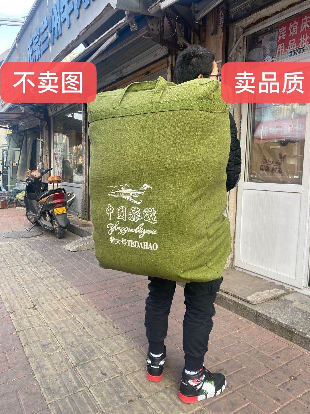 帆布结实手提袋男双肩包袋超大容量大号搬家袋旅行袋装被子打工包。尺寸:高75cm宽58cm厚25c m