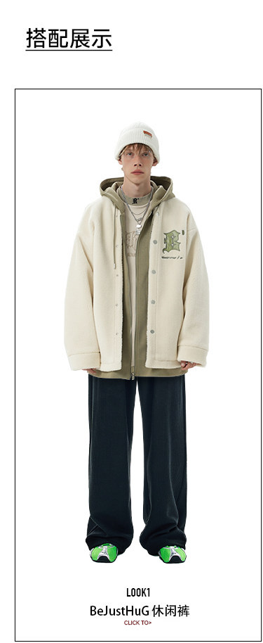 Bjhg Reckless Fake Two-Piece Cotton Jacket for Men, Winter Faux Lamb Wool Plush Coat, Warm Cotton-Padded Jacket, Thickened Cotton Coat