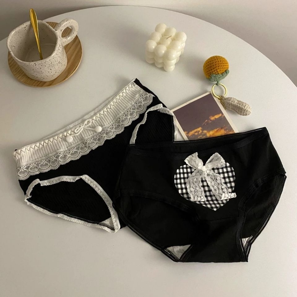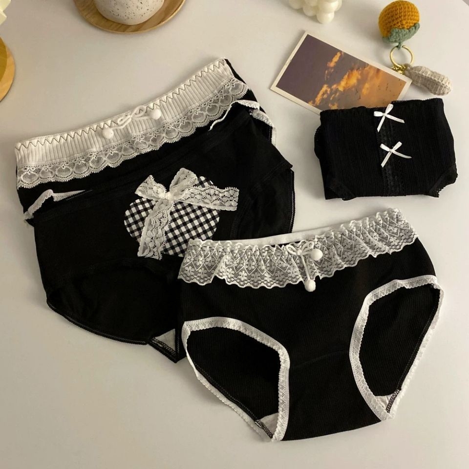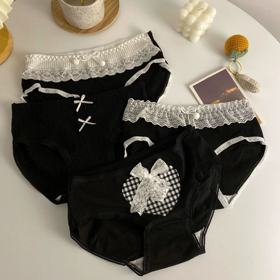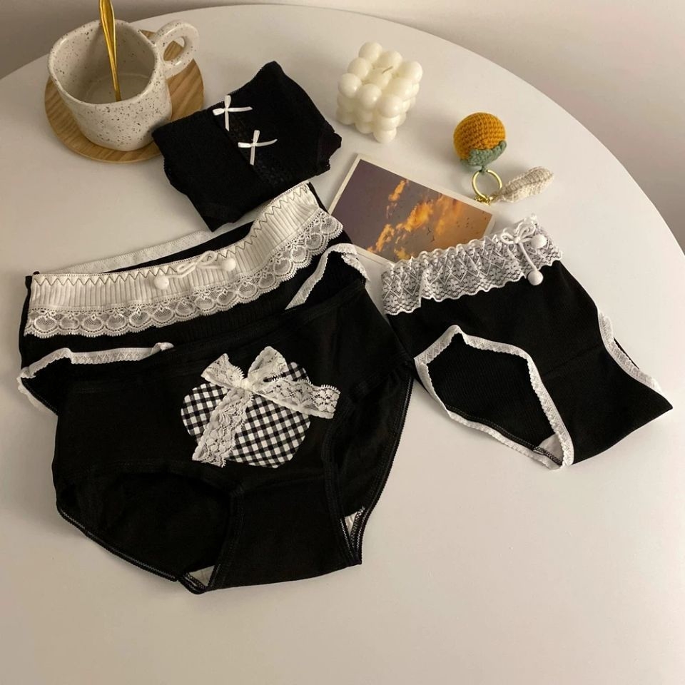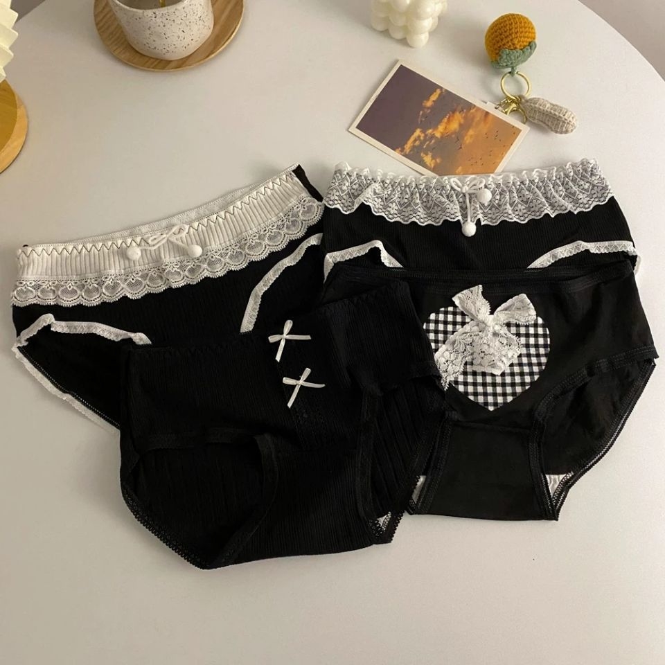 Authentic Internet Celebrity Popular Pure Cotton Underwear, Cotton Antibacterial Black Loli, Sweet, Sexy and Cute Mid-Waist Briefs