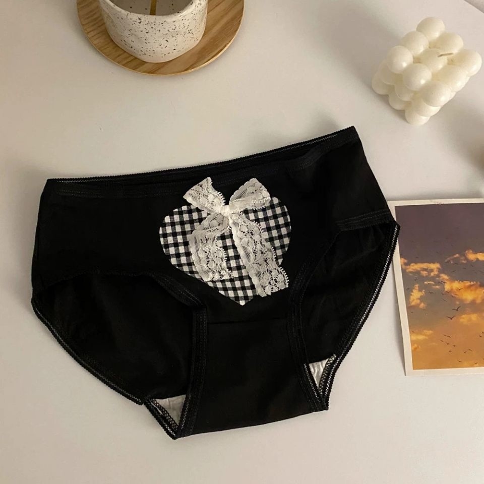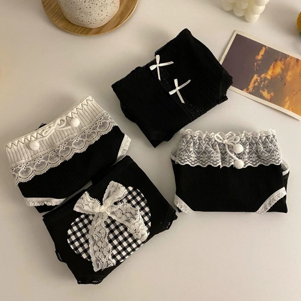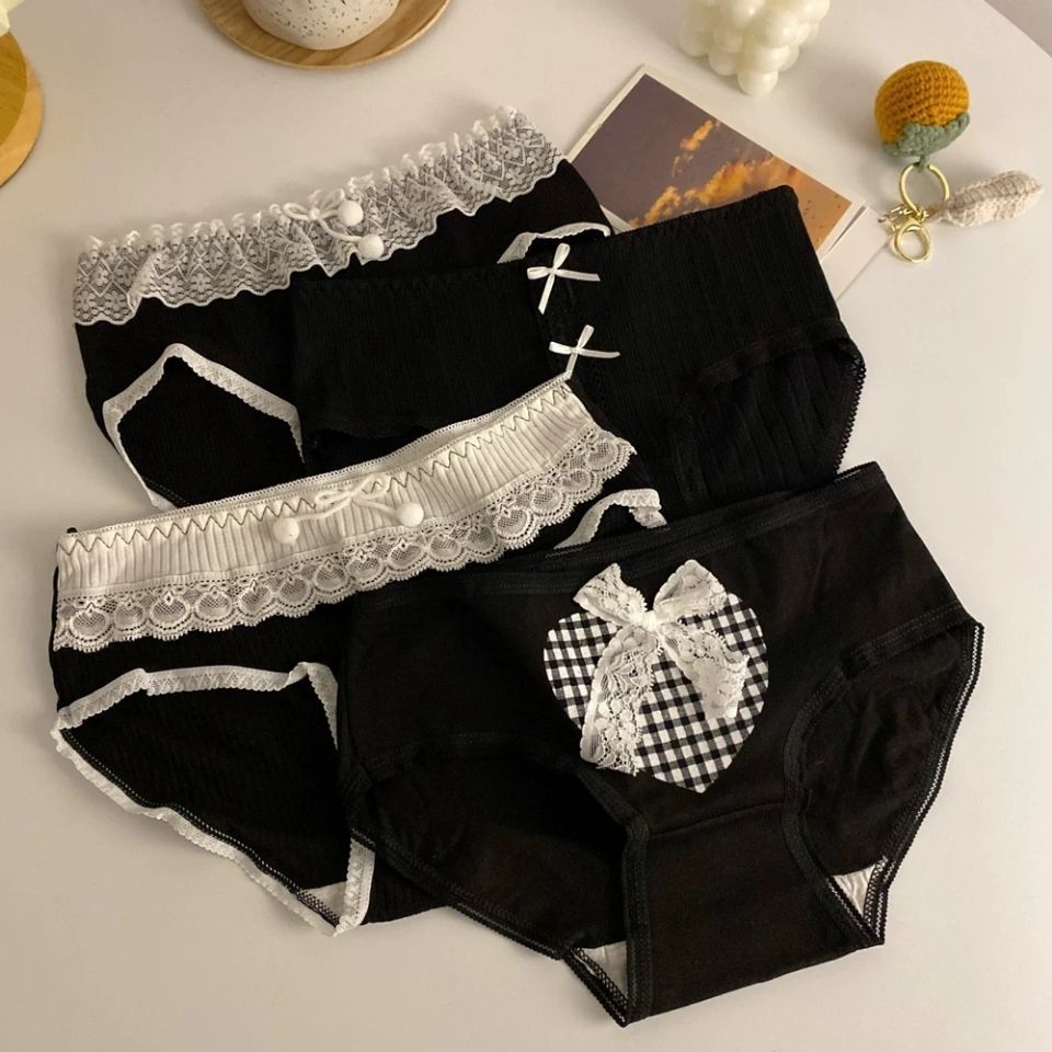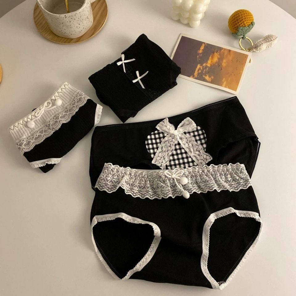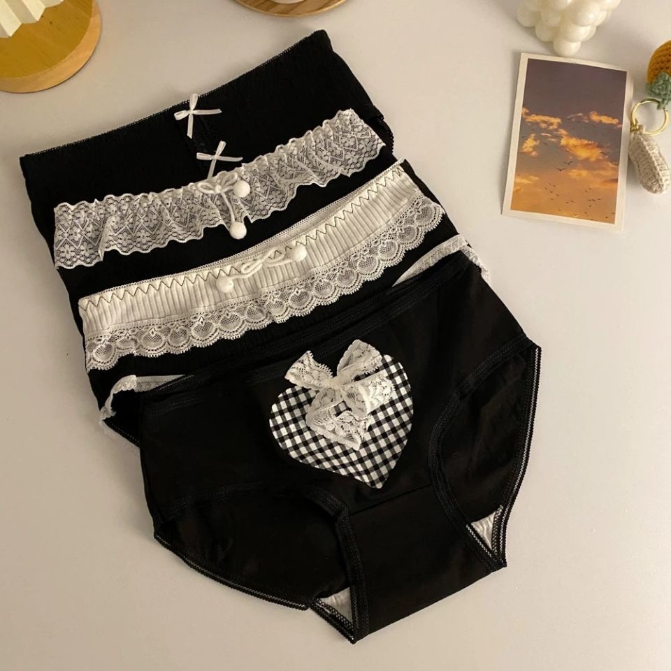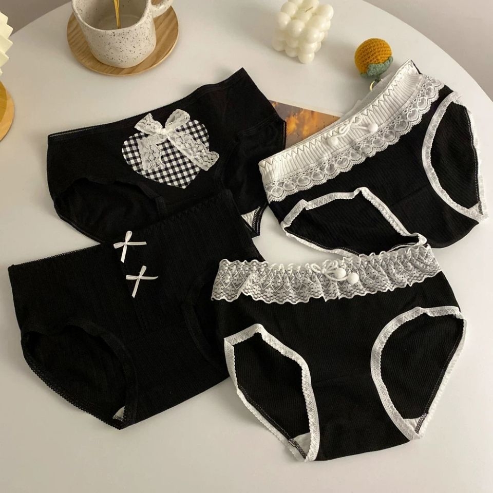 Authentic Internet Celebrity Popular Pure Cotton Underwear, Cotton Antibacterial Black Loli, Sweet, Sexy and Cute Mid-Waist Briefs