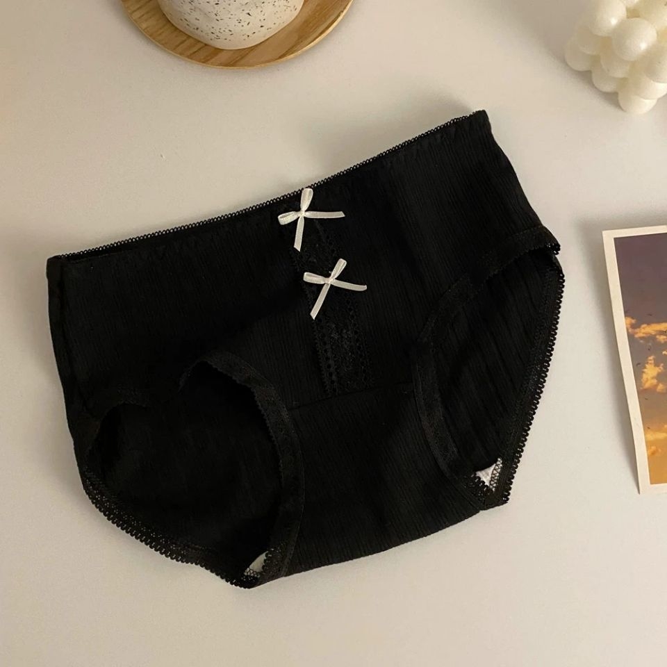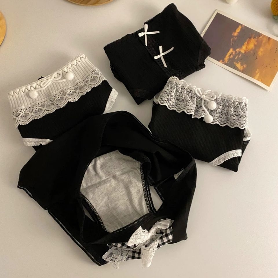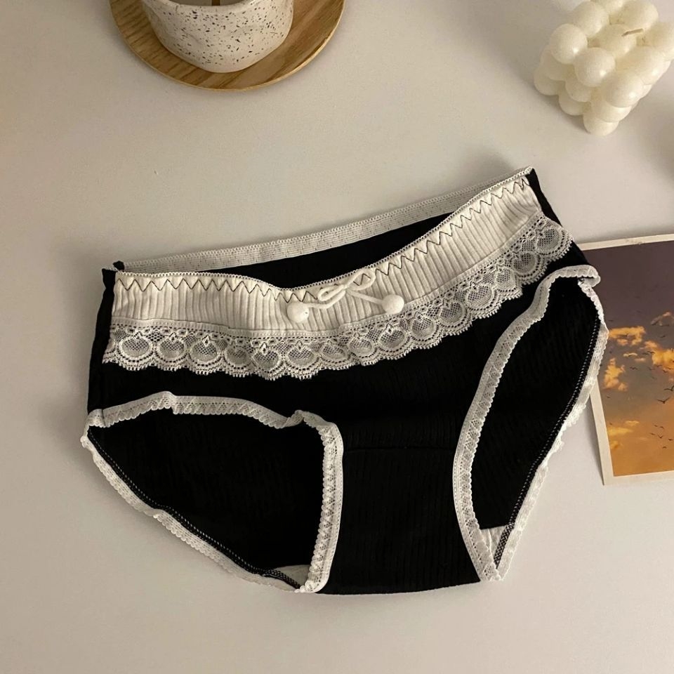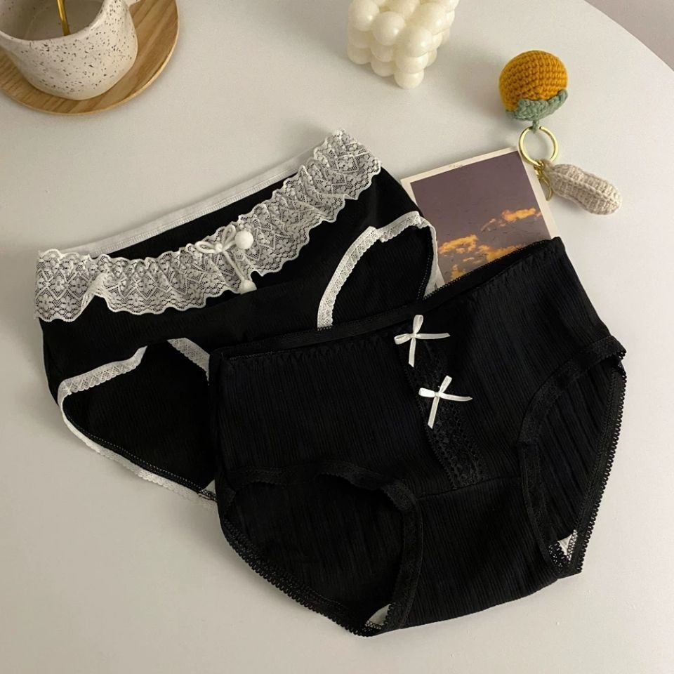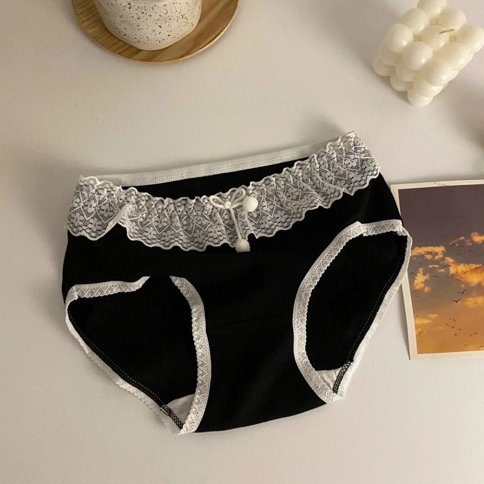 Authentic Internet Celebrity Popular Pure Cotton Underwear, Cotton Antibacterial Black Loli, Sweet, Sexy and Cute Mid-Waist Briefs